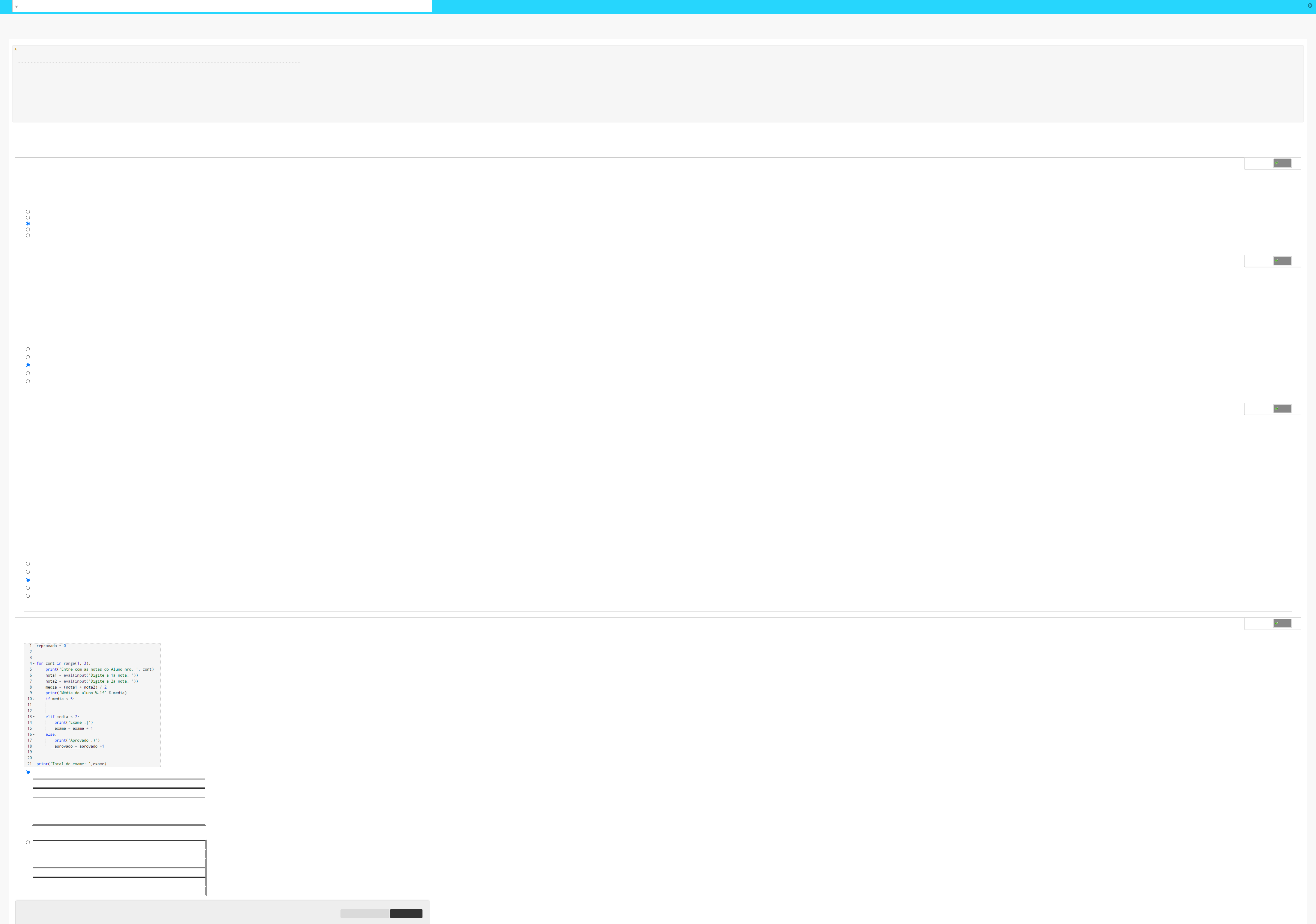 Fazer teste: Semana 6 - Atividade Avaliativa