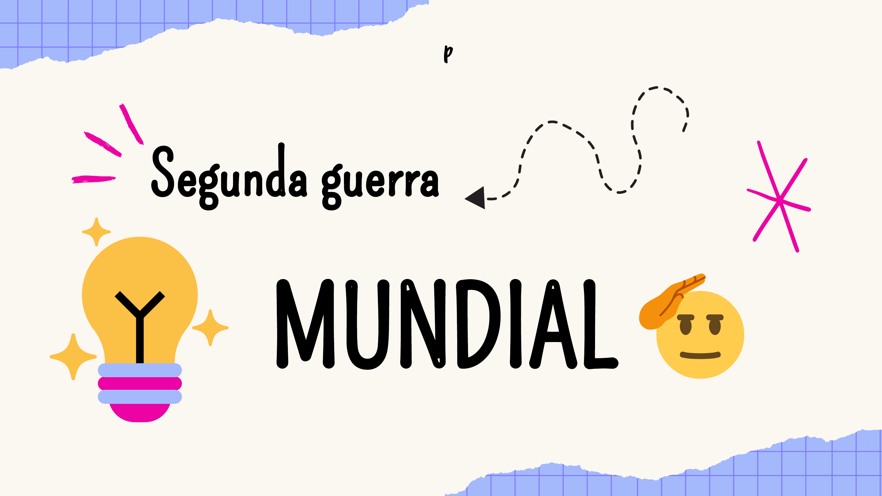 Segunda guerraSegunda guerra MUNDIAL 🫡MUNDIAL 🫡 Apresentado por: Gabriel Oliveira e Isabela Costa A Segunda Guerra Mundial foi um conflito militar global que durou de 1939 a 1945. Organizadas em duas alianças militares opostas: os Aliados e o Eixo. Eixo; �•Alemanha �•Japão �•Itália Aliados; �•Reino Unido 🚩•União Soviética �•Estados Unidos �•China (IDHTEC – adaptado) No que tange à Segunda Guerra Mundial, marque a opção INCORRETA: a) Depois de anexar a Áustria, o governo alemão alegou que tinha direitos também sobre a região dos Sudetos, localizada na Tchecoslováquia. b) O Pacto Germano-Soviético foi um acordo de não agressão mútua, assinado entre URSS e Alemanha em 1939. c) A cidade que os nazistas promoveram um cerco para deixar a população morrer de fome foi a cidade de Stalingrado, nas margens do rio Volga. d) A Blitzkrieg foi a tática de guerra responsável pela rapidez e eficiência de combate das Forças Armadas da Alemanha nos primeiros anos da Segunda Guerra Mundial. e) Em dezembro de 1941, os japoneses desferiram um grande ataque à base naval estadunidense de Pearl Harbor, no Havaí. Resposta correta: C A cidade a que os nazistas impuseram a estratégia de um cerco para deixar as pessoas morrerem de fome foi Leningrado, no norte da Rússia e às margens do rio Neva. Estima-se que o cerco nazista em Leningrado tenha se estendido por cerca de 900 dias e que milhares de civis tenham morrido, muitos de fome. (Ameosc – adaptado) Sobre a Segunda Grande Guerra: I – Hitler se suicida; II – rendição alemã; III – rendição japonesa. A ordem cronológica dos eventos acima é: a) I – II – III. b) III – II – I. c) II – III – I. d) II – I – III. e) III – I – II. Resposta: A A ordem cronológica dos acontecimentos é a seguinte: Hitler cometeu suicídio em 30 de abril de 1945; a primeira rendição alemã aconteceu em 7 de maio de 1945, e a rendição japonesa aconteceu no dia 2 de setembro de 1945. O objetivo nazista de fortalecer a “raça superior” germânica, levou à perseguição e assassinato de milhões de judeus e de vários outros grupos considerados inferiores. (Ameosc – adaptado) Em 1942, os alemães obtiveram várias vitórias contra os ingleses no Norte da África, onde se destacou o general alemão que recebeu o apelido de “Raposa do Deserto”: a) Goebbels. b) Rommel. c) Himmler. d) Ribbentrop. e) Heydrich Resposta: B Erwin Rommel foi o militar alemão que comandou as tropas da Wehrmacht no norte da África durante a Segunda Guerra Mundial. A força alemã que ele comandava ficou conhecida como Afrika Korps e as vitórias que ele obteve na guerra renderam a ele o apelido de “Raposa do Deserto”. Unemat) A Segunda Grande Guerra (1939-1945) adquiriu caráter mundial a partir de 7 de dezembro de 1941, quando: a) os russos tomaram a iniciativa de anexar os Estados Bálticos. b) os alemães invadiram o litoral mediterrâneo da África. c) os japoneses atacaram a base norte-americana de Pearl Harbor d) os franceses, por determinação do marechal Pétain, ocuparam o Sudeste da Ásia; e) os chineses cederam a maior parte de seu território às tropas do Eixo. Alternativa correta c) os japoneses atacaram a base norte-americana de Pearl Harbor. O ataque japonês a Pearl Harbor foi o pretexto para que os americanos entrassem no conflito. Desta maneira, a guerra assume um caráter mundial. As outras opções não estão corretas. Os franceses não invadiram o Sudeste Asiático e nem os chineses cederam seu território ao Eixo. fim… 🫡
