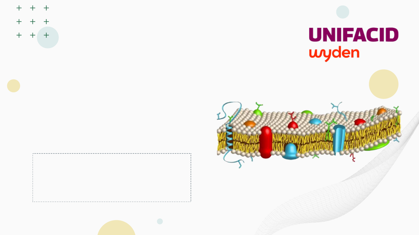 Membrana Plasmática Prof. Me. Débora Rodrigues Esp. Biologia Celular e Molecular Mestre em Ciências Farmacêuticas Doutoranda em Farmacologia Caracterísicas Gerais Delimitação Permeabilidade Seletiva Constancia Intracelular A membrana plasmática constitui a principal delimitação da célula Responsável pelo controle da entrada e saída de substâncias de dentro da célula A membrana plasmática é responsável pela constancia do meio intracelular Reconhecimento Receptores de membrana tem a capacidade de reconhecer outras células e moléculas A membrana plasmática só pode ser visualizada no microscópio eletrônico Características Gerais A existência da membrana plasmática era conhecida antes do microscópio eletrônico Devido ao emprego de técnicas indiretas de observação celular Observação de que o volume das células se altera de acordo com a concentração de soluto em que são colocadas Características Gerais Células procariontes contém um único sistema de membrana: membrana plasmática Células eucariontes contém vários sistema de membrana: membrana plasmática e membranas das organelas Constituição das Membranas Celulares A membrana plasmática é constituída por lipídeos Associado aos lipídeos existem proteínas e moléculas de glicose Lipídeos das Membranas Os lipídeos das membranas são moléculas longas com uma extremidade hidrofílica e uma cadeia hidrofóbica, moléculas anfipáticas: ● Fosfolípideo ● Esfingolipídeos ● Colesterol Lipídeos de Membrana Cadeias apolares (hidrofóbicas) voltadas para o interior da membrana Cadeias polares (hidrofílicas) voltadas para o meio extracelulas ou citoplasma Cabeça polares dos lipídeos (faixa elétron densa externa) Caudas apolares dos liídeos (faixa elétron transparente) Cabeça polares dos lipídeos (faixa elétron densa interna) Estrutura Lipoproteíca Fluida Proteínas se associam a membrana As proteínas apresentam resíduos hidrofílicos e hidrofóbicos: ▪ Os resíduos hidrofóbicos das proteínas estão no mesmo nível das cadeias hidrofóbicas dos lipídeos ▪ Os resíduos hidrofílicos das proteínas ficam na altura das cabeças polares dos lipídeos em contato com o meio extracelular ou com o citoplasma Carboidratos podem se associar a proteínas, formando glicoproteínas ou a lipídeos formando os glicolipídeos Proteínas da Membrana Plasmática A atividade metabólica das membranas depende das proteínas Proteínas integrais ou intínsecas Proteínas periféricas ou extrísecas Proteínas Integrais ou Intrínsecas 1. Proteínas Integrais ou Intrínsecas: ▪ Proteínas que estão firmemente associadas aos lipídeos ▪ Atravessam inteiramente a bicamada lipídica ▪ As moléculas proteicas podem atravessar a membrana uma única vez ou várias vezes Cadeia glicídica de glicolipídeo Cadeia lídica de glicoproteína Proteína periferica Proteína transmembrana: passagem única Proteína transmembrana: passagens múltiplas Proteínas Periféricas ou Extrínsecas 1. Proteínas periféricas ou extrínsecas ▪ Presentes em apenas uma camada da bicamada lipídica ▪ Podem se apresentar mais próximas ou meio extracelular ▪ Ou mais próximas ao citoplasma da células Cadeia glicídica de glicolipídeo Cadeia lídica de glicoproteína Proteína periferica Proteína transmembrana: passagem única Proteína transmembrana: passagens múltiplas Glicocálice Corresponde a superfície externa da membrana plasmática que possui moléculas de carboidratos associadas O glicocálice é uma extensão da própria membrana Glicocálice A glicoproteína mais abundante que forma o glicocálice é a fibronectina Tem a função de unir as células umas as outras A fibronectina liga-se a proteínas da matriz extracelular, tais como, o colágeno As células se reconhecem As moléculas ancoradas na membrana plasmática de cada célula permite o reconhecimento mútuo entre elas Células hepáticas e renais dissociadas e misturadas em meio líquido LEVE AGITAÇÃO Após um tempo observou- se o surgimento de dois aglomerados celulares O glicocálice permite o reconhecimento entre cada tipo celular Transporte através da membrana Existe uma relação direta entre solubilidade em lipídeos e capacidade de penetração nas células Substâncias hidrofóbicas penetram com facilidade a membrana Substâncias hidrofílicas penetram com mais dificuldade Difusão passiva Difusão facilitada Transporte ativo Osmose Gradientes iônicos Difusão Passiva O soluto penetra na célula quando sua concentração é menor no citoplasma do que no meio extracelular O soluto saí na célula quando sua concentração é maior no citoplasma do que no meio extracelular Não ocorre gasto de energia Ocorre a favor do gradiente de concentração Difusão Facilitada Ocorre a partir de proteínas de transporte acopladas a membrana Ocorre em uma velocidade maior do que na difusão passiva Não ocorre gasto de energia Ocorre a favor do gradiente de concentração Transporte Ativo Ocorre contra um gradiente de concentração A substância é transportada de um local de baixa concentração para outro de alta concentração Ocorre gasto de energia (ATP) Osmose Transporte de água através da membrana plasmática Soluções: 1) Hipotônicas 2) Hipertônicas 3) Isotônicas Osmose Solução hipotônica: - A água tende a entrar na célula - Volume da célula aumenta - Se o aumento do volume celular for muito acentuado a membrana plasmática pode se romper (lise celular) Osmose Solução hipertônica: - A água tende a sair da célula - Diminui o volume da célula Osmose Solução isotônica: - Mesma concentração de soluto no meio extracelular e intracelular - Volume celular não se altera Aquaporinas ▪ São proteínas integrais da membrana plasmática ▪ Permitem a passagem de água entre o meio extra e intracelular Transporte em quantidade Esse tipo de transporte depende de alterações morfológicas na superfície celular, onde se