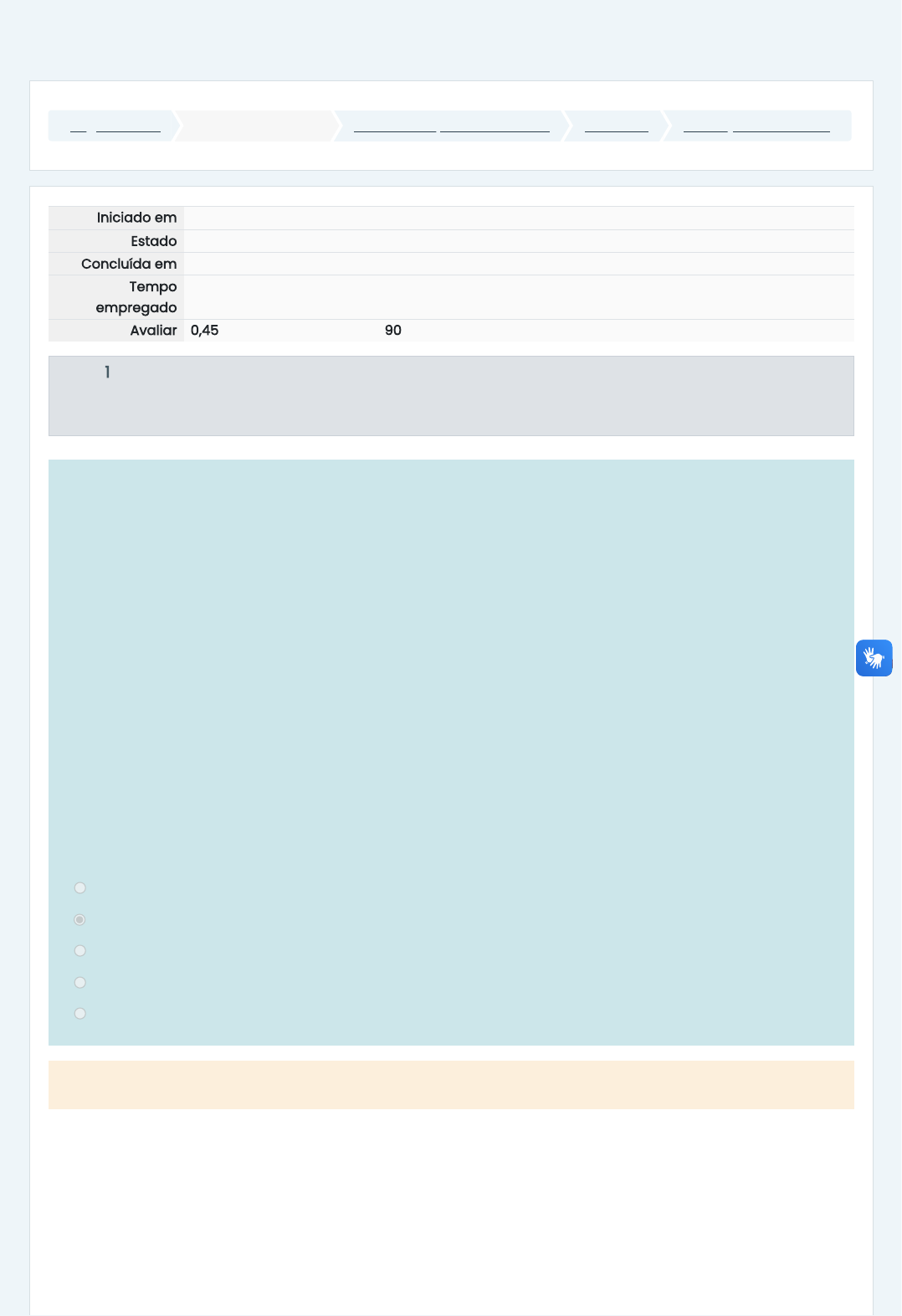 Página inicial Minhas disciplinas 2024/2 - Empreendedorismo UNIDADE I Avaliação - Unidade I Iniciado em quinta, 6 jun 2024, 17:29 Estado Finalizada Concluída em quinta, 6 jun 2024, 17:36 Tempo empregado 6 minutos 37 segundos Avaliar 0,45 de um máximo de 0,50(90%) Questão 1 Incorreto Atingiu 0,00 de 0,05 Nos últimos estudo do GEM no Brasil, percebe-se uma mudança de um contexto mais intenso de empreendedores por necessidade para um equilíbrio entre os dois tipos empreendedores por necessidade e por oportunidade. Com isso, surgem negócios mais inovadores, com maior grau de complexidade técnica e que exigem maior volume de capital. SCHNEIDER, E.I.; BRANCO, E.J.C. A caminhada empreendedora: a jornada de transformação de sonhos em realidade. Curitiba: Intersaberes, 2012, p.30. Com base no texto, avalie as asserções a seguir e a relação proposta entre elas. I. Observa-se uma predisposição dos empreendedores brasileiros em realizar o planejamento do ato de empreender. PORQUE II. O equilíbrio entre os dos tipos de empreendedores no contexto brasileiro, é um indício do amadurecimento e do preparo dos empreendedores brasileiros, os quais buscam realização dos sonhos e não o lucro de curto prazo. A respeito dessas asserções, assinale a opção correta. a. A asserção I é uma proposição verdadeira e a asserção II é uma proposição falsa. b. As asserções I e II são proposições verdadeiras, mas a II não é uma justificativa correta da I. c. A asserção I é uma proposição falsa, e a II é uma proposição verdadeira. d. As asserções I e II são proposições verdadeiras, e a II é uma justificativa correta da I. e. As asserções I e II são proposições falsas A resposta correta é: As asserções I e II são proposições verdadeiras, e a II é uma justificativa correta da I. https://ambienteonline.uninga.br/ https://ambienteonline.uninga.br/course/view.php?id=27063 https://ambienteonline.uninga.br/course/view.php?id=27063§ion=2 https://ambienteonline.uninga.br/mod/quiz/view.php?id=733601 Questão 2 Correto Atingiu 0,05 de 0,05 “Toda a organização deve enxergar o funcionário como um empreendedor”. Essa frase é da empreendedora Luiza Helena Trajano, uma das mulheres mais poderosas do país, à frente da Rede Magazine Luiza. Disponível em: <https://endeavor.org.br/desenvolvimento-pessoal/luiza-helena-trajano/>;. Acesso em: 25 maio.2020. Com base nesta frase e no conhecimento adquirido ao longo da disciplina, analise as afirmativas a seguir e assinale a alternativa correta. I. Diretores e gerentes são os mais dotados de características empreendedoras e podem fazer toda a diferença para a organização. II. Quando os objetivos pessoais dos intraempreendedores estão alinhados com os da empresa, e eles se sentem valorizados, com autonomia para criar e contribuir com a empresa. III. Uma organização que estimula o intraempreendedorismo, o intraempreendedor encontra um terreno fértil para se desenvolver e todos ganham com isso. IV. Uma organização que tem a cultura organizacional que estimula e sustenta ações intraempreendedoras pode investir pouco em uma política de bonificação. Assinale a alternativa correta. a. IV apenas. b. I, III, apenas. c. I, II, apenas d. II, III, apenas. e. I, II e III. A resposta correta é: II, III, apenas. https://endeavor.org.br/desenvolvimento-pessoal/luiza-helena-trajano/%3E Questão 3 Correto Atingiu 0,05 de 0,05 Até alguns anos atrás se acreditava que o empreendedor nascia com um diferencial e era predestinado ao sucesso dos negócios. Isto é um mito. Cada vez mais acredita-se que o processo empreendedor pode ser ensinado e entendido. Os empreendedores natos existem sim, mas muitos outros podem ser capacitados para tal perfil. Por isso que o empreendedorismo pode ser adquirido, ou seja, estudado, transmitido e ensinado através de técnicas e métodos já comprovados. Assim, podemos dizer que os objetivos do ensino do empreendedorismo são: I. Identificação e entendimento das habilidades do empreendedor; II. Identificação e análise de oportunidades; III. Como ocorre a inovação e o processo empreendedor; IV. Importância do empreendedorismo no desenvolvimento econômico; É correto somente o que se afirma em: a. I e II, apenas. b. I, II e IV, apenas. c. III e IV, apenas. d. I, II, III e IV. e. III e IV, apenas. A resposta correta é: I, II, III e IV. Questão 4 Correto Atingiu 0,05 de 0,05 Ao que se sabe, a palavra “empreendedor” surgiu na França, com significado de: aquele que assume riscos e começa algo novo. A utilização do termo “empreendedorismo” é atribuído a Richard Cantillon (1755) e a Jean- Baptiste Say (1800). Ambos definiram os empreendedores como pessoas que correm riscos porque investem o seu próprio dinheiro em empreendimentos. Historicamente podemos dizer que o empreendedorismo aconteceu da seguinte forma: I. O primeiro uso do termo empreendedorismo foi por Marco Pólo, que assinou um contrato com um homem que possuía dinheiro que hoje é mais conhecido como capitalista, para vender as mercadorias deste. II. Na idade média, o termo foi definido para aqueles que gerenciava grandes projetos de produção, que não assumia grandes riscos, apenas gerenciava os projetos com os recursos disponíveis pelo governo do país. III. No século XVII o empreendedor estabeleceu um acordo contratual com o governo para realizar alguns serviços ou fornecer produtos. Por ter os preços prefixados, qualquer lucro ou prejuízo era de responsabilidade do empreendedor. IV. No século XVIII, com a industrialização que ocorria no mundo, o capitalista e o empreendedor foram finalmente diferenciados. No final do século XIX e início do século XX, os empreendedores foram confundidos com os administradores, como aqueles que organizavam a empresa, pagavam os empregados, planejavam, dirigiam e controlavam as ações desenvolvidas na organização, mas sempre a serviço do capitalista. É co