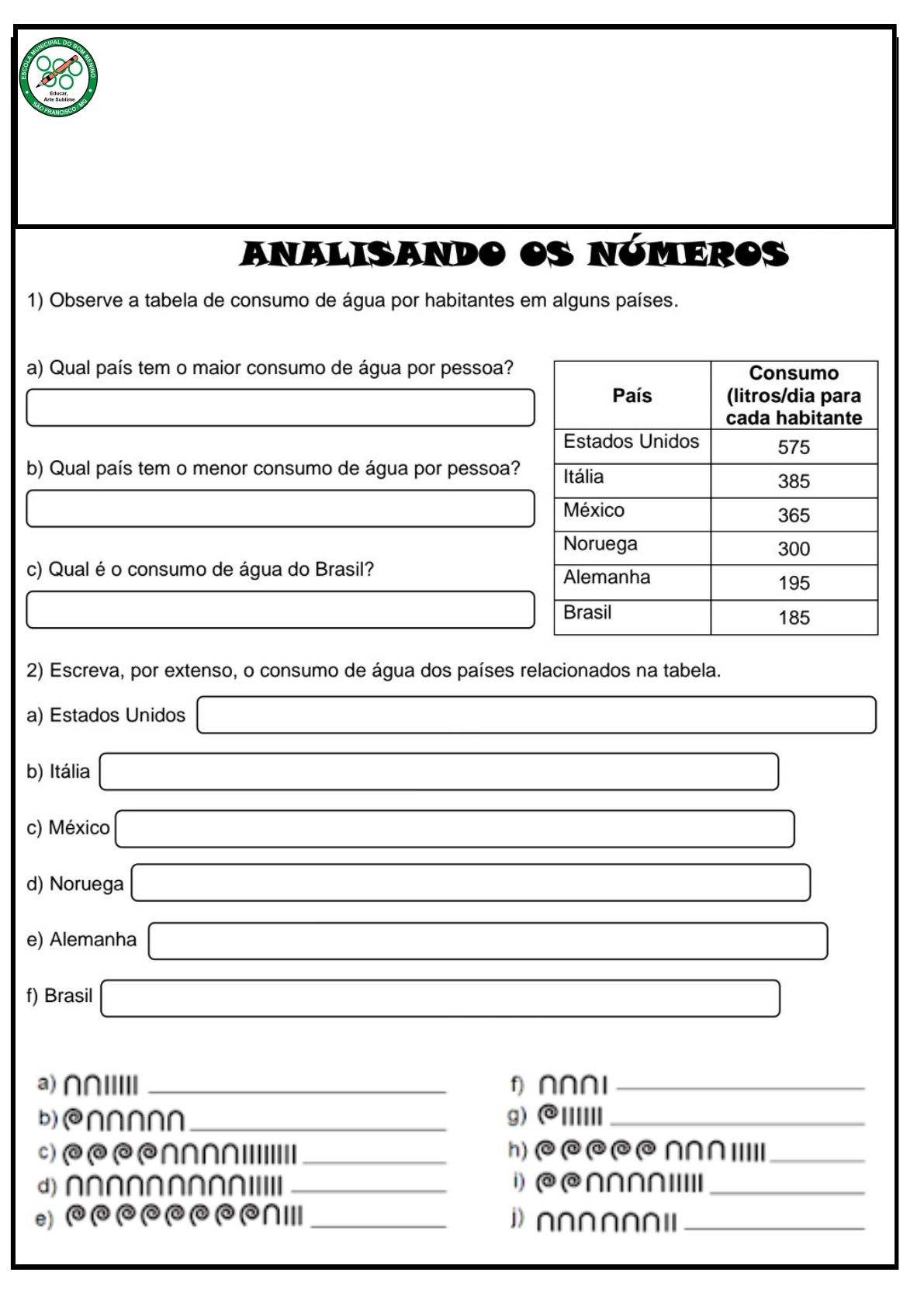 AVALIAÇÃO DE MATEMÁTICA 1º BIMESTRE- 2024 Nome:_______________________________________________________Data:____________________ Escola: ______________________________________________________Turma:__________________ Professora:__________________________________________________Turno:__________________ 3.Represente abaixo com números naturais os números egípcios. 4. Complete a tabela com nímeros até 200. 5). Escreva o antecessor e o sucessor dos números abaixo 9. Converta os números romanos em números naturais 8. Ligue os romanos de acordo os números BOA PROVA. FELIZ PÁSCOA! 10. Preencha a tabela a seguir com as informações sobre as figuras planas representadas.