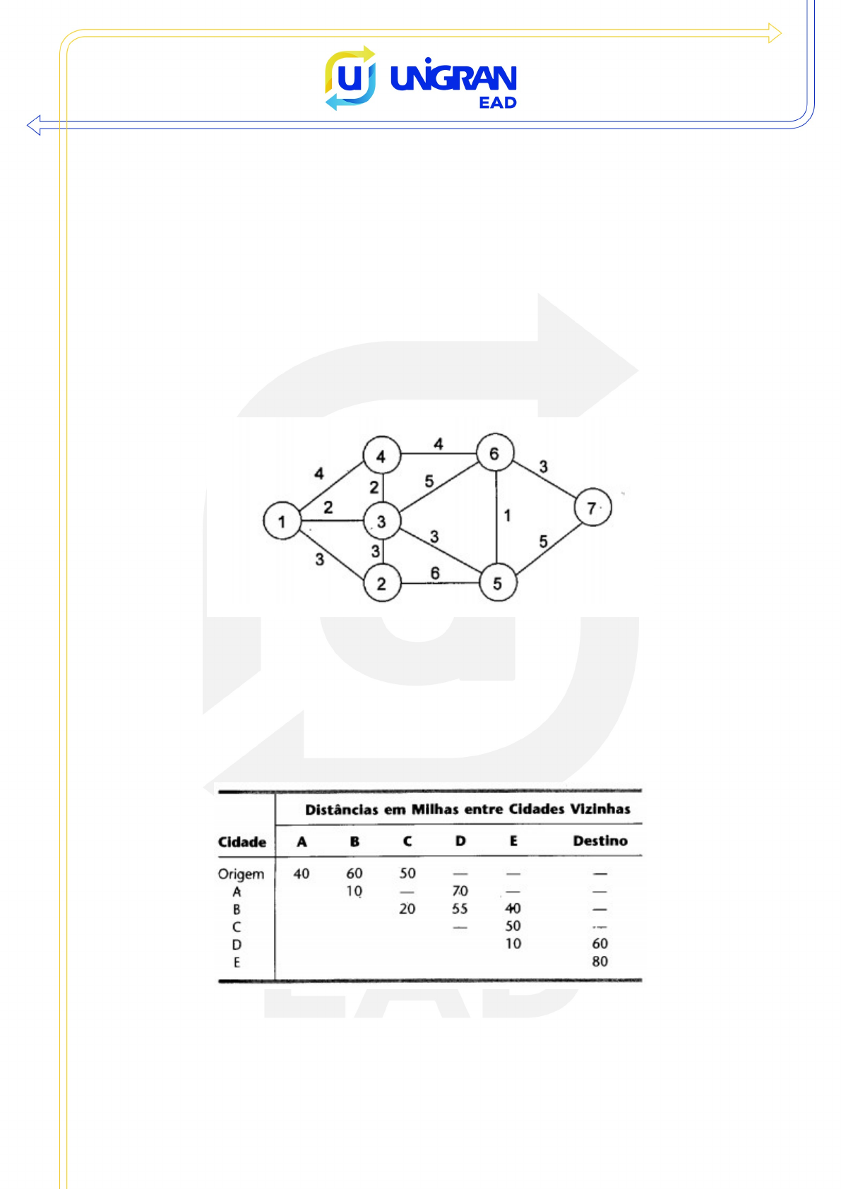 / CENTRO UNIVERSITÁRIO DA GRANDE DOURADOS Curso: Engenharia de Produção Semestre: 6º Disciplina: Pesquisa Operacional Professor: Bárbara Helen Rodrigues Ramires Seribeli ATIVIDADE 2 - REFERENTE AS AULA 05 A 08 1. Uma pessoa vai trabalhar de carro todos os dias. Como acabou de concluir um curso de análise de redes, essa pessoa sabe determinar o caminho mais curto até seu local de trabalho. A rede da Figura a seguir mostra as possíveis rotas entre sua casa e seu trabalho. Desta forma, determine para essa pessoa a trilha mais curta que saem do nó 1 e chegam ao 7. 2. Você precisa fazer uma viagem de carro para outra cidade que jamais havia estado anteriormente. Portanto, você está estudando um mapa para determinar a rota mais curta para seu destino. Dependendo de qual rota você escolher, há cinco outras cidades (chamemos estas A, B, C, D, E) que talvez você passe durante o caminho. O mapa mostra a milhagem ao longo de cada estrada que conecta diretamente duas cidades sem qualquer cidade entre elas. Esses números são sintetizados na tabela a seguir, na qual um traço indica que não há nenhuma estrada conectando diretamente essas duas cidades sem passar por alguma outra cidade. a) Formule esse problema como um problema do caminho mais curto desenhando uma rede em que nós representam cidades, ligações representam estradas e números indicam o comprimento de cada ligação em milhas. (b). Use o modelo formulado no item anterior para resolver esse problema do caminho mais curto e determine o caminho ótimo. c) Suponha que o Custo unitário por milha percorrida seja de R$ 17,00 qual é o valor do custo mínimo? 3. Escreva ao menos 2 exemplos de programação não linear que um engenheiro ou administrador pode encontrar no dia a dia de trabalho. 4. Em quais tipos de problemas deve-se analisar o Fluxo Máximo de uma rede? Cite exemplos. 5. Resolva o Exemplo 1.1 da aula 8 (programação dinâmica) considerando que são usadas as seguintes rotas apresentadas na figura abaixo: 6. Formule um problema de programação não linear que caracterize uma função quadrática. 7. Uma ferramentaria fabrica dois produtos. Cada unidade do primeiro produto requer 03 (três) horas na máquina 1 e 02 (duas) horas na máquina 2. Cada unidade do segundo produto requer 02 (duas) horas na máquina 1 e 03 (três) horas na máquina 2. A máquina 1 se encontra disponível somente 08 (oito) horas por dia e a máquina 2 apenas 07 (sete) horas por dia. O lucro por unidade vendida é 16 para o primeiro produto e 10 para o segundo. A quantidade de cada produto produzido por dia tem de ser um valor inteiro. O objetivo é determinar o mix de volume de produção que maximizará o lucro. (a) Formule um modelo de PI (Programação Inteira) para esse problema. 8. Considere o problema de Programação Inteira a seguir Max Z = 2x1 + 3x2 Sujeito a x1+ x2 ≤ 3 x1 + 3x2 ≤ 6 x1, x2 ≥ 0 x1, x2 são inteiras a) Solucione este problema graficamente de forma relaxada; b) Use o algoritmo de ramificação e avaliação progressiva (Método B&B) para resolver este problema de Programação inteira. image2.png image4.png image3.png image1.png