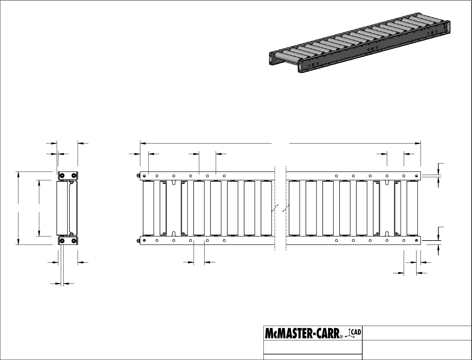 NUMBER PART Information in this drawing is provided for reference only. http://www.mcmaster.com 13" 10" 3 3/4" 1/4" 3 1/2" 7/16" Hex Axle 5 ft. 3/4" 2 1/4" 3/4" 1 1/2" 3" Roller Spacing 1.9" Dia. Roller 3" 13/32" 5746K164 High-Capacity Roller Conveyor © 2021 McMaster-Carr Supply Company http://www.mcmaster.com Sheet1 Drawing View1 Drawing View2 Drawing View3