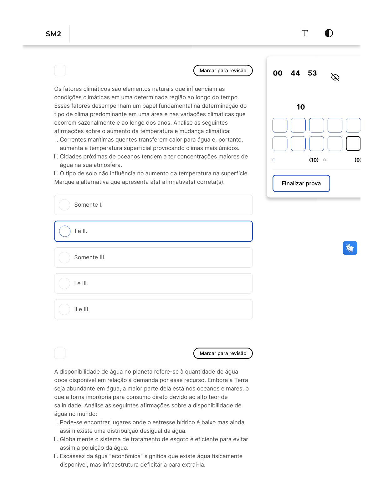 A B C D E 1 Os fatores climáticos são elementos naturais que influenciam as condições climáticas em uma determinada região ao longo do tempo. Esses fatores desempenham um papel fundamental na determinação do tipo de clima predominante em uma área e nas variações climáticas que ocorrem sazonalmente e ao longo dos anos. Analise as seguintes afirmações sobre o aumento da temperatura e mudança climática: I� Correntes marítimas quentes transferem calor para água e, portanto, aumenta a temperatura superficial provocando climas mais úmidos. II� Cidades próximas de oceanos tendem a ter concentrações maiores de água na sua atmosfera. III� O tipo de solo não influência no aumento da temperatura na superfície. Marque a alternativa que apresenta a(s) afirmativa(s) correta(s). Somente I. I e II. Somente III. I e III. II e III. 2 A disponibilidade de água no planeta refere-se à quantidade de água doce disponível em relação à demanda por esse recurso. Embora a Terra seja abundante em água, a maior parte dela está nos oceanos e mares, o que a torna imprópria para consumo direto devido ao alto teor de salinidade. Análise as seguintes afirmações sobre a disponibilidade de água no mundo: I� Pode-se encontrar lugares onde o estresse hídrico é baixo mas ainda assim existe uma distribuição desigual da água. II� Globalmente o sistema de tratamento de esgoto é eficiente para evitar assim a poluição da água. III� Escassez da água "econômica" significa que existe água fisicamente disponível, mas infraestrutura deficitária para extrai-la. hora : min : seg Ocultar Questão de 10 Respondidas Em branco 1 2 3 4 5 6 7 8 9 10 Gestão De Recursos Hídricos Firefox https://estacio.saladeavaliacoes.com.br/prova/664e61a47189329dc8c995a8/ 1 of 8 22/05/2024, 18:26 A B C D E A B C Marque a alternativa que apresenta a(s) afirmativa(s) correta(s). I e III. I. I e II. I, II e III. II. 3 �CETREDE/2022 � Adaptada) A Política Nacional de Recursos Hídricos determina que todos os usos que alterarem a qualidade, a quantidade e o regime existente nos corpos d’água superficiais ou subterrâneos estão sujeitos à outorga. Dispõe, ainda, que cabe ao Poder Executivo Federal, dos Estados ou do Distrito Federal a emissão da outorga, por meio de entidades competentes para tal fim. Com a publicação da Lei n° 9.984, de 17 de julho de 2000, foi criada a Agência Nacional de Águas �ANA�, como a entidade responsável pela implementação da Política Nacional de Recursos Hídricos. Entre as atribuições da ANA estabelecidas nessa lei está a de outorgar, por intermédio de autorização, o direito de uso de recursos hídricos em corpos d’água. Marque a alternativa que caracteriza os corpos d’água para os quais é função da ANA autorizar o direito de uso dos recursos hídricos. Cursos de água que banham apenas um Estado ou o Distrito Federal. Cursos de água para a satisfação das necessidades de pequenos núcleos populacionais, distribuídos no meio rural. Cursos de água que banham apenas um Estado ou o Distrito Federal, rios, lagos e represas que dividem ou passam por dois ou mais Estados. Firefox https://estacio.saladeavaliacoes.com.br/prova/664e61a47189329dc8c995a8/ 2 of 8 22/05/2024, 18:26 D E A B C D E Cursos de água que banham apenas um Estado ou o Distrito Federal, corpos d’água de domínio da União, rios, lagos e represas que dividem ou passam por dois ou mais Estados e pela fronteira entre o Brasil e outro país. Corpos d’água de domínio da União, rios, lagos e represas que dividem ou passam por dois ou mais Estados ou pela fronteira entre o Brasil e outro país. 4 �IBFC/2021 � Adaptada) A Política Nacional de Recursos Hídricos do Brasil, instituída pela Lei nº 9.433/1997, estabelece uma abordagem integrada e sustentável para a gestão dos recursos hídricos no país. Acerca dos objetivos da cobrança pelo uso de recursos hídricos, conforme disposto na Lei Federal n.º 9.433/1997, analise as afirmativas abaixo e dê valores de verdadeiro �V� ou falso �F�. ( ) A cobrança pelo uso de recursos hídricos objetiva a obtenção de lucro para o Poder Executivo atuar na área da saúde. ( ) A cobrança pelo uso de recursos hídricos objetiva incentivar a racionalização do uso da água. ( ) A cobrança pelo uso de recursos hídricos objetiva reconhecer a água como bem econômico e dar ao usuário uma indicação de seu real valor. Assinale a alternativa que apresenta a sequência correta de cima para baixo. F, F, V. V, V, V. V, F, F. F, V, F. F, V, V. Firefox https://estacio.saladeavaliacoes.com.br/prova/664e61a47189329dc8c995a8/ 3 of 8 22/05/2024, 18:26 A B C D E 5 As atribuições propositivas dos Comitês de Bacia Hidrográfica visam contribuir ativamente para o desenvolvimento de estratégias e ações que promovam o uso sustentável e equitativo da água. São atribuições propositivas dos Comitês de Bacia: Estabelecer prioridades e critérios gerais para a concessão. Propor os valores a serem cobrados pelo uso da água. Arbitrar em primeira instância conflitos sobre o uso da água. Coordenar as atividades das entidades envolvidas. Promover ou discutir questões relacionadas com os recursos hídricos. 6 A Lei Federal nº 9.433/97 é conhecida como a "Lei das Águas" ou a "Lei de Recursos Hídricos". Trata-se de uma legislação fundamental no Brasil que estabelece a Política Nacional de Recursos Hídricos, ou seja, um conjunto de princípios, diretrizes e instrumentos para a gestão, proteção e uso sustentável dos recursos hídricos do país. Analise as afirmações a abaixo, com relação a Política Nacional de Recursos Hídricos: I. Considerando que o uso prioritário dos recursos hídricos é o consumo humano e a geração de energia elétrica, o Comitê de todas as Bacias Hidrográficas com capacidade de produzir energia elétrica deve, prioritariamente, ter na composição um representante da ANEEL �