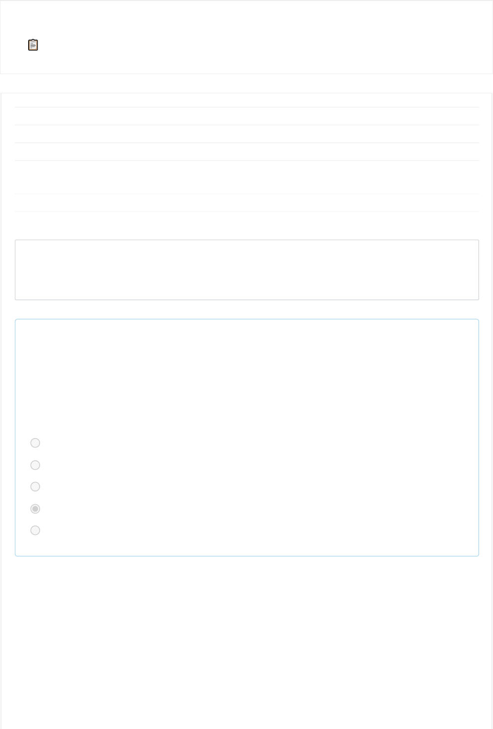 Painel / Meus cursos / Introdução à Matemática (Matemática - UniCV R2) / 📋 AVALIAÇÃO ON-LINE / CLIQUE AQUI: AVALIAÇÃO ONLINE AVUNICVR2 Iniciado em segunda, 10 jun 2024, 11:34 Estado Finalizada Concluída em segunda, 10 jun 2024, 12:50 Tempo empregado 1 hora 16 minutos Notas 10,00/10,00 Avaliar 10,00 de um máximo de 10,00(100%) Questão 1 Correto Atingiu 0,68 de 0,68 Determine o 5º (quinto) termo de uma PG (Progressão Geométrica) onde o primeiro termo é 3 e a razão é 7. Assinale a alternativa correta. Escolha uma opção: a. 16807 b. 2401 c. 35 d. 7203 e. 343 10/06/2024, 12:51 CLIQUE AQUI: AVALIAÇÃO ONLINE AVUNICVR2 https://moodle.ead.unifcv.edu.br/mod/quiz/review.php?attempt=3989693 1/15 https://moodle.ead.unifcv.edu.br/my/ https://moodle.ead.unifcv.edu.br/my/ https://moodle.ead.unifcv.edu.br/course/view.php?id=3930 https://moodle.ead.unifcv.edu.br/course/view.php?id=3930#section-3 https://moodle.ead.unifcv.edu.br/mod/quiz/view.php?id=74695 Questão 2 Correto Atingiu 0,67 de 0,67 Conforme contextualizado em nosso material, entende-se que se todo elemento de um conjunto A pertence a um conjunto B, então A é denominado subconjunto de B. Com base nesta informação analise as asserções abaixo: I. A definição de subconjunto denota uma relação de continência entre conjuntos. PORQUE II. Se A é subconjunto de B, podemos dizer de forma equivalente que A está contido em B, B contém A, ou ainda B é parte de A. A respeito dessas asserções, assinale a opção correta: Escolha uma opção: a. A asserção I é uma proposição falsa e a II é uma proposição verdadeira. b. A asserção I é uma proposição verdadeira e a II é uma proposição falsa. c. As asserções I e II são proposições verdadeiras e a II é uma justificativa correta da I. d. As asserções I e II são proposições verdadeiras, mas a II não é uma justificativa correta da I. e. As asserções I e II são proposições falsas. 10/06/2024, 12:51 CLIQUE AQUI: AVALIAÇÃO ONLINE AVUNICVR2 https://moodle.ead.unifcv.edu.br/mod/quiz/review.php?attempt=3989693 2/15 Questão 3 Correto Atingiu 0,67 de 0,67 Quando um número é considerado de difícil resolução por uma potência, existe uma substituição, para melhor resolução dos raciocínios. Neste sentido, avalie as afirmativas a seguir que correspondem à operação inversa à potenciação. Assinale a alternativa correta: Escolha uma opção: a. Somatória. b. Avaliação. c. Análise vertical. d. Logaritmo. e. Multiplicação. Questão 4 Correto Atingiu 0,67 de 0,67 Dada a expressão , onde , que determina a concavidade da parábola, , que define a inclinação da curva, e , ponto em que a parábola intercepta o eixo são números reais, com , para todo . De acordo com o texto mencionado, avalie as afirmativas a seguir sobre qual função se refere. Assinale a alternativa correta: Escolha uma opção: a. Função polinomial do segundo grau. b. Gráficos de funções exponenciais. c. Raízes de uma função do segundo grau. d. Funções do primeiro grau e seus gráficos. e. Multiplicidade de uma raiz de uma função polinomial. f(x) = a + bx + cx2 a b c y a ≠ 0 x ∈ R 10/06/2024, 12:51 CLIQUE AQUI: AVALIAÇÃO ONLINE AVUNICVR2 https://moodle.ead.unifcv.edu.br/mod/quiz/review.php?attempt=3989693 3/15 Questão 5 Correto Atingiu 0,67 de 0,67 A potenciação é a representação da multiplicação sucessiva de um número por ele mesmo, ou seja, é a multiplicação de fatores iguais. Mediante esse contexto, a potenciação também pode ser denominada como? Avalie as afirmativas a seguir: I. Formulação. II. Reformulação. III. Exponenciação. IV. Experimentação. Assinale a alternativa correta: Escolha uma opção: a. Apenas III está correta. b. Apenas I e II estão corretas. c. Apenas I está correta. d. Apenas II, III e IV estão corretas. e. Apenas II e III estão corretas. 10/06/2024, 12:51 CLIQUE AQUI: AVALIAÇÃO ONLINE AVUNICVR2 https://moodle.ead.unifcv.edu.br/mod/quiz/review.php?attempt=3989693 4/15 Questão 6 Correto Atingiu 0,67 de 0,67 Embasado em nosso material, avalie a seguinte situação hipotética: Qual o valor de se ? Assinale a alternativa correta: Escolha uma opção: a. 0 b. -3 c. 1 d. 2 e. 3 x = 1255x+1 10/06/2024, 12:51 CLIQUE AQUI: AVALIAÇÃO ONLINE AVUNICVR2 https://moodle.ead.unifcv.edu.br/mod/quiz/review.php?attempt=3989693 5/15 Questão 7 Correto Atingiu 0,67 de 0,67 Para classificar a PA (Progressão Aritmética), precisa compreender o cálculo da razão. Com base nesta informação analise as asserções abaixo: I. Dada a sequência, para encontrarmos a razão, basta fazer a subtração de um termo pelo seu antecessor. PORQUE II. Quaisquer dois termos consecutivos da PA geram a razão, ou seja, a diferença de dois números consecutivos será sempre igual a razão. A respeito dessas asserções, assinale a opção correta: Escolha uma opção: a. A asserção I é uma proposição verdadeira e a II é uma proposição falsa. b. As asserções I e II são proposições verdadeiras, mas a II não é uma justificativa correta da I. c. As asserções I e II são proposições verdadeiras e a II é uma justificativa correta da I. d. As asserções I e II são proposições falsas. e. A asserção I é uma proposição falsa e a II é uma proposição verdadeira. 10/06/2024, 12:51 CLIQUE AQUI: AVALIAÇÃO ONLINE AVUNICVR2 https://moodle.ead.unifcv.edu.br/mod/quiz/review.php?attempt=3989693 6/15 Questão 8 Correto Atingiu 0,67 de 0,67 Em uma situação hipotética sobre canais de televisão uma certa quantidade de pessoas foram entrevistadas, e assim surgiram os seguintes dados abaixo: - 40 dizem assistir à TV1; - 40 dizem assistir à TV2; - 40 dizem assistir à TV3; - 20 dizem assistir à TV2 e TV3; - 18 dizem assistir à TV2 e TV1; - 15 dizem assistir à TV1 e TV3; - 10 dizem assistir às três; - 10 não assistem a nenhuma delas. Conforme o explanado e baseando com os estudos da disciplina qual o número d