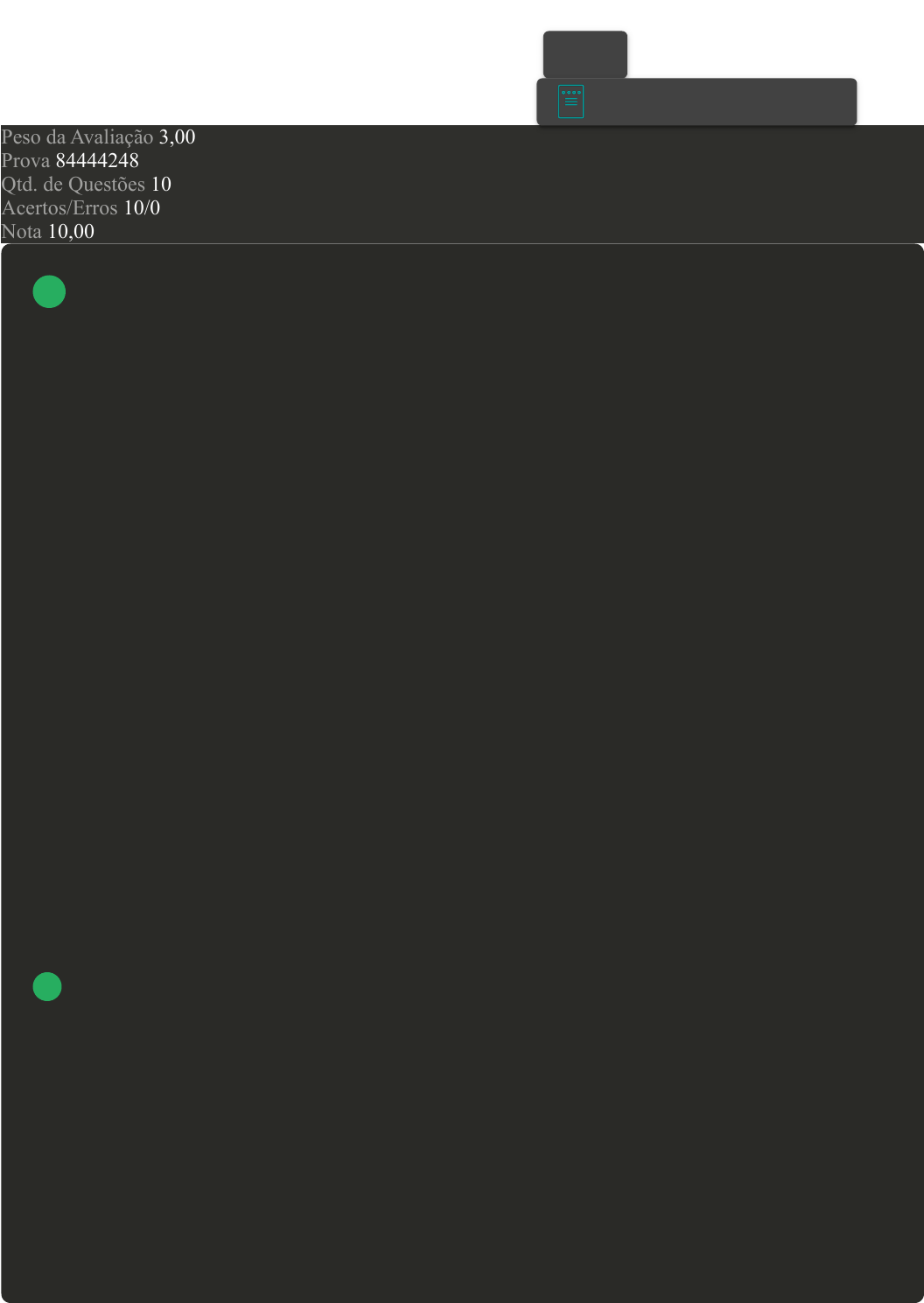 Prova Impressa GABARITO | Avaliação Final (Objetiva) - Individual (Cod.:944283) Peso da Avaliação 3,00 Prova 84444248 Qtd. de Questões 10 Acertos/Erros 10/0 Nota 10,00 O sistema atual de energia elétrica brasileiro é baseado em grandes usinas de geração, cuja energia gerada é transmitida através de sistemas de transmissão de alta tensão, que atingem os sistemas de distribuição de média e baixa tensão, nos quais estão os consumidores. Com base no exposto, analise as sentenças a seguir: I- Desde a década de 1980, o modelo do setor elétrico brasileiro vem sofrendo diversas mudanças, com a criação da ANEEL (Agência Nacional de Energia Elétrica), agente regulador e fiscalizador da produção, transmissão, distribuição e comercialização de energia. Foi criado também o NOS (Operador Nacional do Sistema), responsável pela coordenação e controle da operação da geração e transmissão de energia elétrica no SIN. II- Devido as suas grandes dimensões e ao potencial hídrico, o Brasil tem a maior parte de sua energia elétrica gerada por esse tipo de aproveitamento; ao final da década de 1990, a energia elétrica compreendia mais de 90% da potência elétrica instalada no país. III- As formas de produção de energia elétrica podem ser diversas, sendo gerada através da conversão de alguma outra forma de energia, são utilizadas máquinas elétricas rotativas, geradores síncronos ou alternadores acionados por turbinas hidráulicas, eólicas ou a vapor. Assinale a alternativa CORRETA: A As sentenças II e III estão corretas. B Somente a sentença II está correta. C As sentenças I e II estão corretas. D As sentenças I e III estão corretas. VOLTAR A+ Alterar modo de visualização 1 14/06/2024, 11:12 Avaliação Final (Objetiva) - Individual about:blank 1/8 vharkovtzeff Carimbo [Laboratório Virtual – Transformadores e linhas de transmissão] No laboratório, foram realizados experimentos em que o gerador estava trabalhando de forma isolada, ou seja, temos apenas um gerador para fornecer energia para a carga. Os geradores também podem operar em paralelo, tendo mais de um gerador para fornecer a potência requerida pelas cargas. No entanto, alguns fatores devem ser considerados para que haja essa ligação entre os dispositivos. Com relação às condições de paralelismo em geradores síncronos, assinale a alternativa CORRETA: A Os geradores devem ser colocados em estado de sincronização antes de realizar a ligação em paralelo. B Os geradores devem ser ligados em paralelo a qualquer momento, independentemente das tensões eficazes de linha. C Os geradores devem ser colocados em estado de sincronização depois de realizar a ligação em paralelo. D Os dois geradores devem ter sequência de fases diferentes, para que haja uma defasagem de 120° em cada fase. A diferença entre transmissões de corrente CC (corrente contínua) e corrente CA (corrente alternada) é fundamental para entender o funcionamento da eletricidade e seus usos práticos. A corrente contínua, como o nome indica, é uma corrente elétrica que flui continuamente em uma direção. Por outro lado, a corrente alternada é uma corrente elétrica que muda de direção periodicamente. Com relação às diferenças entre transmissão de corrente alternada e corrente contínua, analise as sentenças a seguir: I- Em transmissões em CC, são encontradas perdas por capacitância entre os condutores, sendo assim, é necessária uma aplicação da eletrônica de potência mais avançada. II- As linhas de transmissão CA necessitam de mais cobre quando comparadas com uma linha de transmissão CC. III- Devido aos problemas de conversão, a corrente contínua não pode ser gerada em valores altos de tensão. 2 3 14/06/2024, 11:12 Avaliação Final (Objetiva) - Individual about:blank 2/8 IV- Devido ao efeito pelicular, em linhas de transmissão em CA, a resistência efetiva da linha se torna maior. Assinale a alternativa CORRETA: A As sentenças I, III e IV estão corretas. B As sentenças I, II e III estão corretas. C As sentenças II e III estão corretas. D Somente a sentença II está correta. A estrutura de um SEP compreende os sistemas de geração, transmissão e distribuição de energia elétrica. Na geração, temos a presença de centrais de produção de energia elétrica com subestações de transformação que interligam essas centrais às linhas de transmissão, que ao chegar na etapa de distribuição temos as cargas conectadas ao sistema. Com base nesse contexto, assinale a alternativa CORRETA: A Um sistema elétrico de potência é uma estrutura simples, quase sempre interligada regional, que necessita de estudos sérios para seu planejamento e recuperação. B Um sistema elétrico de potência é uma estrutura complexa, quase sempre interligada internacionalmente, que necessita de estudos sérios para sua manutenção e operação. C Um sistema elétrico de potência é uma estrutura complexa, quase sempre interligada regional ou nacionalmente, que necessita de estudos sérios para seu planejamento e operação. D Um sistema elétrico de potência é uma estrutura simples, quase sempre interligada entre municípios, que necessita de estudos sérios para sua otimização e monetização. O sistema de distribuição tem a responsabilidade na qualidade do serviço prestado ao consumidor, por ter o contato entre distribuidora e cliente, tendo uma importância fundamental no contexto do sistema elétrico exigindo grandes investimentos na rede elétrica. Com base no exposto, analise as sentenças a seguir: 4 5 14/06/2024, 11:12 Avaliação Final (Objetiva) - Individual about:blank 3/8 I- O planejamento de sistemas de distribuição de energia elétrica é uma atividade na qual o principal objetivo é adequar, ao menor custo, o sistema elétrico e o sistema-suporte de distribuição às futuras solicitações do mercado consumidor, garantindo um suprimento de energia elétrica, c
