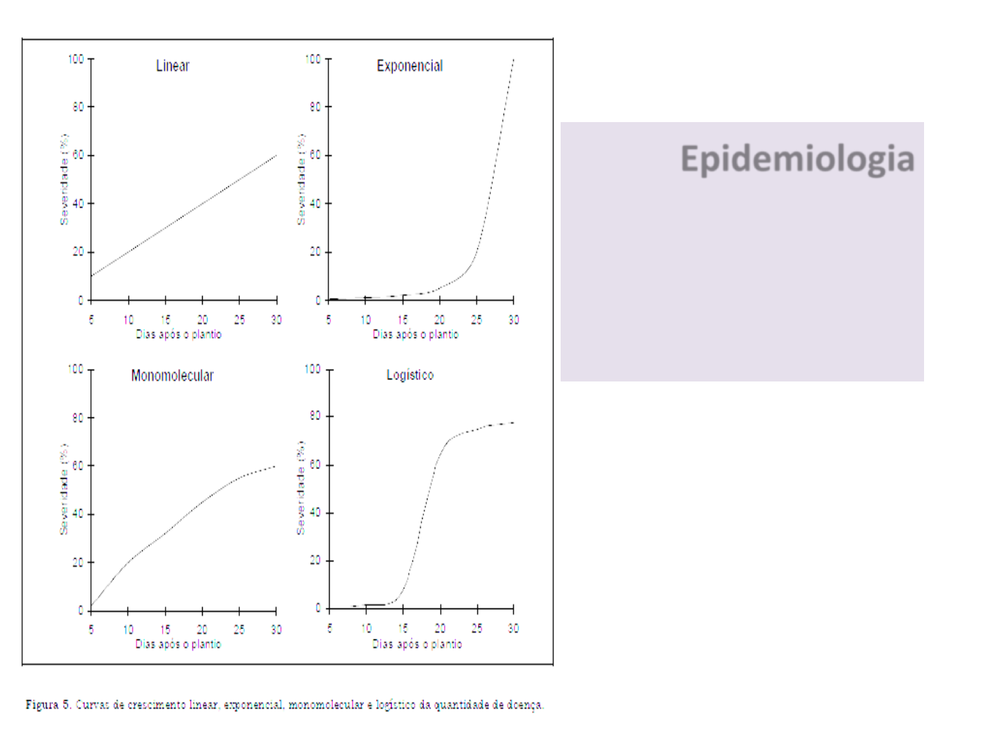 Epidemiologia Epidemiologia aplicada ao controle/manejo de doenças de plantas HELENA GUGLIELMI MONTANO, UFRRJ, DEnF, FITOPATOLOGIA ESPECIAL (IB 238), 2021.3.NÃO AUTORIZO DIVULGAÇÃO DE SLIDES OU GRAVAÇÕES NA INTERNET Antes de iniciarmos o assunto EPIDEMIOLOGIA, lembremos que: • Toda doença possui obrigatoriamente um ciclo primário. • Nem todas as doenças apresentam ciclos secundários de doença. • O surgimento do ciclo primário depende do inóculo primário ou residual. • Os ciclos secundários surgem a partir do inóculo secundário, que é produzido em lesões na planta hospedeira doente. • O final do ciclo secundário coincide, frequentemente, com o final do tecido hospedeiro (morte das plantas anuais e queda de folhas em plantas perenes decíduas). HELENA GUGLIELMI MONTANO, UFRRJ, DEnF, FITOPATOLOGIA ESPECIAL (IB 238), 2021.3.NÃO AUTORIZO DIVULGAÇÃO DE SLIDES OU GRAVAÇÕES NA INTERNET Conhecendo o significado de ciclo primário e ciclo secundário de doença, podemos falar nas doenças monocíclicas e policíclicas. HELENA GUGLIELMI MONTANO, UFRRJ, DEnF, FITOPATOLOGIA ESPECIAL (IB 238), 2021.3.NÃO AUTORIZO DIVULGAÇÃO DE SLIDES OU GRAVAÇÕES NA INTERNET Doenças Monocíclicas e Doenças Policíclicas HELENA GUGLIELMI MONTANO, UFRRJ, DEnF, FITOPATOLOGIA ESPECIAL (IB 238), 2021.3.NÃO AUTORIZO DIVULGAÇÃO DE SLIDES OU GRAVAÇÕES NA INTERNET DOENÇAS MONOCÍCLICAS • DOENÇAS MONOCÍCLICAS • Doenças que apenas apresentam o ciclo primário (e não apresentam ciclos secundários). • Nas doenças monocíclicas, plantas infectadas durante o ciclo da cultura não servem de fonte de inóculo para novas infecções no mesmo ciclo. HELENA GUGLIELMI MONTANO, UFRRJ, DEnF, FITOPATOLOGIA ESPECIAL (IB 238), 2021.3.NÃO AUTORIZO DIVULGAÇÃO DE SLIDES OU GRAVAÇÕES NA INTERNET DOENÇAS MONOCÍCLICAS • DOENÇAS MONOCÍCLICAS • Nas doenças monocíclicas, os patógenos envolvidos completam 1 ciclo por estação. O inóculo primário é o único inóculo disponível durante todo o ciclo da cultura (não há produção de inóculo secundário) HELENA GUGLIELMI MONTANO, UFRRJ, DEnF, FITOPATOLOGIA ESPECIAL (IB 238), 2021.3.NÃO AUTORIZO DIVULGAÇÃO DE SLIDES OU GRAVAÇÕES NA INTERNET DOENÇAS MONOCÍCLICAS • DOENÇAS MONOCÍCLICAS Doenças como murchas vasculares – patógenos de solo murchas de Fusarium, murchas de verticílio, murcha bacteriana das solanáceas, galhas radiculares por nematoides HELENA GUGLIELMI MONTANO, UFRRJ, DEnF, FITOPATOLOGIA ESPECIAL (IB 238), 2021.3.NÃO AUTORIZO DIVULGAÇÃO DE SLIDES OU GRAVAÇÕES NA INTERNET HELENA GUGLIELMI MONTANO, UFRRJ, DEnF, FITOPATOLOGIA ESPECIAL (IB 238), 2021.3.NÃO AUTORIZO DIVULGAÇÃO DE SLIDES OU GRAVAÇÕES NA INTERNET HELENA GUGLIELMI MONTANO, UFRRJ, DEnF, FITOPATOLOGIA ESPECIAL (IB 238), 2021.3.NÃO AUTORIZO DIVULGAÇÃO DE SLIDES OU GRAVAÇÕES NA INTERNET DOENÇAS POLICÍCLICAS • DOENÇAS POLICÍCLICAS • Possuem o ciclo primário (como sabemos toda doença tem um ciclo primário) e podem apresentar vários ciclos secundários de doença. • No caso das doenças policíclicas, plantas infectadas durante o ciclo da cultura servem de fonte de inóculo (com a produção do inóculo secundário) para novas infecções no mesmo ciclo. HELENA GUGLIELMI MONTANO, UFRRJ, DEnF, FITOPATOLOGIA ESPECIAL (IB 238), 2021.3.NÃO AUTORIZO DIVULGAÇÃO DE SLIDES OU GRAVAÇÕES NA INTERNET SARNA DA MACIEIRA HELENA GUGLIELMI MONTANO, UFRRJ, DEnF, FITOPATOLOGIA ESPECIAL (IB 238), 2021.3.NÃO AUTORIZO DIVULGAÇÃO DE SLIDES OU GRAVAÇÕES NA INTERNET Gauthier, Nicole. 2018. Apple scab. The Plant Health Instructor. DOI: 10.1094/PHI- I-2000-1005- 01 Updated 2018. Previous version by Vaillancour t, L.J. and J.R. Hartman. Gauthier, Nicole. 2018. Apple scab. The Plant Health Instructor. DOI: 10.1094/PHI-I- 2000-1005-01 Updated 2018. Previous version by Vaillancourt, L.J. and J.R. Hartman. HELENA GUGLIELMI MONTANO, UFRRJ, DEnF, FITOPATOLOGIA ESPECIAL (IB 238), 2021.3.NÃO AUTORIZO DIVULGAÇÃO DE SLIDES OU GRAVAÇÕES NA INTERNET CICLO PRIMÁRIO CICLO SECUNDÁR IO CONÍDIOS = INÓCULO SECUNDÁRIO ASCOSPOROS =INÓCULO PRIMÁRIO Foto do PSEUDOTÉCIO: http://botit.botany.wisc.edu /toms_fungi/sep2002.html HELENA GUGLIELMI MONTANO, UFRRJ, DEnF, FITOPATOLOGIA ESPECIAL (IB 238), 2021.3.NÃO AUTORIZO DIVULGAÇÃO DE SLIDES OU GRAVAÇÕES NA INTERNET • Vamos reservar o conhecimento sobre doenças monocíclicas e policíclicas para um próximo momento...... • Agora, vamos à epidemiologia...... HELENA GUGLIELMI MONTANO, UFRRJ, DEnF, FITOPATOLOGIA ESPECIAL (IB 238), 2021.3.NÃO AUTORIZO DIVULGAÇÃO DE SLIDES OU GRAVAÇÕES NA INTERNET O que é epidemiologia? • Segundo Agrios (2005), epidemiologia é o estudo da epidemia e dos fatores que a influenciam. [AGRIOS, G. 2005. Plant Pathology. 5th Edition. New York: Academic Press. 2005. 922p.] Epidemia tem sido definida como aumento de doença em uma população HELENA GUGLIELMI MONTANO, UFRRJ, DEnF, FITOPATOLOGIA ESPECIAL (IB 238), 2021.3.NÃO AUTORIZO DIVULGAÇÃO DE SLIDES OU GRAVAÇÕES NA INTERNET Epidemia é um termo controverso na Fitopatologia porque..... • “Como pode haver uma epidemia em plantas? (Gr. epi = sobre; demos, gente). Bem, falando de forma restrita, devemos chamá-la uma epifitotia (epiphytotic), mas o termo “epidemia” se tornou tão amplamente usado em referência à doença de planta e tão arraigado na literatura fitopatológica, que somos forçados a ceder e deixar o termo epifitotia aos puristas etimológicos”. [ARNESON, P.A. 2001 Plant Disease Epidemiology: Temporal Aspects. The Plant Health Instructor. DOI: 10.1094/PHI-A-2001-0524-01. (Revised 2011)] – Definição de epifitotia: “de, relacionado a, ou sendo uma doença de planta que tende a recorrer esporadicamente e afetar grandes números de plantas suscetíveis”. HELENA GUGLIELMI MONTANO, UFRRJ, DEnF, FITOPATOLOGIA ESPECIAL (IB 238), 2021.3.NÃO AUTORIZO DIVULGAÇÃO DE SLIDES OU GRAVAÇ