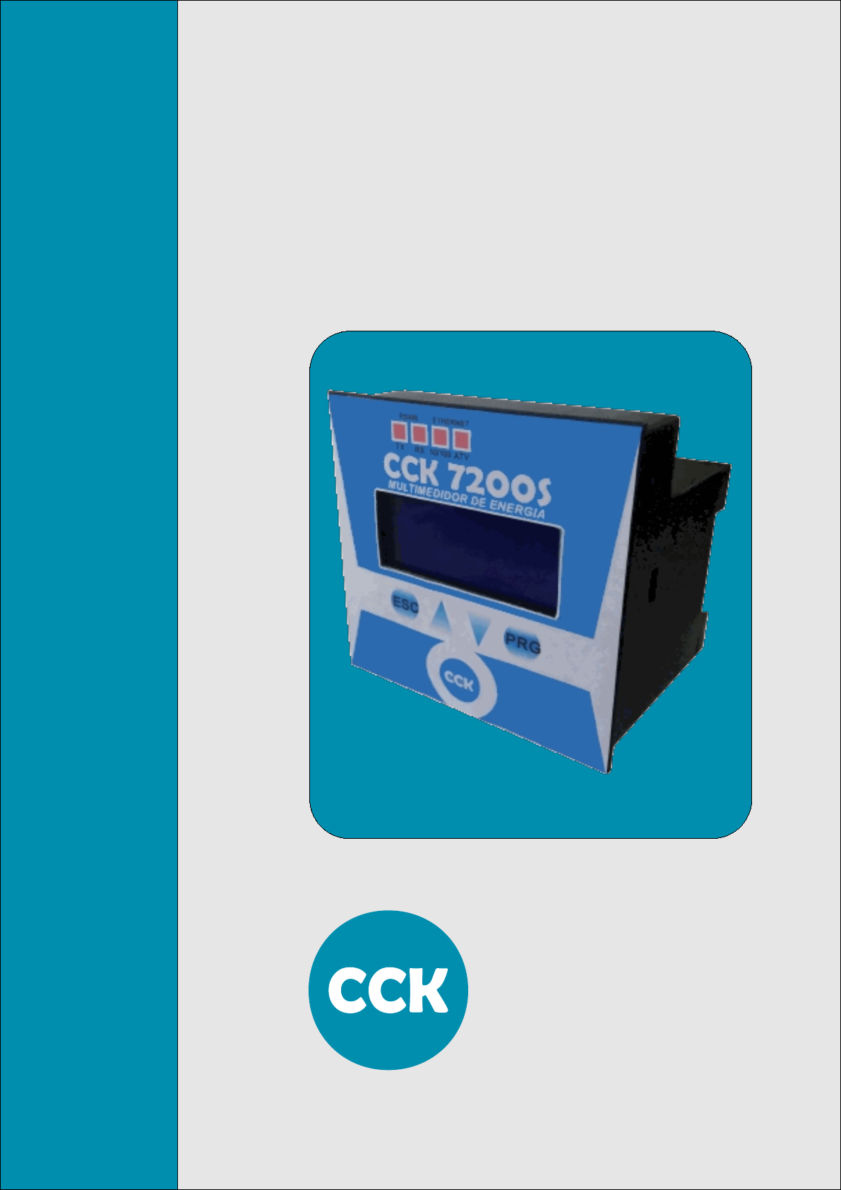 MANUAL DE MANUAL DE INSTALAÇÃO E INSTALAÇÃO E OPERAÇÃOOPERAÇÃO C C K 72 0 0 S MULTIMEDIDOR DE GRANDEZAS ELÉTRICAS E HARMÔNICAS COM ETHERNET INFORMAÇÕES IMPORTANTES As informações neste documento estão sujeitas a modificações sem prévia comunicação e não representam uma obrigação por parte da CCK AUTOMAÇÃO LTDA. Nenhuma parte deste documento pode ser copiada ou reproduzida por qualquer meio eletrônico ou forma legível, sem a prévia autorização escrita da CCK AUTOMAÇÃO LTDA. CCK AUTOMAÇÃO LTDA. (BRASIL), 2018. Todos os direitos reservados. NOTAS SOBRE RESERVA DE DIREITOS Qualquer produto ou nome de empresa citado neste documento é marca registrada de seus legítimos proprietários. 21. agosto 2018 Matriz - Escritório Av. Jamaris,855 - Planalto Paulista - CEP:04078-002 São Paulo - SP Fone: +55 (11)5051-1297 vendas@cck.com.br Fábrica e Assistência Técnica Av. Sapucaí, 500 - Boa Vista - CEP:37.540-000 Santa Rita do Sapucaí - MG Fone:+55 (35) 3471-4223 Fone:+55 (35) 3471-4723 Fone:+55 (35) 3471-7362 ccksr@cck.com.br www.cck.com.br cck@cck.com.br CCK Automação - Manual de Instalação e Operação - CCK 7200S - 21/08/2018 - Rev. 4 - Página 2 mailto:vendas@cck.com.br mailto:cck@cck.com.br http://www.cck.com.br/ mailto:ccksr@cck.com.br mailto:vendas@cck.com.br SUMÁRIO DE FIGURAS Figura 1: COMUNICAÇÃO SERIAL NO PADRÃO RS 485...................................................8 Figura 2: LIGAÇÃO RS485.........................................................................................8 Figura 3: COMUNICAÇÃO PADRÃO ETHERNET 10/100 Mb..............................................9 Figura 4: MEDIDAS MECÂNICAS...............................................................................15 Figura 5: ÂNGULOS NA LIGAÇÃO TRIFÁSICA FASE NEUTRO, 4 FIOS..............................16 Figura 6: ESQUEMA DE LIGAÇÃO TRIFÁSICA FASE NEUTRO, 4 FIOS SEM TP...................17 Figura 7: ESQUEMA DE LIGAÇÃO TRIFÁSICA FASE NEUTRO, 4 FIOS COM TP..................18 Figura 8: ÂNGULOS NA LIGAÇÃO TRIFÁSICA FASE FASE, 3 FIOS..................................19 Figura 9: ESQUEMA DE LIGAÇÃO TRIFÁSICA FASE FASE, 3 FIOS SEM TP.......................20 Figura 10: ESQUEMA DE LIGAÇÃO TRIFÁSICA FASE FASE, 3 FIOS COM TP.....................21 Figura 11: DISPLAY EXEMPLO DO MODO DE PROGRAMAÇÃO........................................25 Figura 12: DISPLAY NO MODO DE PROGRAMAÇÃO DE DATA E HORA.............................25 Figura 13: DISPLAY NO MODO DE PROGRAMAÇÃO DE TP.............................................26 Figura 14: DISPLAY NO MODO DE PROGRAMAÇÃO DE TC............................................26 Figura 15: DISPLAY NO MODO DE PROGRAMAÇÃO ELEMENTOS E LIGAÇÃO....................27 Figura 16: DISPLAY NO MODO DE PROGRAMAÇÃO DA COMUNICAÇÃO...........................27 Figura 17: DISPLAY NO MODO DE PROGRAMAÇÃO DE SENHA......................................28 Figura 18: DISPLAY NO MODO DE INÍCIO DE MEMÓRIA...............................................28 Figura 19: DISPLAY NO MODO DE PROGRAMAÇÃO DE IP.............................................29 Figura 20: EXEMPLO DE COMUNICAÇÃO COM O APLICATIVO CAS MODBUS SCANNER.....32 Figura 21: EXEMPLO DE COMUNICAÇÃO COM O APLICATIVO MODBUS MASTER..............32 Figura 22: EXEMPLO DE COMUNICAÇÃO COM O APLICATIVO MODBUS TESTER...............33 CCK Automação - Manual de Instalação e Operação - CCK 7200S - 21/08/2018 - Rev. 4 - Página 3 SUMÁRIO DE TABELAS Tabela 1: GRANDEZAS DE MEDIÇÃO...........................................................................7 Tabela 2: FÓRMULAS..............................................................................................10 Tabela 3: GRANDEZAS ARMAZENADAS EM MEMÓRIA DE MASSA...................................11 Tabela 4: IDENTIFICAÇÃO DOS BORNES DE MEDIÇÃO................................................13 Tabela 5: IDENTIFICAÇÃO DOS BORNES...................................................................14 Tabela 6: VALORES DE FATOR DE POTÊNCIA x ÂNGULOS............................................19 Tabela 7: INFORMAÇÕES MOSTRADAS NO DISPLAY....................................................23 Tabela 8: INFORMAÇÕES DO DISPLAY.......................................................................24 Tabela 9: SEQUÊNCIA DO DISPLAY NO MODO DE PROGRAMAÇÃO................................25 Tabela 10: MAPA DAS VARIÁVEIS MODBUS................................................................31 CCK Automação - Manual de Instalação e Operação - CCK 7200S - 21/08/2018 - Rev. 4 - Página 4 SUMÁRIO INSPEÇÕES PRELIMINARES.......................................................................................6 RECOMENDAÇÕES....................................................................................................6 DESCRIÇÃO FUNCIONAL...........................................................................................6 TABELA DE MEDIÇÃO................................................................................................7 HARMÔNICAS..........................................................................................................7 CONTADORES DE ENERGIA.......................................................................................7 COMUNICAÇÃO SERIAL.............................................................................................8 COMUNICAÇÃO - PADRÃO ETHERNET 10/100 MB.........................................................9 FÓRMULAS DE MEDIÇÃO.........................................................................................10 ÂNGULOS DE FASE.................................................................................................11 FATOR DE POTÊNCIA..............................................................................................11 MEMÓRIA DE MASSA DE MEDIÇÃO................................................................