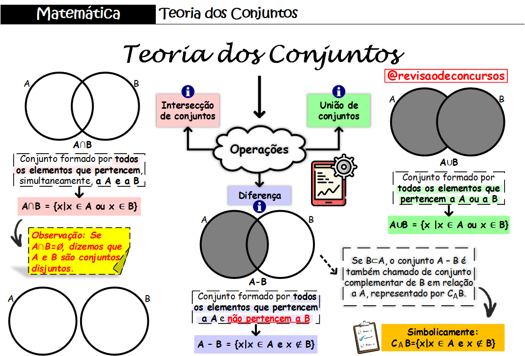 União de Conjuntos (A ∪ B): A união é uma operação que combina todos os elementos de dois conjuntos, formando um novo conjunto que contém todos os ...