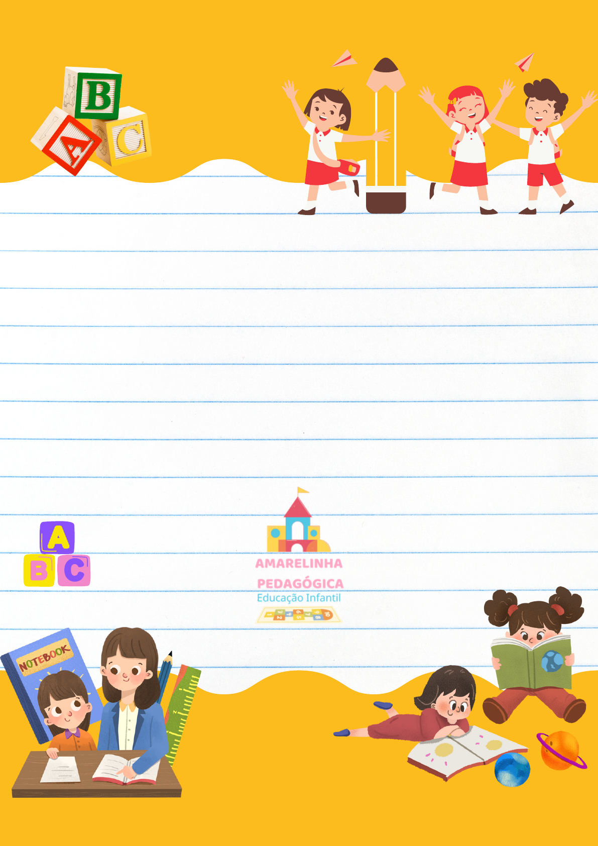 para Educação Infantil 50 jogos pedagógicos Recurso para trabalhar as vogais de forma lúdica. Como fazer a atividade: Peça para criança associar a figura que corresponda a imagem com a inical da vogal da casinha. APOSTILAAPOSTILA CASINHA DAS VOGAISCASINHA DAS VOGAIS INFORMAÇÕES: ATENÇÃO! A apostila, jogos/arquivos são de direitos autorais da AMARELINHA PEDAGÓGICA educação infantil. Portanto você está ciente que: 1. Ao comprar o(s) arquivos concorda que adquirirá o direito de usá-lo para fins pessoais sendo eles pedagógicos, consultórios e em casa. 2. É PROIBIDO reproduzir e distribuir cópias, revender, compartilhar/hospedar para outros que não para seu próprio uso. Conforme Lei de Direitos Autorais Lei No 9.610/98 APOSTILAAPOSTILA CASINHA DAS VOGAISCASINHA DAS VOGAIS RECORTE OS CARDS PARA ATIVIDADE ACIMA! É possível imprimir a página e cartelas das rimas quantas vezes forem necessárias. Sugestão de uso: Distribua as cartelas entre os participantes. uma pessoa ficará encarregada de ser o juiz e "cantar" as fichas azuis. Os participantes devem conferir em sua cartela se tem algum item que rime com a carta "cantada"; se sim, ele deverá deixar marcado. Ganha quem marcar toda sua cartela primeiro. dica: deixem separado as fichas já sorteadas para uma posterior confirmação, nesse momento todos os alunos podem auxiliar e participar, dizendo se rima ou não. BINGOBINGO DAS RIMASDAS RIMAS INFORMAÇÕES: ATENÇÃO! BINGOBINGO DAS RIMASDAS RIMAS A apostila, jogos/arquivos são de direitos autorais da AMARELINHA PEDAGÓGICA educação infantil. Portanto você está ciente que: 1. Ao comprar o(s) arquivos concorda que adquirirá o direito de usá-lo para fins pessoais sendo eles pedagógicos, consultórios e em casa. 2. É PROIBIDO reproduzir e distribuir cópias, revender, compartilhar/hospedar para outros que não para seu próprio uso. Conforme Lei de Direitos Autorais Lei No 9.610/98 BINGOBINGO DAS RIMASDAS RIMAS BINGOBINGO DAS RIMASDAS RIMAS ANEL LEÃO PANELA CENOURA COGUMELO GATO DENTE JOELHO CADEIRA PAPEL MÃO MOLA RECORTE NO MEIO DAS DUAS FICHAS BINGOBINGO DAS RIMASDAS RIMAS BINGOBINGO DAS RIMASDAS RIMAS ABACATE SOL LUVA VENTILADOR MOLA CORAÇÃO ASA GIRAFA ORELHA BALEIA CAFÉ ABACATE RECORTE NO MEIO DAS DUAS FICHAS BINGOBINGO DAS RIMASDAS RIMAS BINGOBINGO DAS RIMASDAS RIMAS VACA BANDEIRA PICOLÉ DIAMANTE SORVETE GRAVATA CORAÇÃO PANELA BALEIA CASTELO DIAMANTE CADEIRA RECORTE NO MEIO DAS DUAS FICHAS BINGOBINGO DAS RIMASDAS RIMAS BOLA PÃO GELADEIRA PENTE PASTEL COELHO PAVÃO TOMATE CHAPÉU SECADOR UVA CARACOL AVIÃO TESOURA ABELHA FOGUETE MARTELO BONÉ SEREIA CASA RECORTE OS CARDS PARA ATIVIDADE ACIMA: BINGOBINGO DAS RIMASDAS RIMAS PATO JANELA ELEFANTE ÁGUA BARATA FOGUEIRA FACA RECORTE OS CARDS PARA ATIVIDADE ACIMA: Ontem Lidando com meus sentimentos Complete as faces abaixo desenhando sua aparência com base em como você se sente. Hoje Amanhã Amanhã, espero me sentir: Hoje me sinto: Ontem me senti: SERES VIVOS IDENTIFIQUE COLANDO OS CARDS NAS CASINHAS ABAIXO: SERES NÃO VIVOS IDENTIFIQUE COLANDO OS CARDS NAS CASINHAS ABAIXO: DITADO RECORTADO DOS ANIMAIS DITADO RECORTADO DOS ANIMAIS COBRA GATO SAPO VACA GALINHA PATO TARTARUGA ABELHA COELHO ELEFANTE CARANGUEJO CAVALO ZEBRA GIRAFA CARACOL PÁSSARO MACACO RATO RECORTE PARA ATIVIDADE ACIMA: DITADO RECORTADO DAS FRUTAS DITADO RECORTADO DAS FRUTAS MORANGO KIWI BANANA ABACATE MELANCIA LARANJA MAÇA ABACAXI MAMÃO UVA CEREJA LIMÃO PERA PÊSSEGO MELÃO CARAMBOLA PITAYA AMEIXA RECORTE PARA ATIVIDADE ACIMA: IDENTIFICANDO PARTESIDENTIFICANDO PARTES DO CORPO HUMANODO CORPO HUMANO CORTE AS PARTES DO CORPO PARA ROTULAR! ORELHA BOCA NARIZ OLHO MÃO JOELHO BARRIGA PÉ BRAÇO CABEÇA BARRIGA VAMOS TRABALHAR A GRAFOMOTRICIDADE DOS NÚMEROS, PEÇA PARA CRIANÇA APAGAR COM ÁLCOOL O CANETÃO PARA TREINAR VÁRIAS VEZES! PAREAMENTO DO ALFABETO! PAREAMENTO DO ALFABETO! PAREAMENTO DO ALFABETO! PAREAMENTO DO ALFABETO! PAREAMENTO DO ALFABETO! PAREAMENTO DO ALFABETO! PAREAMENTO DO ALFABETO! RECORTE OS CARDS PARA ATIVIDADE ACIMA! RECORTE OS CARDS PARA ATIVIDADE ACIMA! RECORTE OS CARDS PARA ATIVIDADE ACIMA! AJUDE A OVELHINHA COMPLETANDO O CAMINHO COM AS LETRAS QUE FALTAM: A C F I J K N Q T V X Z RECORTE OS CARDS PARA ATIVIDADE ACIMA: B D E G H L M O P R S U W Y CATEGORIZAÇÃO DA FÁMILIA PAPAI MAMÃE VOVÓ VOVÔ VOVÓ VOVÔ COLE A FOTO AQUI COLE A FOTO AQUI COLE A FOTO AQUI COLE A FOTO AQUI COLE A FOTO AQUI COLE A FOTO AQUI CATEGORIZAÇÃO DA FÁMILIA IRMÃO(A) AMIGOS PRIMOS TIO TIA PROFESSORA COLE A FOTO AQUI COLE A FOTO AQUI COLE A FOTO AQUI COLE A FOTO AQUI COLE A FOTO AQUI COLE A FOTO AQUI forme vamos conhecer o círculo!vamos conhecer o círculo! Colora Trace formeColora Trace vamos conhecer o quadrado!vamos conhecer o quadrado! AJUDE OS PINGUINS A CHEGAREM NO IGLU VAMOS TRABALHAR A COORDENAÇÃO MOTORA COM OS CACHORRINHOS ? trace sobre a abelhinhatrace sobre a abelhinha trabalhando a coordenação motora fina 0 1 3 44 4 72 5 32 72 5 6 8 53 10 11 13 14 15 26 12 52 19 17 18 71 20 2 3 42 9 7 6 12 16 LABIRINTO DOS NÚMEROSLABIRINTO DOS NÚMEROS Ajude a abelha a encontrar o caminho de casa colorindo os números de 0 a 20 no labirinto do favo de mel: 1 1 1 1 1 1 4 4 4 4 4 2 2 2 2 2 3 3 3 3 3 5 5 5 5 5 trace sobre os numerais COLORA DE CORES DIFERENTES OS CAMINHOS DOS 3 RATINHOS PARA CHEGAREM ATÉ O QUEIJO! Use cores diferentes para percorrer o caminho: BOAS MANEIRAS NA SALA DE AULA E NA ESCOLA! Quais das crianças abaixo estão seguindo as regras? Com a canetinha faça uma estrela para quem estiver merecendo. Fazer bagunça Machucar um colega Compartilhar com um colega Jogar lixo na lixeira Levantar a mão para fazer perguntas Gritar Agradecer Pedir por favor Ṕrestar atenção na aula Trace the Letters! a f k p u b c d e g h i j l m n o q r s t v w x y z trace sobre o alfabeto MATEMÁTICA Encontre as respostas para os seguintes problemas de matemática: 4 - =+ -2 = 1 =+ - 3 =- + =5 16 =-6 3 8 + 7 DECORE Instruções: Decore e pin