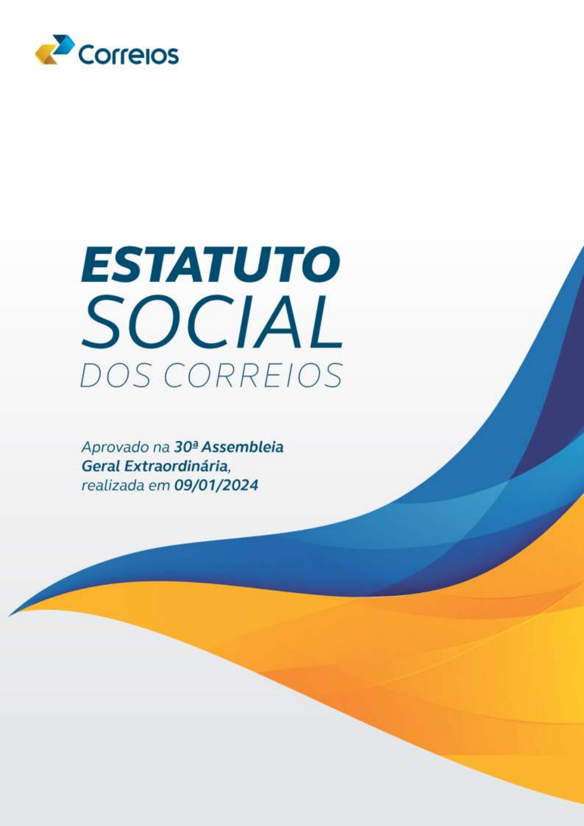 IDENTIFICAÇÃO GERAL EMPRESA BRASILEIRA DE CORREIOS E TELÉGRAFOS CNPJ: 34.028.316/0001-03 - NIRE: 5350000030-5 Empresa Pública de Capital Fechado Histórico de Atualização: Documento de Aprovação Data de Aprovação 9ª Assembleia Geral Extraordinária 28/04/2017 11ª Assembleia Geral Extraordinária 30/01/2018 12ª Assembleia Geral Extraordinária 26/06/2018 13ª Assembleia Geral Extraordinária 04/04/2019 18ª Assembleia Geral Extraordinária 28/01/2020 19ª Assembleia Geral Extraordinária 24/11/2020 24ª Assembleia Geral Extraordinária 04/10/2021 26ª Assembleia Geral Extraordinária 15/09/2022 30ª Assembleia Geral Extraordinária 09/01/2024 https://www.correios.com.br/acesso-a-informacao/institucional/legislacao/estatuto-dos-correios-1/estatuto-dos-correios https://www.correios.com.br/acesso-a-informacao/institucional/legislacao/estatuto-dos-correios-1/estatuto-dos-correios https://www.correios.com.br/acesso-a-informacao/institucional/legislacao/estatuto-dos-correios-1/estatuto-dos-correios https://www.correios.com.br/acesso-a-informacao/institucional/legislacao/estatuto-dos-correios-1/estatuto-dos-correios https://www.correios.com.br/acesso-a-informacao/institucional/legislacao/estatuto-dos-correios-1/estatuto-dos-correios https://www.correios.com.br/acesso-a-informacao/institucional/legislacao/estatuto-dos-correios-1/estatuto-dos-correios https://www.correios.com.br/acesso-a-informacao/institucional/legislacao/estatuto-dos-correios-1/estatuto-dos-correios https://www.correios.com.br/acesso-a-informacao/institucional/legislacao/estatuto-dos-correios-1/estatuto-dos-correios https://www.correios.com.br/acesso-a-informacao/institucional/legislacao/estatuto-dos-correios-1/estatuto-dos-correios Sumário CAPÍTULO I – DESCRIÇÃO DA EMPRESA ............................................................ 4 CAPÍTULO II – ASSEMBLEIA GERAL ................................................................. 5 CAPÍTULO III - REGRAS GERAIS DA ADMINISTRAÇÃO DA ECT ................................... 6 CAPÍTULO IV - CONSELHO DE ADMINISTRAÇÃO ................................................. 10 CAPÍTULO V - DIRETORIA EXECUTIVA ............................................................ 15 CAPÍTULO VI - CONSELHO FISCAL ................................................................. 19 CAPÍTULO VII - COMITÊ DE AUDITORIA ........................................................... 22 CAPÍTULO VIII - COMITÊ DE PESSOAS, ELEGIBILIDADE, SUCESSÃO E REMUNERAÇÃO....... 25 CAPÍTULO IX - DEMONSTRAÇÕES CONTÁBEIS .................................................... 26 CAPÍTULO X - UNIDADES INTERNAS DE GOVERNANÇA .......................................... 28 CAPÍTULO XI - PESSOAL ............................................................................ 30 CAPÍTULO XII - DISPOSIÇÕES GERAIS ............................................................. 31 file:///D:/Users/81320175/Desktop/Estatuto%20-%20Versão%20para%20publicação.docx%23_Toc83992413 file:///D:/Users/81320175/Desktop/Estatuto%20-%20Versão%20para%20publicação.docx%23_Toc83992414 file:///D:/Users/81320175/Desktop/Estatuto%20-%20Versão%20para%20publicação.docx%23_Toc83992415 file:///D:/Users/81320175/Desktop/Estatuto%20-%20Versão%20para%20publicação.docx%23_Toc83992416 file:///D:/Users/81320175/Desktop/Estatuto%20-%20Versão%20para%20publicação.docx%23_Toc83992417 file:///D:/Users/81320175/Desktop/Estatuto%20-%20Versão%20para%20publicação.docx%23_Toc83992418 file:///D:/Users/81320175/Desktop/Estatuto%20-%20Versão%20para%20publicação.docx%23_Toc83992419 file:///D:/Users/81320175/Desktop/Estatuto%20-%20Versão%20para%20publicação.docx%23_Toc83992420 file:///D:/Users/81320175/Desktop/Estatuto%20-%20Versão%20para%20publicação.docx%23_Toc83992420 file:///D:/Users/81320175/Desktop/Estatuto%20-%20Versão%20para%20publicação.docx%23_Toc83992422 file:///D:/Users/81320175/Desktop/Estatuto%20-%20Versão%20para%20publicação.docx%23_Toc83992423 file:///D:/Users/81320175/Desktop/Estatuto%20-%20Versão%20para%20publicação.docx%23_Toc83992424 file:///D:/Users/81320175/Desktop/Estatuto%20-%20Versão%20para%20publicação.docx%23_Toc83992425 - 4 - Seção I Razão Social e Natureza Jurídica Art. 1º A Empresa Brasileira de Correios e Telégrafos - ECT, empresa pública de capital fechado, é regida por este estatuto, especialmente, pelo Decreto-Lei de criação nº 509 de 20 de março de 1969 (alterado pela Lei nº 12.490, de 16 de setembro de 2011), pelas Leis nº 6.404, de 15 de dezembro de 1976, nº 6.538, de 22 de junho de 1978, nº 13.303, de 30 de junho de 2016 e pelo Decreto nº 8.945, de 27 de dezembro de 2016 e demais legislações aplicáveis. Seção II Da Sede e da Representação Geográfica Art. 2º A ECT tem sede e foro na cidade de Brasília, Distrito Federal, e pode criar filiais, agências, escritórios, representações ou quaisquer outros estabelecimentos no País e no exterior. Seção III Do Prazo de Duração Art. 3º O prazo de duração da ECT é indeterminado. Seção IV Do Objeto Social Art. 4º A ECT tem por objeto social, nos termos da lei: I - planejar, implantar e explorar o serviço postal e o serviço de telegrama; II - explorar os serviços postais de logística integrada, financeiros e eletrônicos; III - explorar atividades correlatas; e IV - exercer outras atividades afins, autorizadas pelo ministério supervisor. Art. 5º A ECT poderá, para a consecução do seu objeto social, constituir subsidiárias, assumir o controle acionário de e/ou participar do capital de outras empresas, relacionadas ao seu objeto social, desde que expressamente autorizado em lei. Seção V Do Capital Social Art. 6º O capital social da ECT é R$ 3.403.457.702,21 (três bilhões, quatrocentos e três milhões, quatrocentos e cinquenta e sete mil, setecentos e dois reais e vinte e um centavos), totalmente subscrito e integralizado, constituído integralmente pela União. CAPÍTULO I –