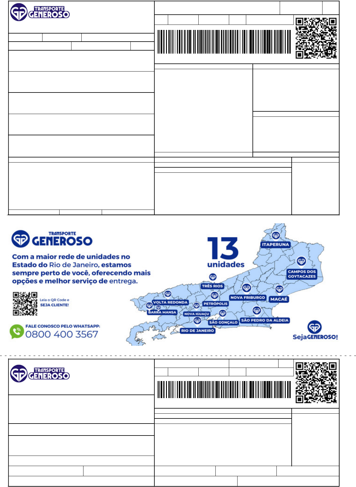 CNPJ CNPJ IE IE RNTRC RNTRC AUTORIZAÇÃO AUTORIZAÇÃO FL FL SÉRIE NÚMERO SÉRIE NÚMERO MODAL MODELO Nº PROTOCOLO MODAL MODELO Nº PROTOCOLO CONTROLE DO FISCO CONTROLE DO FISCO Chave de acesso para consulta de autenticidade no site www.cte.fazenda.gov.br Chave de acesso para consulta de autenticidade no site www.cte.fazenda.gov.br TIPO DO CT-E TIPO DO SERVICO CFOP - NATUREZA DA PRESTAÇÃO ORIGEM DA PRESTAÇÃO DESTINO DA PRESTAÇÃO EMITIDO POR 33.2405.28.595.532/0001-38-57-022-000.092.179-111.123.570-0 33.2405.28.595.532/0001-38-57-022-000.092.179-111.123.570-0 Documento Auxiliar do Conhecimento de Transporte Eletrônico Documento Auxiliar do Conhecimento de Transporte Eletrônico D A C T E D A C T E RUA VIRGILINO ALVES NOGUEIRA, 205 RUA VIRGILINO ALVES NOGUEIRA, 205 GOIABAL - FONE: (24)4020-3567 GOIABAL - FONE: (24)4020-3567 BARRA MANSA -RJ -CEP: 27340-140 BARRA MANSA -RJ -CEP: 27340-140 fiscal@generoso.com.br fiscal@generoso.com.br M.L RAMOS & CIA LTDA - EPP M.L RAMOS & CIA LTDA - EPP www.generoso.com.br www.generoso.com.br 28.595.532/0001-38 87435261 28.595.532/0001-38 87435261 00424524 00424524 233240012251497 233240012251497 29/05/24 22:57 1/1 29/05/24 22:57 1/1 22 22 000092179 000092179 RODOVIÁRIO RODOVIÁRIO 57 57 NORMAL NORMAL 5353 Transp a est comercial RIO DE JANEIRO/RJ CAMPOS DOS GOYTACAZE/RJ jovino REMETENTE END MUN CEP CNPJ IE FONE DESTINATARIO SUFRAMA END MUN CEP CNPJ IE FONE EXPEDIDOR END MUN CEP CNPJ IE FONE RECEBEDOR/LOC ENTREGA END MUN CEP CNPJ IE FONE TOMADOR END MUN CEP CNPJ IE FONE OBSERVAÇÕES PLACA DE COLETA NR TOMADOR SERVIÇO COBRAR PREV.ENTREGA COMPONENTES DO FRETE (R$) MERCADORIA PROD PREDOMIN ESPECIE VALOR MERCADORIA (R$) QTDE PARES/VOLUMES CUBAG(m3)/PESO (Kg) PESO CÁLCULO (Kg) ICMS (R$) FRETE TOTAL (R$) VALOR A RECEBER (R$) PIX PIXPIX DESTAQUE DE TRIBUTOS (Lei 12.741/2012) - Em R$ ICMS/ISS: PIS: COFINS: TOTAL: Lei 12.741/2012 - ICMS/ISS: PIS: COFINS: TOTAL: FRETE TOTAL (R$) CHAVES NF-E/CT-E CHAVES NF-E/CT-E REMETENTE RECEBEDOR/LOC ENTREGA END MUN CEP CNPJ IE FONE NOME LEGIVEL DO RECEBEDOR PARENTESCO RG/CPF 1ªTENTATIVA ENTREGA ____ / ____ / ____ - ____ : ____ 2ªTENTATIVA ENTREGA ____ / ____ / ____ - ____ : ____ 3ªTENTATIVA ENTREGA ____ / ____ / ____ - ____ : ____ ASSINATURA/CARIMBO DATA/HORA DO RECEBIMENTO ____ / ____ / ____ - ____ : ____ TERMO DE CONFORMIDADE DECLARO QUE RECEBI TODOS OS VOLUMES SEM SINAIS DE VIOLAÇÃO, MAUS TRATOS OU AVARIAS. MLR 092663-9 PROCESSADO POR SSW.INF.BR PROCESSADO POR SSW.INF.BR Corte aqui COMPANHIA BRASILEIRA DE DISTRIBUICAO AUTOMOTIVA S. COMPANHIA BRASILEIRA DE DISTRIBUICAO AUTOMOTIVA S. 42.580.092/0018-14 81791465 RUA FILOMENA NUNES 162 OLARIA RIO DE JANEIRO - RJ 21021-380 (21)21315924 DISTRIBUIDORA DE ARTEFATOS DE 28.930.832/0001-26 81013268 CAMPOS DOS GOYTACAZES - RJ 28035-100 AV QUINZE DE NOVEMBRO 163 CENTRO (22)27236977 DISTRIBUIDORA DE ARTEFATOS DE DISTRIBUIDORA DE ARTEFATOS DE 28.930.832/0001-26 28.930.832/0001-26 81013268 81013268 CAMPOS DOS GOYTACAZES - RJ CAMPOS DOS GOYTACAZES - RJ 28035-100 28035-100 AV QUINZE DE NOVEMBRO 163 CENTRO AV QUINZE DE NOVEMBRO 163 CENTRO (22)27236977 (22)27236977 COMPANHIA BRASILEIRA DE DISTRIBUICAO AUTOMOTIVA S. 42.580.092/0018-14 81791465 RIO DE JANEIRO - RJ 21021-380 RUA FILOMENA NUNES 162 OLARIA (21)21315924 DISTRIBUIDORA DE ARTEFATOS DE AV QUINZE DE NOVEMBRO 163 CENTRO CAMPOS DOS GOYTACAZES - RJ 28035-100 28.930.832/0001-26 81013268 (22)27236977 DEST AVX13X1415 CORR PARTES E PECAS 2.462,24 0 1 0,0000 10,000 10,000 SITUAÇÃO TRIBUTÁRIA BASE CÁLCULO ALIQ DIFAL/ICMS(%) VALOR ICMS DIFAL ICMS ORIG/DEST CRED PRES/ICMS ST SIMP. NACIONAL 0,00 0,00 0,00 0,00 0,00 0,00 0,00 0,00 FRETE PESO 72,52 FRETE VALOR 16,00 PEDAGIO 5,79 ENTREGA (TDE) 392,51 TAS 4,22 491,04 491,04 KSG6D64 05197721470599 - 05197721470763 A PRAZO 04/06/24 CGO / 001 0,00 0,00 0,00 0,00 0,00 0,00 0,00 0,00 491,04 CST: 90 - Apolice seguro: 30540018064.14 - Seguradora: 03502099000 118 CHUBB SEGUROS BRASIL S.A. - Empresa optante pelo simples nacio nal. Nao gera direito credito de icms - Sr. Cliente nao recebemos frete a vista. Sr. Cliente, Necessario acusar recebimento com: Nom e Completo e Legivel. - RG Completo com: Numero do RG -- Orgao Exp edidor -- Estado do Orgao Expedidor. Data e Hora da Entrega da Mer cadoria - TABELA: PROMOCIONAL PR1662465 - ROTA: RJ1P/CGOP - TARIF : 025 - TIPO MERCAD: DIVERSOS. Conferente: MARCIO PEREIRA VIEIRA - Tratamento de dados pessoais pode ser dado para execucao de contr ato de transporte (LGPD art. 7, V). NF-E: 33240542580092001814551100000167111076270412 NF-E: 33240542580092001814551100000167111076270412 000016711 000016711NF-E: 33240542580092001814551100000167111076270412 000016711