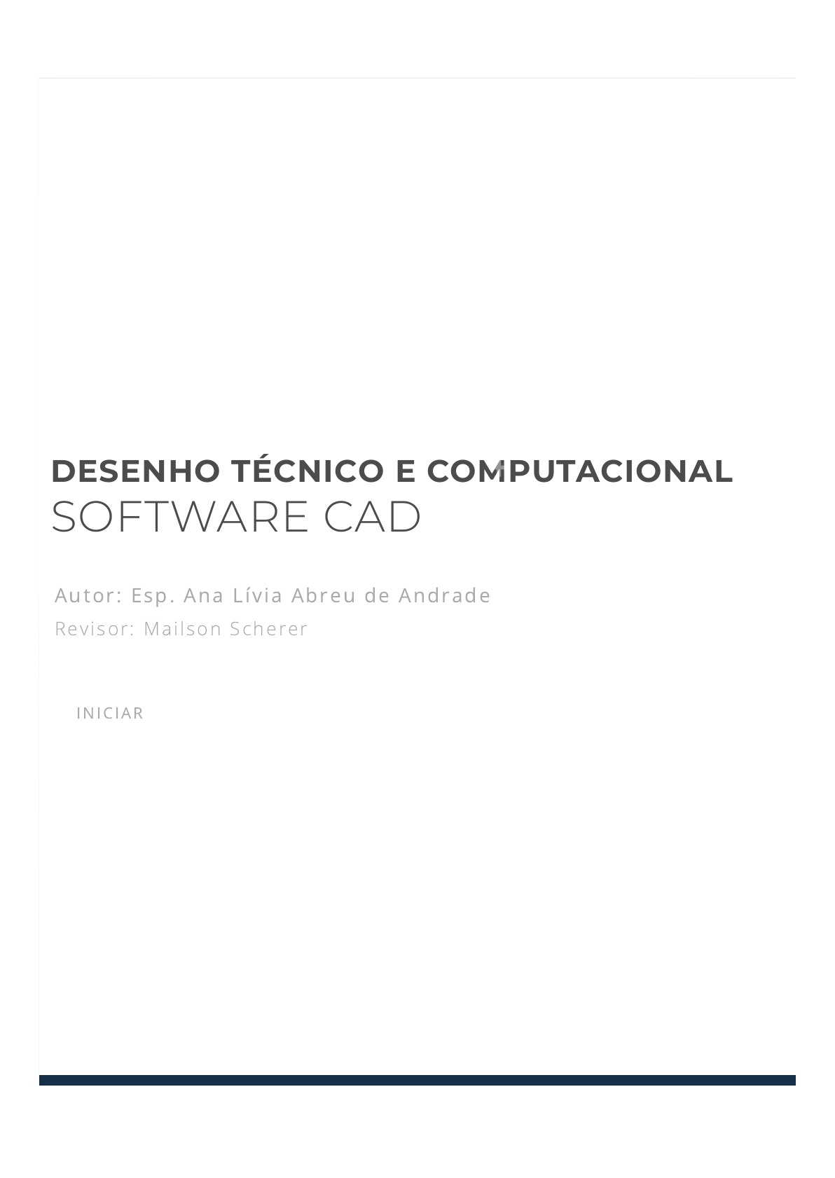 01/10/2021 20:03 Ead.br https://anhembi.blackboard.com/webapps/late-course_content_soap-BBLEARN/Controller?ACTION=OPEN_PLAYER&COURSE_ID=_735934_… 1/46 DESENHO TÉCNICO E COMPUTACIONALDESENHO TÉCNICO E COMPUTACIONAL SOFTWARE CADSOFTWARE CAD Autor: Esp. Ana Lív ia Abreu de Andrade Revisor : Mai lson Scherer IN IC IAR 01/10/2021 20:04 Ead.br https://anhembi.blackboard.com/webapps/late-course_content_soap-BBLEARN/Controller?ACTION=OPEN_PLAYER&COURSE_ID=_735934_… 2/46 introdução Introdução As Tecnologias CAD (Computer Aided Design) vieram para revolucionar a área de projetos e desenho técnico. Com tantos recursos (que a cada dia sofrem diversas atualizações) e novos softwares que surgem no mercado, podemos acreditar que não há limites para o que pode ser feito no futuro. Não há como negar as várias vantagens que os softwares CAD trouxeram para as indústrias automotivas, navais, aeroespaciais e, em geral, para os pro�ssionais da área de projetos – tanto na qualidade como no design. Essa tecnologia quebrou paradigmas, revolucionou toda a indústria nos últimos 50 anos e promete revolucionar muito mais nos próximos 50. 01/10/2021 20:04 Ead.br https://anhembi.blackboard.com/webapps/late-course_content_soap-BBLEARN/Controller?ACTION=OPEN_PLAYER&COURSE_ID=_735934_… 3/46 Hoje em dia, a sigla CAD é muito conhecida por pro�ssionais na área de projetos grá�cos e desenho técnico. Ela é originária do termo em inglês Computer Aided Design; no Brasil, é conhecida como “Desenho Assistido por Computador”, ou DAC. Mas o que signi�ca Desenho Assistido por Computador? Signi�ca o que o termo propõe: os desenhos são feitos com o auxílio de computadores e softwares grá�cos, e não mais de forma manual, quando eram utilizados equipamentos como pranchetas, réguas e esquadros. CADCAD 01/10/2021 20:04 Ead.br https://anhembi.blackboard.com/webapps/late-course_content_soap-BBLEARN/Controller?ACTION=OPEN_PLAYER&COURSE_ID=_735934_… 4/46 “As elaborações de sistemas para o CAD iniciaram-se na década de 60. Até então, todos os desenhos eram manuais. Ainda nessa época, essas ferramentas eram utilizadas apenas por empresas, e viriam a se tornar domésticas, com o surgimento dos PCs e popularização das tecnologias” (SOUZA, 2017, on-line). Os primeiros PCs (personal computer), ou “computadores pessoais”, surgiram no início da década de 1980. A IBM lançou seu primeiro PC em 1981, com um custo aproximado de US$ 1.500,00 para a versão básica, com teclado e monitor. O uso dos PCs trouxe muitos avanços tecnológicos para pro�ssionais autônomos como arquitetos e sesigners, e contribuiu para a popularização das ferramentas CAD no mercado. Os programas CAD ainda estão ligados às tecnologias CAE (Computer Aided Engineering), que se referem à análise e ao teste dos produtos criados no CAD, e CAM (Computer Aided Manufacture), a produção em si por meio de arquivos CAD. As máquinas ou robôs recebem as informações para execução �nal do produto (ex.: braços de robôs nas montadoras, como na Figura 3.2, equipamentos de usinagens e cortes em metalurgia, impressora 3D, entre outros). Figura 3.1 – Projeto feito em computador Fonte: Everythingpossible / 123RF. 01/10/2021 20:04 Ead.br https://anhembi.blackboard.com/webapps/late-course_content_soap-BBLEARN/Controller?ACTION=OPEN_PLAYER&COURSE_ID=_735934_… 5/46 O uso da tecnologia CAD é de grande importância para elaboração de desenhos técnicos, assim como para projetos de arquitetura e das engenharias. CAD nas engenharias Existem vários softwares voltados para Desenho Técnico na arquitetura e nas engenharias, alguns com especi�cidades para cada área. Esses softwares garantem mais e�ciência e precisão nos desenhos técnicos, e cada vez mais se tornam mais fáceis e rápidos de aprender. Uma das grandes preocupações com os desenhos manuais referia-se à precisão do desenho elaborado, o qual, por alguma falha de elaboração ou imprecisão, poderia gerar dúvidas na hora da confecção da peça. Com o uso de softwares de desenho, no entanto, a precisão alcançada aumentou signi�cativamente. Além da precisão, os projetos com uso de CAD trouxeram muitas vantagens para indústrias e pro�ssionais da área de projetos em design e engenharia: Diminuição nos custos de desenvolvimento de produtos, pela rapidez da execução. Melhor qualidade no resultado �nal do produto, garantindo a precisão. Aumento da produtividade: mais projetos em menos tempo. Figura 3.2 – CAM Fonte: Pop Nukoonrat / 123RF. 01/10/2021 20:04 Ead.br https://anhembi.blackboard.com/webapps/late-course_content_soap-BBLEARN/Controller?ACTION=OPEN_PLAYER&COURSE_ID=_735934_… 6/46 Envio e recebimento de arquivos pela internet, sem necessidade do formato físico (pranchas de papel). Melhor gerenciamento e arquivamento dos desenhos. Interligação do CAD com o CAE (Engenharia Assistida por Computador) e com o CAM (Manufatura Assistida por Computador). Porém, ainda há algumas desvantagens: Alto custo com softwares licenciados, o que os tornam inacessíveis para grande parte dos pro�ssionais. Custo com hardwares (computadores / notebooks), pois essas máquinas devem ser de grande e�ciência para suportar programas grá�cos pesados. Além disso, alguns pro�ssionais precisam de equipamentos auxiliares, como plotters (impressoras de grandes dimensões), mesas digitalizadoras, impressoras 3D etc. Custo com treinamento e capacitações para utilização desses programas, que eventualmente apresentam atualizações e melhorias. Apesar das desvantagens, pode-se a�rmar que a tecnologia CAD apresenta um ótimo custo-benefício, de forma que, no mercado atual, é muito difícil atingir uma boa produtividade sem a ajuda dessas ferramentas. Softwares CAD O início do CAD/CAM ocorreu em 1957, quando o pai do CAD/CAM, o Dr. Patrick Hanratty, desenvolveu o PRONTO, primeiro sistema comercial de controle numérico (CNC). A 