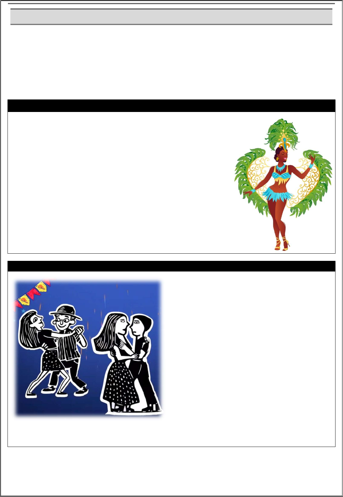 PÁG. 3 AULA 3 - DANÇAS BRASILEIRAS II A mistura de diferentes culturas tornou o Brasil um verdadeiro caldeirão de estilos musicais e suas respectivas danças, reflexo de toda a riqueza cultural do povo brasileiro. O melhor de tudo é que você pode conhecer essas danças em suas regiões de origem, aproveitando para conhecer não apenas a cultura, mas também os cenários mais icônicos de cada canto do Brasil. Já imaginou tomar um banho na praia de Ipanema e depois curtir uma roda de samba na Cidade Maravilhosa ou curtir o frevo após um passeio pelas ladeiras de Olinda? Confira quais as danças mais populares do Brasil e onde encontrá-las! SAMBA Entre todas as danças brasileiras, nenhuma representa tão bem o Brasil quanto o samba. O ritmo é conhecido pela comunidade estrangeira como “tipicamente brasileiro” e, muitas vezes, é considerado sinônimo de brasilidade. À medida que o Carnaval se aproxima, a paixão brasileira pelo samba parece aflorar ainda mais, arrastando multidões por praticamente todos os cantos do país. Embora muita gente acredite que o samba é carioca, foi nos morros baianos que surgiu o ritmo, trazido para a América pelos africanos: não demorou muito até os batuques ultrapassarem a fronteira das senzalas e caírem no gosto do povo. O atabaque, o pandeiro, o repique, a cuíca e o tamborim se juntam a outros instrumentos, como cavaquinho, banjo, flauta e violão, para contar as histórias mais cotidianas do povo. Um dos gêneros musicais mais populares do Brasil, o samba hoje é encontrado nas mais diversas roupagens, ou variações: samba-enredo, gafieira, samba de roda, e por aí vai! FORRÓ Na batida da zabumba, sob o toque do triângulo e o chorar da sanfona, é difícil ficar parado. Bate logo aquela vontade irresistível de puxar seu par para um genuíno “arrasta-pé”. Diferentemente do samba, trazido para o Brasil pelos africanos, o forró é um gênero musical que se orgulha de ser genuinamente brasileiro: foi criado no Nordeste e se espalhou por todos os cantos do país! Dançado em pares, o forró se resume em movimentos circulares em que os pés se arrastam pelo chão, para trás e para a frente. Quanto mais experiência dos dançarinos, mais ousados são os movimentos incorporados à dança. Mas não se desanime se você nunca teve contato com o ritmo: mesmo que não tenha experiência, pode arriscar uns passos típicos do forró sem grandes dificuldades. Para curtir o ritmo em sua plenitude, que tal planejar uma viagem para o famoso Festival Nacional de Forró da cidade de Itaúnas, no Espírito Santo? PÁG. 4 MARACATU Você sabia que Pernambuco é um verdadeiro “celeiro” de danças brasileiras? Apesar de muitas vezes ficar em segundo plano ao lado do “irmão” frevo, o maracatu é mais um dos gêneros originados na região! A “dança do batuque invertido” foi trazida para o Brasil pelos africanos: o maracatu nasceu nos cultos religiosos de matriz africana e, por isso, é marcado pela espiritualidade até hoje. A percussão é o carro- chefe do gênero, puxada por instrumentos como tambores, caixas e ganzás, mas não é só o som que importa. Os participantes da festa também saem vestidos à caráter pelas ruas, com roupas bem coloridas, enquanto cantam, dançam e tocam os ritmos dedicados às figuras folclóricas típicas do maracatu. FREVO O Carnaval brasileiro é um caldeirão de diferentes estilos musicais, como o samba e o axé. Em Pernambuco, no entanto, o principal som pelas ruas é bastante peculiar: trata-se do festivo frevo! As músicas não são acompanhadas por letras, mas ninguém parece se importar. O que importa é o ritmo contagiante e a alegria inconfundível dos dançarinos a sacudir seus guarda-chuvas coloridos de um lado para o outro, incorporando elementos da marchinha, da contradança e da polca. Muitas vezes, resta a impressão de que “meros mortais” são incapazes de reproduzir os malabarismos dos dançarinos de frevo, mas até o final de uma viagem por Olinda ou Recife, especialmente no Carnaval, você não vai resistir a arriscar uns passinhos! BUMBA-MEU-BOI Uma das principais danças tradicionais do Brasil, o bumba-meu-boi (ou boi-bumbá) é particularmente popular no Norte e no Nordeste do país, combinando dança, teatro e crenças populares para gerar um belo espetáculo cultural. Tombado como Patrimônio Cultural Imaterial da Humanidade pela Unesco, o bumba-meu-boi gira em torno da lenda da morte e ressurreição do boi mais bonito de uma fazenda. A figura colorida do boi é uma mescla de heranças portuguesas, espanholas, africanas e indígenas, representando bem a miscigenação do povo brasileiro. A cidade de Parintins, no Amazonas, é hoje o principal endereço para quem quer conferir essa expressão cultural de perto: todos os anos, o Festival Folclórico de Parintins arrasta milhares de pessoas com os desfiles dos bois Caprichoso e Garantido! (Fonte: passagenspromo ) Disponível em: https://www.passagenspromo.com.br/blog/dancas-brasileiras/ PÁG. 5 --------------- ATIVIDADES --------------- Questão 01 – Nossa atividade dessa aula será assistir os vídeos abaixo e depois fazer um relato sobre a dança apresentada, falando sua opinião e o destacando as características presentes nessa dança. Vídeo 1 - Boi-Bumbá Caprichoso (Evolução) 2019 - 3ª Noite Vídeo disponível em: https://www.youtube.com/watch?v=F-UDHwVbGpI Vídeo 2 - GARANTIDO EVOLUI NA 2ª NOITE DO FESTIVAL DE PARINTINS Vídeo disponível em: https://www.youtube.com/watch?v=IelmccKwHgE&list=RDF- UDHwVbGpI&index=2 Bons Estudos!