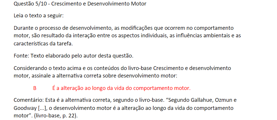 crescimento e desenvolvimento do motor Exercícios 1