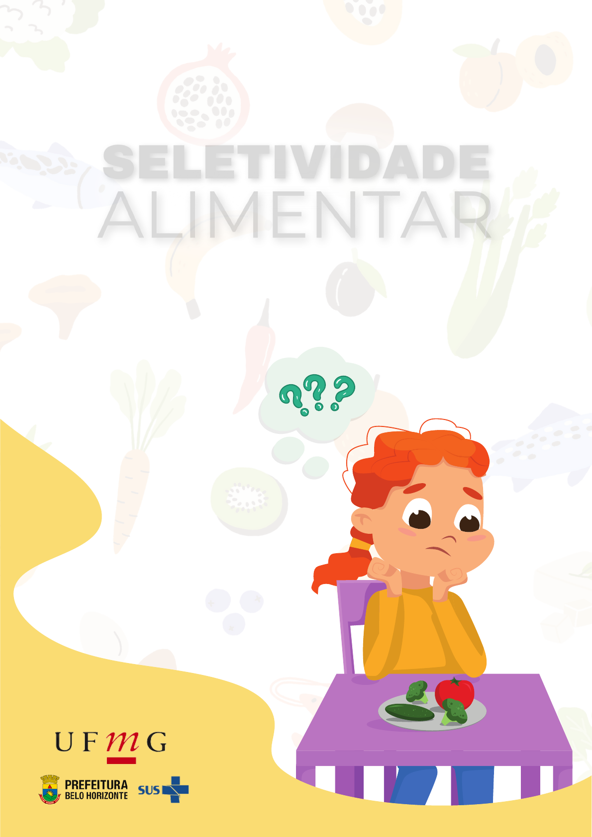 ORIENTAÇÕES PARA PAIS, MÃES E FAMILIARES SELETIVIDADE ALIMENTAR Cartilha de Orientações para Pais, Mães e Familiares SELETIVIDADE ALIMENTAR Elaboração: Elen da Rocha Ferreira João Paulo Viana Diniz Raquel Baumgratz Marques Material elaborado para a Coordenação de NASF-AB e Academias da Cidade da Gerência de Atenção Primária à Saúde da Secretaria Municipal de Saúde de Belo Horizonte, apresentado à disciplina de Estágio Supervisionado em Nutrição em Saúde Pública do curso de Nutrição da UFMG, em setembro de 2023. Profa. Orientadora: Aline Cristine Souza Lopes Estagiária docente: Roberta Brandão da Cunha 01 SUMÁRIO INTRODUÇÃO ENTENDENDO A SELETIVIDADE ALIMENTAR A SELETIVIDADE NAS DIFERENTES FASES DA VIDA O que é? Quando a recusa de alimentos se torna preocupante? Atente aos sinais! Efeitos na saúde e no desenvolvimento Primeira infância Importância da introdução alimentar Criança Adolescência MATERIAL PARA SE ORIENTAR ESTRATÉGIAS PARA LIDAR COM A SELETIVIDADE LIDANDO COM DESAFIOS ESPECÍFICOS Transtorno do Espectro Autista 01 02 02 03 04 05 07 07 08 11 13 15 15 18 REFERÊNCIAS 22 23 A repulsa a certos alimentos e/ou texturas, pode criar obstáculos para a construção de uma alimentação equilibrada e diversificada. Essa situação pode desencadear deficiências nutricionais, dificuldades de crescimento e problemas emocionais, impactando a saúde da criança e do adolescente. INTRODUÇÃO A alimentação saudável possui papel importante no crescimento, desenvolvimento e bem-estar da criança e do adolescente. Além disso, muito dos nossos hábitos alimentares são moldados na infância, com impacto em toda a vida. Mas, às vezes, a jornada da alimentação pode ser complicada e desafiadora! Este material foi construído para ajudar vocês, pais, mães e familiares, a compreenderem e lidarem melhor com a seletividade alimentar. Aqui, você irá encontrar informações, orientações e apoio! 01 A seletividade alimentar é definida pela recusa de alimentos, específicos ou não. Em geral, acompanhada do consumo alimentar limitado a pequenas variedades de alimentos ou até rejeição de grupos alimentares. A pessoa evita consistentemente certos alimentos ou grupos de alimentos. Pode ocorrer tanto em crianças e adolescentes, quanto em adultos, e pode ser mais prevalente em indivíduos com deficiências intelectuais e de desenvolvimento. É um comportamento exigente e altamente seletivo sobre o que comer. Isso significa que a pessoa pode não aceitar os alimentos por causa de seu sabor, textura, cor, cheiro, temperatura ou até mesmo por causa da marca. ENTENDENDO A SELETIVIDADE ALIMENTAR O QUE É? Assim, a pessoa se torna altamente seletiva ou restritiva sobre os tipos de alimentos que está disposto a comer. BANDINI, Linda et.al, 2010 02 QUANDO A RECUSA DE UM ALIMENTO SE TORNA PREOCUPANTE? Pode ser uma fase de estranhamento inicial ao alimento/textura quando se está conhecendo um novo alimento. Pode também ser um reflexo de gostos e preferências particulares, mas não causar problemas de saúde. Afinal, é normal não gostar de todos os alimentos. Mas, se a criança recusar muitos alimentos frequentemente e/ ou se recusar a comer qualquer coisa além de alguns alimentos específicos, isso pode ser um sinal de seletividade alimentar. A recusa alimentar torna-se seletividade alimentar quando a pessoa não consegue ingerir quantidade e/ou variedade de alimentos suficientes para manter o seu peso e altura saudáveis, e o estado nutricional pode estar comprometido. Em algumas situações, principalmente quando as crianças ainda são pequenas, é normal haver a recusa de alguns alimentos. 03 Evita consistentemente certos alimentos ou grupos de alimentos Aceita variedade limitada de alimentos Alimentação é restrita e desequilibrada Sensibilidade sensorial é extrema: texturas, cheiros, cores ou temperatura Há alteração significativa do peso e do crescimento, no caso de crianças e adolescentes; gripes e resfriados constantes; desânimo; dentro outros Mais comum em pessoas com deficiências intelectuais e de desenvolvimento ATENTE AOS SINAIS! COMO IDENTIFICAR ESSES SINAIS? Esteja atento aos sinais de comunicação que a criança ou adolescente demonstra, como: chorar, náuseas, vômito, engasgo, afasta os utensílios, joga a comida no chão, não quer tocar os alimentos, etc. 04 EFEITOS NA SAÚDE E NO DESENVOLVIMENTO As consequências da seletividade alimentar são bastante variadas e pode afetar de diferentes formas a vida da criança e do adolescente. A redução na quantidade e variedade de alimentos gera um consumo alimentar inadequado. Quanto menor a variedade e a quantidade de alimentos, menos nutrientes e calorias serão ingeridos, E as quantidades podem ser menores do que o corpo precisa para se desenvolver de forma saudável. EFEITOS NA SAÚDE: POUCA VARIEDADE POUCA QUANTIDADE POUCAS FRUTAS, LEGUMES E VERDURAS POUCA CARNE, OVOS E LÁCTEOS Baixa ingestão de nutrientes Calorias insuficientes Funcionamento intestinal prejudicado Baixa ingestão de vitaminas e minerais Baixa ingestão de nutrientes importantes para o crescimento ALIMENTOS CONSEQUÊNCIA NA SAÚDE Em longo prazo, risco de desnutriçãoEm longo prazo, risco de desnutrição 05 Pessoas que enfrentam a seletividade alimentar podem desenvolver transtornos alimentares. Algumas crianças podem manter ou mesmo piorar a seletividade alimentar na adolescência. O que era um comportamento exigente e de recusa pode se tornar excessivo e restritivo. EFEITOS PSICOLÓGICOS E NO COMPORTAMENTO A alimentação, além de ser uma necessidade do corpo, é uma forma de socializar e compartilhar. As dificuldades e desafios impostos pela seletividade alimentar podem ser barreiras para que a pessoa tenha momentos de socialização e de descontração que envolvam o ato de comer, seja com amigos ou familiares. O comer envolve também uma relação afetiva com a comida. 06 PRIMEIRA INFÂNCIA | SELETIVIDA