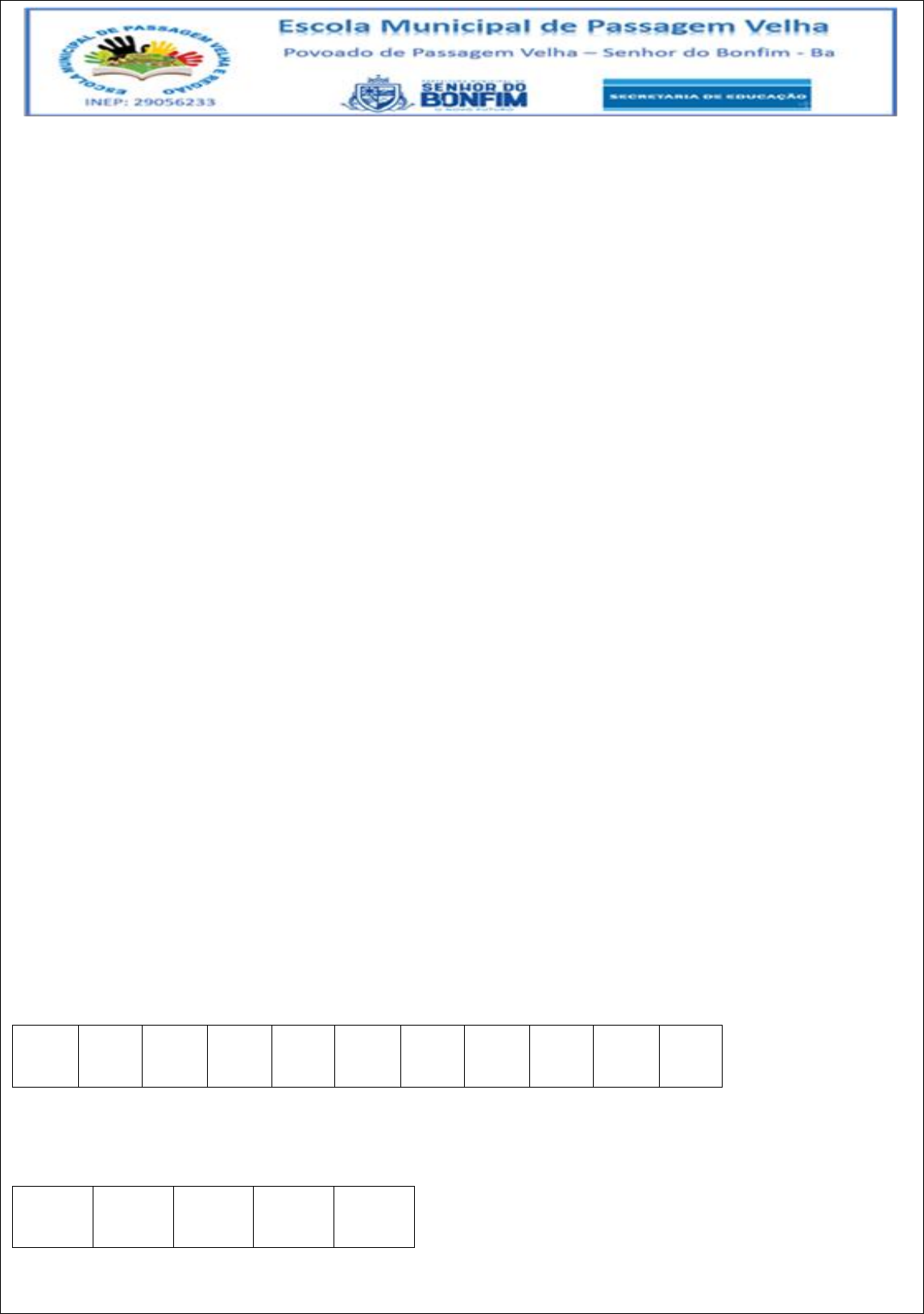NOME:________________________________________________________________________________________ PRÓ:_________________________________ __________ANO TURMA:__________ ATIVIDADE DE LÍNGUA PORTUGUESA Leia o poema abaixo e faça o que se pede: Identidade Às vezes nem eu mesmo que voa e se esconde sei quem sou. de medo e vergonha. Às vezes sou Às vezes eu sou Hércules, “o meu queridinho”, Sansão vencedor, às vezes sou peito de aço, “moleque malcriado”. goleador! Para mim, Mas o que importa tem vezes que eu sou rei, o que pensam de mim? herói voador, Eu sou quem sou, caubói lutador, eu sou eu, jogador campeão. sou assim, Às vezes sou pulga, sou menino. sou mosca também, Pedro Bandeira. Cavalgando o arco-íris. São Paulo, Moderna, 1991. Conversando sobre o texto: O texto que você leu fala de Identidade. Você sabe o que é identidade? Identidade é o conjunto de características de uma pessoa. Todos nós temos muitas características, e todas elas juntas fazem cada pessoa ser do seu próprio jeito. 1- Complete usando as vogais e descubra a resposta correta: A) No trecho “...às vezes sou “moleque malcriado”.” A palavra malcriado significa: M L - D C D B) No trecho: “Às vezes eu sou Hércules, Sansão vencedor, peito de aço...” A expressão peito de aço” significa que ele é muito: F R T - Leia os versos do poema “Identidade”. a) Agora, vamos conhecer um pouco de você. Preencha a ficha abaixo. Nome:___________________________________________________________________________ Idade:_________________________________________________ Data do seu aniversário: ______/________/_________Onde você mora:________________________ Rua:_______________________________________________________________________________ Bairro:______________________________________________________________________________ Cidade em que você nasceu:____________________________________________________________ Você gosta de: _______________________________________________________________________ 2- Observe os trechos do poema e responda: Se você fosse um herói, qual seria? ________________________ Se você fosse um animal, qual seria? __________________________ 3- Me conte um pouco mais sobre você: Qual a sua comida preferida? ________________________________________________________ Qual a sua sobremesa preferida? _____________________________________________________ Qual a sua brincadeira preferida? _____________________________________________________ Qual o seu brinquedo preferido? ______________________________________________________ Qual o seu programa de televisão preferido? ____________________________________________ Qual o seu passeio preferido? ________________________________________________________ Qual o seu cantor preferido? _________________________________________________________ Qual a sua música preferida? _________________________________________________________ Qual o seu esporte preferido? _________________________________________________________