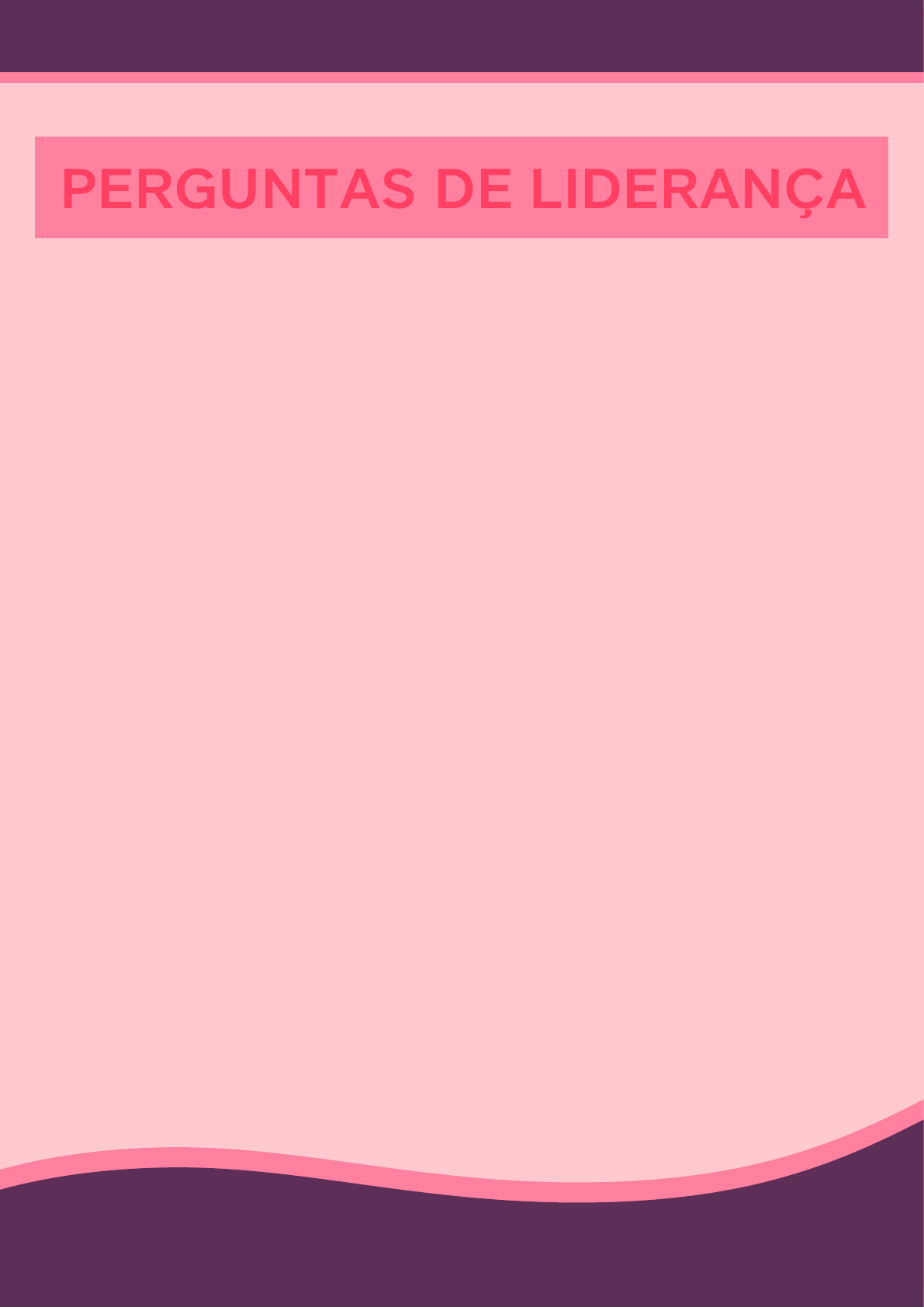 1 - Você vai priorizar sua lição de casa de terapia? 2 - Você acha que essa foi a melhor resposta que você poderia ter escolhido considerando seus objetivos de terapia? 3 - Você vai refletir sobre o que falamos esta semana? 4 - Porquê você pensa nisso? 5 - Como você chegou a considerar isso? 6 - Como você chegou e esta conclusão? 7 - Me conte mais... 8 - Porquê você acha que este é o caso? 9 - O que você acha que aconteceria se... 10 - Que tipo de impacto você acha...? 11 - Como você decidiu...? PERGUNTAS DE LIDERANÇAPERGUNTAS DE LIDERANÇA 8 - Que mudanças positivas você gostaria de ver acontecer em sua vida? 9 - O que continua acontecendo repetidamente que o impede de alcançar a mudança? 10 - Quais são os passos necessários que podem mudar em 1000% a sua vida para melhor? 11 - Se você fosse um mágico e tivesse super poderes o que gostaria de mudar agora? 12 - Você enão se sente orgulhoso de si mesmo por fazer essa mudança? 13 - Sentiu algum alívio muito necessário? 14 - Não é bom ser capaz de pensar assim sobre si mesmo? MUDANÇA DE FOCOMUDANÇA DE FOCO 7 - Seus comportamentos diários está construindo a vida que você tanto sonha? 8 - Você tem algum pensamento ruim que fica martelando em sua cabeça todos os dias? 9 - Você já tentou quebrar esse ciclo de pensamento negativo? 10 - Como as pessoas próximas a você reage ao seu comportamento? 11 - Como você se sente no mesmo instante após isso ocorrer? 12 - Você tem alguma sensação corporal depois que isso ocorre? Como coração acelerado, tremedeira, inquietação, falta de ar...? PENSAMENTO E COMPORTAMENTO PENSAMENTO E COMPORTAMENTO 8 - Qual transformação esse objetivo irá fazer em sua vida após virar realidade? 9 - O que você já tentou anteriormente e o que foi útil? 10 - Quais são as coisas que você mais gostaria de ver se concretizar até o final deste ano? 11 - Você costuma anotar os seus objetivos em um papel para ter mais clareza sobre eles? DEFINIÇÃO DE METASDEFINIÇÃO DE METAS 1 - Sobre o que não está tão claro em sua vida que se você descobrisse faria a maior diferença? 2 - Quais oportunidades você tem disponível agora? 3 - Como você agiria se fosse 10x mais ousado? 4 - O que você faria se o sucesso fosse garantido? 5 - Como será sua vida ideal daqui a 2 anos? 6 - Como você quer ser lembrado por aqueles que ama quando se for? 7 - Quais mudanças você precisa fazer agora para ter a vida que deseja? 8 - O que significa a palavra ‘’sucesso’’ para você? 9 - O quão importante é para você conseguir isso? 10 - O que você quer? Para o que você está dizendo ‘’sim’’ agora em sua vida? PROVOCANDO PENSAMENTOPROVOCANDO PENSAMENTO 1 - Você já se sentiu a outro lugar e a outro tempo? onde e quando? 2 - Se você pudesse conversar com um ente querido seu que já faleceu, quem seria e o que você falaria? 3 - Como o dinheiro podia mudar a sua situação hoje? 4 - Você gosta de ficar sozinho ou tem medo? 5 - O que te preocupa a noite que te deixa acordado? 6 - Existe algo que você está comprometido a fazer que os outros considerem perda de tempo? Como você se defende? 7 - O que é algo super importante pra você mas ninguém fala sobre isso? 8 - Quem você gostaria de ter ao seu lado se estivesse em uma situação verdadeiramente dificil? AUTOCONHECIMENTOAUTOCONHECIMENTO 1 - Como você descreveria as vozes que ouve? 2 - Você sabe me dizer se são homens ou mulheres? 3 - Você pode parar as vozes? 4 - Quantas vozes diferentes você ouve? 5 - Você ouve essas vozes de dentro da sua própria mente, ou elas parecem vir de algum lugar fora de você? 6 - Você sabe de quem são essas vozes? 7 - Reconhece as vozes? 8 - O que as vozes dizem pra você? 9 - Elas dizem algo positivas ou dizem coisas negativas prejudiciais para você? 10 - Como você lida com essas vozes? 11 - Você faz alguma coisa com eles? AVALIAÇÃO DE PSICOSEAVALIAÇÃO DE PSICOSE 1 - Quem são seus melhores amigos? 2 - Como seria um dia perfeito para você? 3 - Qual foi o momento mais vergonhoso da sua vida? 4 - Se você pudesse conhecer qualquer pessoa viva ou morta, quem seria? 5 - Qual é o trabalho dos seus sonhos? 6 - Qual é a sua lembrança mais antiga? 7 - Qual é o seu filme favorito? 8 - Como é a personalidade do seu melhor amigo? 9 - Se você pudesse ser famoso, por qual razão gostaria de ser? PERGUNTAS PARA ADOLESCENTES PERGUNTAS PARA ADOLESCENTES 11 - O que você gosta em você (interesses, experiências de vida, traços de personalidade, etc...)? 12 - Com o que especificamente você está preocupado/ com medo aqui? 13 - Se você fosse mais feliz, como as pessoas saberiam? 14 - Como você poderia ver isso de forma diferente? 15 - Quais são os seus hoobies? 16 - Quais jogos você geralmente gosta de jogar? 17 - Quais mudanças você precisa fazer agora para ter a vida que deseja? 18 - Qual foi o último livro que você leu? 19 - Quais são as coisas que você consegue gerenciar com facilidade? PROVOCANDO PENSAMENTOPROVOCANDO PENSAMENTO 9 - Como você gostaria de ser lembrado? 10 - O sucesso vale apena apesar do sofrimento e do sacrificio para alcançá-lo? 11 - Você se considera uma pessoa egoísta? 12 - Você consegue contar aos outros o quão bom você é em algo? AUTOCONHECIMENTOAUTOCONHECIMENTO 10 - Qual foi a pior e a melhor coisa que aconteceu com você na escola? 11 - Qual trabalho você acredita que seria ideal para você quando terminar os estudos? 12 - Você está feliz com a quantidade e a qualidade das suas amizades? 13 - Como você gostaria que uma pessoa fosse para ter uma relação amorosa com ela? 14 - Você se sente atraido por alguém? 15 - Como você gostaria que fosse a sua vida daqui a 5 anos? PERGUNTAS PARA ADOLESCENTES PERGUNTAS PARA ADOLESCENTES INÍCIO DA SESSÃOINÍCIO DA SESSÃO 13 - O que tem dado muito certo na sua vida até o momento? 14 - O que mudou hoje comparado a última vez que você esteve aqui? 15 - Você acredita que tem algo de erra