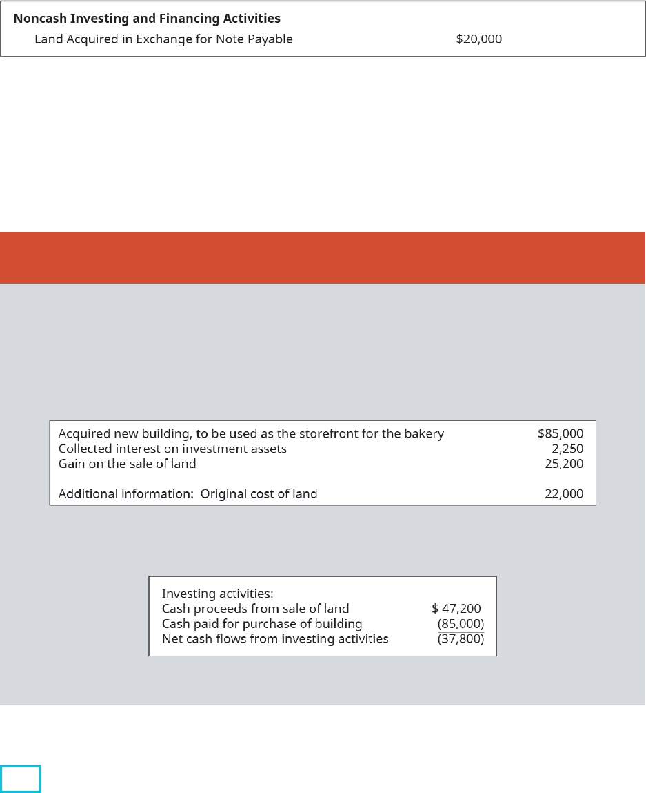 Summary of Investing and Financing Transactions on the Cash Flow Statement Investing and financing transactions are critical activities of business, and they often represent significant amounts of company equity, either as sources or uses of cash. Common activities that must be reported as investing activities are purchases of land, equipment, stocks, and bonds, while financing activities normally relate to the company’s funding sources, namely, creditors and investors. These financing activities could include transactions such as borrowing or repaying notes payable, issuing or retiring bonds payable, or issuing stock or reacquiring treasury stock, to name a few instances. 16.4 Prepare the Completed Statement of Cash Flows Using the Indirect Method In this section, we use the example of Virtual Co. to work through the entire process of preparing the company’s statement of cash flows using the indirect method. Virtual’s comparative balance sheet and income statement are provided as a base for the preparation of the statement of cash flows. Y O U R T U R N Cash Flow from Investing Activities Assume your specialty bakery makes gourmet cupcakes and has been operating out of rented facilities in the past. You owned a piece of land that you had planned to someday use to build a sales storefront. This year your company decided to sell the land and instead buy a building, resulting in the following transactions. What are the cash flows from investing activities relating to these transactions? Solution Note: Interest earned on investments is an operating activity. Chapter 16 Statement of Cash Flows 971 Review Problem: Preparing the Virtual Co. Statement of Cash Flows Figure 16.6 Comparative Balance Sheet. (attribution: Copyright Rice University, OpenStax, under CC BY-NC- SA 4.0 license) 972 Chapter 16 Statement of Cash Flows This OpenStax book is available for free at http://cnx.org/content/col25448/1.4 Figure 16.7 Income Statement. (attribution: Copyright Rice University, OpenStax, under CC BY-NC-SA 4.0 license) Additional Information The following additional information is provided: 1. Investments that originally cost $30,000 were sold for $47,500 cash. 2. Investments were purchased for $50,000 cash. 3. Plant assets were purchased for $66,000 cash. 4. Cash dividends were declared and paid to shareholders in the amount of $8,000. Directions: Prepare the statement of cash flows (indirect method), for the year ended December 31, 2018. Chapter 16 Statement of Cash Flows 973 Figure 16.8 Statement of Cash Flows. (attribution: Copyright Rice University, OpenStax, under CC BY-NC-SA 4.0 license) 16.5 Use Information from the Statement of Cash Flows to Prepare Ratios to Assess Liquidity and Solvency Cash flow ratio analysis allows financial statement users to see the company’s liquidity position from a clearer perspective. The ratios presented in this section focus on free cash flow, calculated as operating cash, reduced by expected capital expenditures and by cash dividends payments. The free cash flow value is thus an adaptation of cash flow from operating activities. The result obtained in the initial free cash flow calculation is then used to calculate the free cash flow to sales ratio, which is the ratio of free cash flow to sales revenue, and the free cash flow to assets ratio, which is the ratio of free cash flow to total assets. These three tools give indicators about the company’s flexibility and agility, which equates to their ability to seize opportunities in the future, as they arise. 974 Chapter 16 Statement of Cash Flows This OpenStax book is available for free at http://cnx.org/content/col25448/1.4 Free Cash Flow Free cash flow calculations start with cash flows from operating activities, reduced by planned capital expenditures and planned cash dividend payments. In the example case demonstrated, free cash flow would be as follows: Free cash flow calculation: The absence of free cash flow is an indicator of severe liquidity concern for Propensity Company and could be an early indicator that the company may not be able to continue operations. This could also be a one-time occurrence, in a year where a large capital investment was planned, to be financed with resources from the company’s capital reserves from previous years’ profits. In such a case, the negative free cash flow would not be an issue of concern. E T H I C A L C O N S I D E R A T I O N S Cash Flow Analysis Cash is required to pay the bills. All businesses need to have a clear picture of available cash so they can plan and pay their bills. The statement of cash flows allows investors direct insight into the actual activity on the company’s cash balances. Mark A. Siegel wrote in The CPA Journal that “as Wall Street analysts have lost faith in earnings-based metrics in the wake of Enron, WorldCom, and others, many have gravitated toward the cash flow statement. Companies are regularly evaluated on the basis of free cash flow yield and other measures of cash generation.”[3] The operating cash flow ratio, and the cash flow margin ratio, and the other cash flow–related metrics discussed allow an investor and other users of the financial statements to analyze financial statement data to see a company’s ability to pay for current debt and assess its operational cash flow to function as a going concern.[4] This helps investors and other users of the financial statements ensure the veracity of a company’s financial statements and its ability to pay its bills. L I N K T O L E A R N I N G This article by Investopedia presents information about how to use free cash flow (https://openstax.org/ l/50FreeCashFlow) to evaluate strengths of various businesses: 3 Marc A. Siegel. “Accounting Shenanigans on the Cash Flow Statement.” CPA Journal. March 2006. http://archives.cpajournal.com/2006/306/ essentials/p38.htm 4 Steven D. Jones. “Why Cash Flow Matters in Evaluating a Company.” The Wall Street Journal. August 1