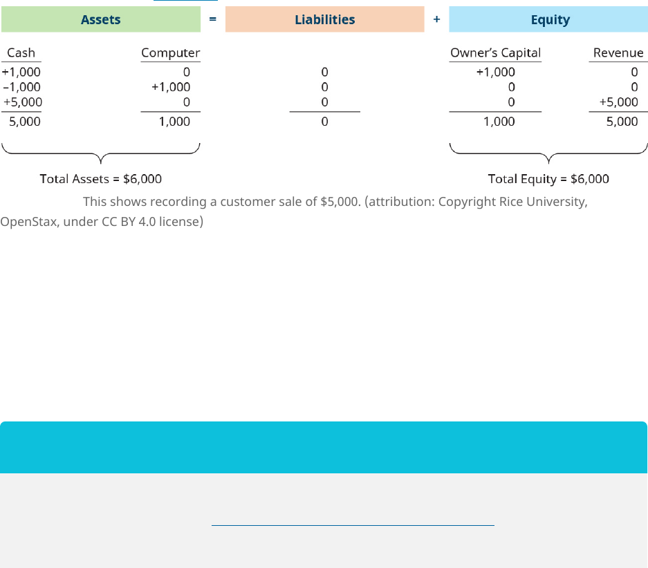 Assets of the business increase because the customer pays for the work; thus, Shanti’s cash increases. Again, on the right side of the equation, we record the source of that asset: revenue. Revenue is an increase in assets from customers paying for goods and services. To illustrate, let’s continue with Shanti’s website design business. She purchased a computer with her personal savings and has been hired to create a website for a local business. This client agrees to pay $5,000 for the website, due on completion of the site. Once the work on the website is complete, Shanti records the receipt of $5,000 cash as an increase to the cash account. On the right side of the equation, this is added in an account under equity for revenue (Figure 9.13). Figure 9.13 This shows recording a customer sale of $5,000. (attribution: Copyright Rice University, OpenStax, under CC BY 4.0 license) The total company assets have grown to $6,000 with the addition of the $5,000 earned and collected from this client. On the right side of the equation, equity has increased in a new column representing revenue and expenses, where revenues are positive amounts and expenses are negative amounts. The accounting equation describes how transactions are classified within the context of balancing what a business has (assets) with how it paid for those assets (liabilities and equity). In the next section of this chapter, we will explore how this information is summarized in financial statements and how entrepreneurs and potential investors use that information. The Statement of Cash Flows The third basic financial statement we will discuss is the statement of cash flows, which explains the sources of and uses of a company’s cash. You may wonder how the statement of cash flows differs from an income statement. The short answer is that the income statement captures events as they happen, not necessarily when the company gets paid. It records L I N K T O L E A R N I N G Accounting is the system of communication that allows for decision making by individuals both inside and outside the company. For an overview (https://openstax.org/l/52Accounting) of accounting, please see the video at the Investopedia website. Chapter 9 Entrepreneurial Finance and Accounting 381 https://openstax.org/l/52Accounting certain items, such as sales, when the work is completed. Let’s return to Shanti, the website designer. As soon as she completes the client’s website, the accounting system will record the revenue, the amount that is due from that client; this second item is referred to as accounts receivable. If Shanti’s client is struggling financially or even goes out of business, she may never get paid for that work, but the income statement would show sales, and therefore possibly a profit. If the customer goes out of business, the business bank account will not have any evidence of a profit. It is for this reason that the statement of cash flows was developed. It accounts for these differences, only showing activities that result in cash received or cash paid. To better understand the purpose and use of the statement of cash flows, let’s first look at this statement again in the context of a pizzeria (Figure 9.14). 382 Chapter 9 Entrepreneurial Finance and Accounting Figure 9.14 This is Hometown Pizzeria’s statement of cash flows. (attribution: Copyright Rice University, OpenStax, under CC BY 4.0 license) As we can see in the statement of cash flows for Hometown Pizzeria, although the basic operations generate positive cash flow, a major purchase was required. This is common at the inception of a business. Not every location will come equipped with a commercial kitchen and dining area, so the business may need to purchase items such as a pizza oven and dining chairs and tables. Note that although the income statement approximates the cash flow from operations, it would not show the large outflow resulting from the initial purchase of equipment. That purchase would have been treated as an asset within the context of the accounting equation and would have been recorded on the balance sheet. So from that large difference alone, we can see why some people say that the statement of cash flows is the most important of the financial statements. It bridges the gap between the income statement and the balance sheet. As you can see in the figure, the statement of cash flows is broken into three sections. The first is operating activities, the day-to-day activities of the business, including purchasing supplies, paying rent, and receiving cash from customers. This section tells a reader how effective the company’s business model is at generating cash flow. Investing activities include major purchases of equipment or facilities. For example, when Amazon develops its second headquarters, those billions of dollars spent will be recorded as investing activities. Additionally, if the company has an excess of cash, it may purchase securities such as stocks and bonds, which have a higher This OpenStax book is available for free at https://cnx.org/content/col29104/1.9 return on investment than a traditional bank savings account. This section tells a reader where the company spends money in terms of large acquisitions. The third section of the statement of cash flows is financing activities. This section tells a reader where new infusions of cash come from. The owners of Hometown Pizzeria need to find a way to pay for the kitchen equipment and furniture. If they have such an amount in their personal savings, then they can simple contribute it to the company themselves. If they don’t have the money already, they will need to seek other sources, such as loans or the types of investors discussed in Overview of Entrepreneurial Finance and Accounting Strategies. Generally, any financing activity is also booked in the balance sheet as well. This section of the statement explains which sources the owners used to generate outside funds coming into t