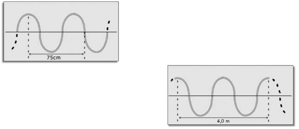 FUNDAÇÃO EDUCACIONAL DE CARATINGA – FUNEC ESCOLA PROFESSOR JAIRO GROSSI CURSO TÉCNICO EM RADIOLOGIA PROJETO TRILHAS DE FUTURO – SEE/MG Lista de exercícios sobre ondas 01 - A figura a seguir representa uma corda homogênea e não absorvedora de energia, por onde se propagam ondas periódicas. Pode se afirmar que o comprimento de onda das ondas que se propagam na corda é igual a: 02 - Em uma propagação ondulatória, o número de frentes de onda que passam por um mesmo ponto, em um segundo, é denominado: a) amplitude b) período c) comprimento de onda d) frequência e) fase 03 - Um trem de ondas harmônicas, de comprimento de onda 10m, propaga-se numa corda homogênea e não absorvedora de energia com velocidade de módulo igual a 20m/s. Pode-se afirmar que o período e a frequência dessas ondas valem, respectivamente: 04 - A figura a seguir representa um trem de ondas senoidais propagando-se em uma corda homogênea e não absorvedora de energia. Sabendo que a frequência de vibração da onda é igual a 2,0 Hz, determine: a) O comprimento de onda. b) O módulo da velocidade de propagação da onda 05 - Na figura a seguir representamos o aspecto de uma corda homogênea e não absorvedora de energia, na qual propaga- se uma onda periódica de frequência 500Hz. Determine o módulo da velocidade de propagação da onda nessa corda. 06 - Uma rádio FM de São Paulo transmite ondas na frequência de 1,0 . 108Hz. Sabendo-se que o módulo da velocidade das ondas eletromagnéticas no ar vale, aproximadamente, 3,0 . 108m/s, pode-se concluir que seu comprimento de onda vale: 07 - Os morcegos emitem ultrassons. O menor comprimento de onda produzido por um morcego é de aproximadamente 0,33cm, no ar. Qual a frequência mais elevada que os morcegos podem emitir? Admita que a velocidade dessas ondas no ar tem módulo igual a 330m/s. 08 - Na figura a seguir está representada uma onda que se propaga num meio homogêneo e não absorvedor de energia. Com relação a essa onda, podemos afirmar que a amplitude e o comprimento de onda valem, respectivamente: 09 - O gráfico seguinte representa o perfil de uma corda em um determinado instante, por onde se propaga uma onda. a) Qual é a relação entre o comprimento de onda e a amplitude dessa onda? b) Sabendo que o módulo da velocidade de propagação da onda é igual a 48 cm/s, qual é a sua frequência?