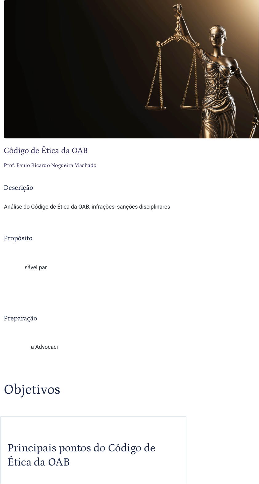 Código de Ética da OAB Prof. Paulo Ricardo Nogueira Machado Descrição Análise do Código de Ética da OAB, infrações, sanções disciplinares e processo disciplinar perante a OAB. Propósito Conhecer as regras éticas e suas correspondentes punições é indispensável para quem quer advogar, atuando sempre dentro dos limites éticos da advocacia. Não menos importante é saber que existe um rito a ser respeitado nos processos disciplinares e nos seus recursos. Preparação Para nosso estudo, é imprescindível ter em mãos a Lei nº 8.906/94 (Estatuto da Advocacia e da OAB), o Regulamento Geral do EAOAB e o Código de Ética e Disciplina. Objetivos Módulo 1 Principais pontos do Código de Ética da OAB Analisar os principais pontos do Código de Ética da OAB. Módulo 2 Infrações e sanções disciplinares Identificar as infrações e sanções disciplinares, além do regramento do processo disciplinar. Introdução Em primeiro plano, estudaremos as normas contidas no Código de Ética da OAB, a fim de propiciar uma segurança no regular exercício da profissão, uma vez que, conhecendo as regras éticas, o advogado evita descumpri-las, bem como eventuais punições pela OAB. Analisaremos as infrações e suas respectivas sanções e, por conseguinte, auxiliaremos o profissional da advocacia a atuar dentro dos ditames do Código de Ética da OAB, sem descumprir as regras da advocacia. Por fim, veremos algumas linhas sobre o processo disciplinar da OAB, do qual poderá restar uma punição ao advogado, assim como – e concomitantemente – o respeito ao contraditório e ampla defesa, com os meios e recursos a ela inerentes. 1 - Principais pontos do Código de Ética da OAB Ao �nal deste módulo, você será capaz de analisar os principais pontos do Código de Ética da OAB. Características do Código de Ética da OAB Primeiras observações O Código de Ética da OAB é basicamente dividido em duas partes: 1ª Trata das regras deontológicas. 2ª Trata do processo disciplinar na OAB. O Estatuto da Advocacia e da OAB também trata da Ética da Advocacia, especialmente nos artigos 31 a 33. O advogado deve ser merecedor de respeito e contribuir para o prestígio da classe e da advocacia, mantendo independência em qualquer circunstância, sem receio de desagradar a magistrado ou a qualquer autoridade, nem o de incorrer em impopularidade. Re�exão Sabendo-se que o Código de Ética e Disciplina (CED) não é uma lei, estaria o advogado obrigado a obedecer às regras lá inseridas? A resposta está no artigo 33 da Lei nº 8906/94 (Estatuto da Advocacia e da OAB), que determina que o advogado precisa cumprir rigorosamente os deveres consignados no CED. Quando a Lei nº 8906/94 determina que os advogados cumpram os mandamentos do CED, assim deve ser feito, sob pena de lhes serem aplicadas as sanções disciplinares. Responsabilidade funcional do advogado O advogado, no exercício da sua profissão, está sujeito a ser responsabilizado por ações ou omissões que possam vir a causar prejuízo a clientes ou a terceiros. Assim, a responsabilidade funcional (ou profissional) se divide em três tipos de esferas independentes umas das outras, como analisaremos a seguir: Responsabilidade civil Responsabilidade penal Responsabilidade disciplinar O advogado pode, por exemplo, com uma conduta inadequada, cometer uma infração disciplinar, mas não causar prejuízo ao seu cliente, nem praticar um crime. A seguir, faremos uma breve abordagem de cada uma dessas responsabilidades. Responsabilidade do advogado Neste vídeo, o professor faz um apanhado sobre as responsabilidade civil, pena e disciplinar do advogado. Responsabilidade civil do advogado Características São vários os dispositivos no ordenamento jurídico pátrio que tratam da responsabilidade civil aplicada ao advogado. Podemos começar citando o art. 186 do Código Civil, que traz a regra geral da responsabilidade civil e também alcança o advogado: “Aquele que por ação ou omissão voluntária, negligência ou imprudência, violar direito e causar dano a outrem, ainda que exclusivamente moral, comete ato ilícito.” O Estatuto da Advocacia e da OAB, no art. 32, expôs uma regra semelhante, porém, direcionada ao profissional da advocacia: “O advogado é responsável pelos atos que, no exercício profissional, praticar com dolo ou culpa.” Veja que, pela simples leitura dos artigos acima transcritos, a responsabilidade civil do advogado é subjetiva, ou seja, exige a verificação da culpa. Para alguns autores, os prejuízos eventualmente causados pelo advogado aos clientes não escapam da órbita do Código de Defesa do Consumidor (CDC) (Lei nº 8.078/90), que, ao conceituar fornecedor, enquadrou toda pessoa física prestadora de serviço em seu mecanismo de proteção ao cliente: “Art. 3º. Fornecedor é toda pessoa física ou jurídica, pública ou privada, nacional ou estrangeira, bem como os entes despersonalizados, que desenvolvem atividades de produção, montagem, criação, construção, transformação, importação, exportação, distribuição ou comercialização de produtos ou prestação de serviços.” Com base nisso, analise a seguir: O CDC adotou como regra a responsabilidade Entretanto, o próprio CDC se excepciona no art. 14, §4º: “A objetiva. O art. 14, caput, diz que “o fornecedor de serviços responde, independentemente da existência de culpa, pela reparação dos danos causados aos consumidores por defeitos relativos à prestação dos serviços, bem como por informações insuficientes ou inadequadas sobre sua fruição e riscos.” responsabilização pessoal dos profissionais liberais será apurada mediante a verificação de culpa”. Aqui confirma-se que a responsabilidade civil do advogado, pelos danos causados aos clientes, decorrentes de seus serviços advocatícios, exigem a verificação da culpa. Lide temerária A lide temerária ocorre quando o advogado, em conluio com o cl