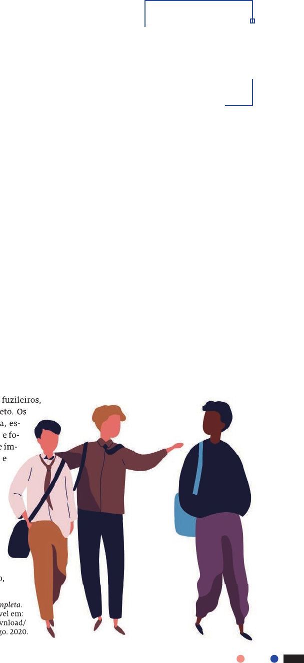 3 9CAPÍTULO 1 — Não há perdão! Dê cá a mão! Dê cá! Vamos! Sem-vergonha! Dê cá a mão! — Mas, seu mestre… — Olhe que é pior! Estendi-lhe a mão direita, depois a esquerda, e fui recebendo os bolos uns por cima dos outros, até completar doze, que me deixaram as palmas vermelhas e inchadas. Chegou a vez do filho, e foi a mesma cousa; não lhe poupou nada, dois, quatro, oito, doze bolos. Acabou, pregou-nos outro sermão. Chamou-nos sem-vergonhas, desafo- rados, e jurou que se repetíssemos o negócio apanharíamos tal castigo que nos havia de lembrar para todo o sempre. E exclamava: “Porcalhões! Tratantes! Faltos de brio!”. Eu, por mim, tinha a cara no chão. Não ousava fitar ninguém, sentia todos os olhos em nós. Recolhi-me ao banco, soluçando, fustigado pelos impropérios do mestre. Na sala arquejava o terror; posso dizer que naquele dia ninguém faria igual negócio. Creio que o próprio Curvelo enfiara de medo. Não olhei logo para ele, cá dentro de mim jurava quebrar-lhe a cara, na rua, logo que saíssemos, tão certo como três e dois serem cinco. Daí a algum tempo olhei para ele; ele também olhava para mim, mas desviou a cara, e penso que empalideceu. Compôs-se e entrou a ler em voz alta; estava com medo. Co- meçou a variar de atitude, agitando-se à toa, coçando os joelhos, o nariz. Pode ser até que se arrependesse de nos ter denunciado; e na verdade, por que denunciar-nos? Em que é que lhe tirávamos alguma coisa? “Tu me pagas! tão duro como osso!” — dizia eu comigo. Veio a hora de sair, e saímos; ele foi adiante, apressado, e eu não queria brigar ali mes- mo, na Rua do Costa, perto do colégio; havia de ser na Rua larga São Joaquim. Quando, porém, cheguei à esquina, já o não vi; provavelmente escondera-se em algum corredor ou loja; entrei numa botica, espiei em outras casas, perguntei por ele a algumas pes- soas, ninguém me deu notícia. De tarde faltou à escola. Em casa não contei nada, é claro; mas para explicar as mãos inchadas, menti a minha mãe, disse-lhe que não tinha sabido a lição. Dormi nessa noite, mandando ao diabo os dois me- ninos, tanto o da denúncia como o da moeda. E sonhei com a moeda; sonhei que, ao tornar à escola, no dia seguinte, dera com ela na rua, e a apanhara, sem medo nem escrúpulos… De manhã, acordei cedo. A ideia de ir procurar a moeda fez-me vestir depressa. O dia estava esplêndido, um dia de maio, sol magnífico, ar brando, sem contar as calças no- vas que minha mãe me deu, por sinal que eram amarelas. Tudo isso, e a pratinha… Saí de casa, como se fosse trepar ao trono de Jerusalém. Piquei o passo para que ninguém chegasse antes de mim à escola; ainda assim não andei tão depressa que amarrotasse as calças. Não, que elas eram bonitas! Mirava-as, fugia aos encontros, ao lixo da rua… Na rua encontrei uma companhia do batalhão de fuzileiros, tambor à frente, rufando. Não podia ouvir isto quieto. Os soldados vinham batendo o pé rápido, igual, direita, es- querda, ao som do rufo; vinham, passaram por mim, e fo- ram andando. Eu senti uma comichão nos pés, e tive ím- peto de ir atrás deles. Já lhes disse: o dia estava lindo, e depois o tambor… Olhei para um e outro lado; afinal, não sei como foi, entrei a marchar também ao som do rufo, creio que cantarolando alguma cousa. “Rato na casaca…” Não fui à escola, acompanhei os fuzileiros, depois enfiei pela Saúde, e acabei a ma- nhã na Praia da Gamboa. Voltei para casa com as calças enxovalhadas, sem pratinha no bolso nem ressentimento na alma. E contudo a pratinha era bonita e foram eles, Raimundo e Curvelo, que me deram o primeiro conhecimento, um da corrupção, outro da delação; mas o diabo do tambor… ASSIS, Machado de. Conto de escola. In: Obra Completa. Rio de Janeiro: Nova Aguilar, 1994. Disponível em: http:// www.dominiopublico.gov.br/download/ texto/bv000268.pdf. Acesso em: 18 ago. 2020. fustigado: castigado impropérios: insultos, ofensas arquejava: respirava com dificuldade, em agonia comichão: coceira Na rua encontrei uma companhia do batalhão de fuzileiros, tambor à frente, rufando. Não podia ouvir isto quieto. Os soldados vinham batendo o pé rápido, igual, direita, es- querda, ao som do rufo; vinham, passaram por mim, e fo- nos pés, e tive ím- peto de ir atrás deles. Já lhes disse: o dia estava lindo, e deram o primeiro conhecimento, um da corrupção, Obra Completa. Rio de Janeiro: Nova Aguilar, 1994. Disponível em: http:// www.dominiopublico.gov.br/download/ texto/bv000268.pdf. Acesso em: 18 ago. 2020. G o o d S tu d io /S h u tt e rs to c k V6_LINGUAGENS_Faccioli_g21At_Cap1_017a050_LA.indd 39V6_LINGUAGENS_Faccioli_g21At_Cap1_017a050_LA.indd 39 9/26/20 10:31 AM9/26/20 10:31 AM 4 0 CAPÍTULO 1 5 E então, você gostou do conto? Suas hipóteses foram confirmadas? Converse com os colegas e o professor. 6 Retome as palavras do texto que aparecem no glossário e converse com os colegas sobre as questões a seguir. a) Você costuma usá-las em seu dia a dia? b) Acesse um portal de notícias e confira se as palavras do conto de Machado de Assis aparecem, de forma corriqueira, em notícias, manchetes ou anúncios publicitários, e reflita os motivos com os colegas. c) O que a leitura do conto revela em relação à variação sofrida pelas línguas ao longo do tempo? d) Seria adequado usar a mesma linguagem de Machado quando você fala ou escreve hoje? Por quê? 7 Contos são narrativas, que, geralmente, costumam apresentar ao leitor um único evento que se passa em um período de tempo mais curto. Responda oralmente: a) Qual é o evento único do texto? Que personagens participam desse acontecimento? b) Qual é o tempo de duração da história? E onde ela se passa? 8 Observe o foco narrativo. a) A história é contada a partir do olhar de qual personagem? Como esse foco narrativo é marcado linguisticamente? b) Qual é a relação dessa personagem com a escola e com as aulas? c) Se a h