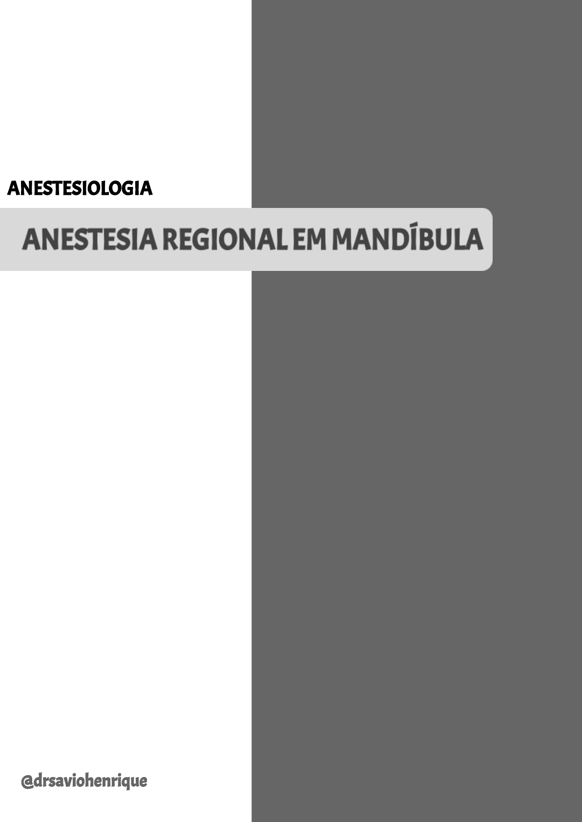 PRÓTESE FIXA I ANESTESIOLOGIA @drsaviohenrique ● As anestesias regionais, também chamadas de bloqueios regionais, são técnicas onde a solução anestésica é depositada próximo ao tronco nervoso principal; ● Geralmente localizado distante do local da intervenção; ● Os bloqueios regionais são indicados quando deseja-se sensibilizar cerca de 3 dentes ou mais de uma mesma hemi-arcada, ao invés de realizar 3 infiltrativas. ● Os seguintes nervos são anestesiados pelas técnica de bloqueio regional em mandíbula: ● Nervo alveolar inferior; ● Nervo lingual; ● Nervo bucal; ● Nervo mentual. RAMOMANDIBULAR BU ● Os bloqueios nervosos em mandíbula possuem alto índice de falha devido a uma maior densidade óssea; ● Uma maior compactação óssea mandibular gera um acesso mais difícil ao tronco nervoso; ● O sucesso dos bloqueios mandibulares depende da deposição do anestésico o mais próximo possível do tronco nervoso (1mm). ● Esta técnica é conhecida também como anestesia pterigomandibular; ● O bloqueio do nervo alveolar inferior é indicada para procedimentos em múltiplos dentes mandibulares, necessidade de anestesia dos tecidos moles bucais e anestesia dos tecidosmoles linguais; ● Pode ser realizada de duas formas: pela técnica direta ou indireta; ● A técnica direta consiste na anestesia do nervo alveolar inferior; ● A técnica indireta anestesia os nervos alveolar inferior, lingual e bucal; ● Na técnica indireta serão anestesiados além do nervo alveolar inferior, o nervo lingual, mentual e incisivo; ● Já na técnica indireta serão anestesiados além do nervo alveolar inferior, o nervo lingual, bucal, mentual e incisivo; ● O bloqueio do nervo alveolar inferior anestesia: Todos os dentes mandibulares até a linha média; Osso sobrejacente; Mucosa anterior ao forame mentual; ⅔anteriores da língua; Assoalho bucal; Tecidosmoles linguais. ● A técnica direta consiste em primeiro estabilizar a seringa voltada para o lado contrário a área a ser anestesiada; ● Em seguida identifica-se a borda anterior do ramo mandibular e a rafe pterigomandibular; ● Traça uma linha imaginária entre essas estruturas anatômicas e a divide em 4 partes; ● O ponto de punção será na parte ¾; ● A agulha deve ser introduzida até o toque ósseo; ● Assim que o toque ósseo acontecer, recua-se 1 mm para evitar injeção subperiosteal e realiza o refluxo (que deve ser negativo); ● Com a aspiração negativa, depositar 1,5ml do tubete num período de 1 minuto; ● Retirar até metade do comprimento da agulha, realizar refluxo novamente e se negativo, depositar os 0,2 ml do tubete para anestesiar o nervo lingual. ● Essa técnica é utilizada para anestesiar além do alveolar inferior, também o nervo bucal; ● O nervo bucal é responsável pela inervação do tecido mole vestibular correspondente aos molaresmandibulares; ● Significa que para intervenções em molares, a técnica indireta está indicada; ● A técnica indireta consiste em começar anestesiando o nervo bucal; ● O ponto de punção é paralelo ao plano oclusal, distal e bucalmente aomolar; ● Inserir 5mm da agulha, refluxo, que se negativo será seguido de depósito de 0,3ml; ● Em seguida inserir a agulha por mais 5mm para anestesiar o nervo lingual, refluxo, que se negativo é seguido do depósito de 0,2ml; ● Retirar a agulha do tecido, deixando apenas sua ponta e levar o conjunto seringa e agulha até os pré-molares do lado oposto; ● Introduzir a agulha até o toque ósseo, recuar 1 mm, refluxo para aspiração negativa e depósito do restante da solução anestésica, garantindo a anestesia do nervo alveolar inferior, nervo incisivo e nervo mentual. ● O nervo mentual é um ramo terminal do nervo alveolar inferior; ● Responsável por anestesiar: Membrana mucosa bucal anterior ao forame mentual da linha média até 2° pré-molar; Pele do lábio inferior e queixo. ● O bloqueio do nervo mentual é utilizado principalmente para procedimentos nos tecidos moles bucais, como a sutura de lacerações ou biópsias. ● A área de punção será entre o 1° e 2° pré-molar em direção ao forame mentual; ● A seringa estará paralela ao longo eixo dos dente e agulha será inserida entre 5 a 6mm; ● Com a aspiração negativa, deposita-se a solução anestésica. ● Esse bloqueio é indicado para procedimentos dentários envolvendo a anestesia pulpar em dentes mandibulares anteriores ao forame mentual; ● Também indicado quando está contraindicado o bloqueio do nervo alveolar inferior como por exemplo o tratamento de mais de 6 dentes anteriores bilaterais, onde é contraindicado o bloqueio bilateral do alveolar inferior; ● Responsável por anestesiar: Membrana mucosa bucal anterior ao forame mentual, geralmente do segundo pré-molar até a linha média; Lábio inferior e pele do queixo; Fibras nervosas pulpares aos pré-molares, ao canino e aos incisivos. ● A técnica é similar a anestesia do nervo mentual, porém o que muda é a posição da seringa que estará perpendicular ao longo eixo dos dentes; ● A área alvo é o forame mentual, mas sem adentrá-lo; ● Introduzir a agulha de 5 a 6 mm na prega mucobucal no canino ou 1° pré-molar; ● Aspiração que deve ser negativa e depósito da solução. ● Também chamada de técnica da tuberosidade; ● Este bloqueio consiste na anestesia das mesmas estruturas anestesiadas pelo bloqueio do nervo alveolar inferior (BNAI) porém com um acesso diferente; ● Ela é utilizada para casos de falta de abertura de boca suficiente para a técnica convencional (exemplo: trismo); ● Também usada quando a língua do paciente é muito grande, o que impede de enxergar as estruturas anatômicas de referência; ● Com o paciente em oclusão afastar os tecidos moles e introduzir a agulha na altura da junção mucogengival acima do terceiro molar maxilar; ● A agulha será introduzida de 25 a 30mm; ● Depois da asp