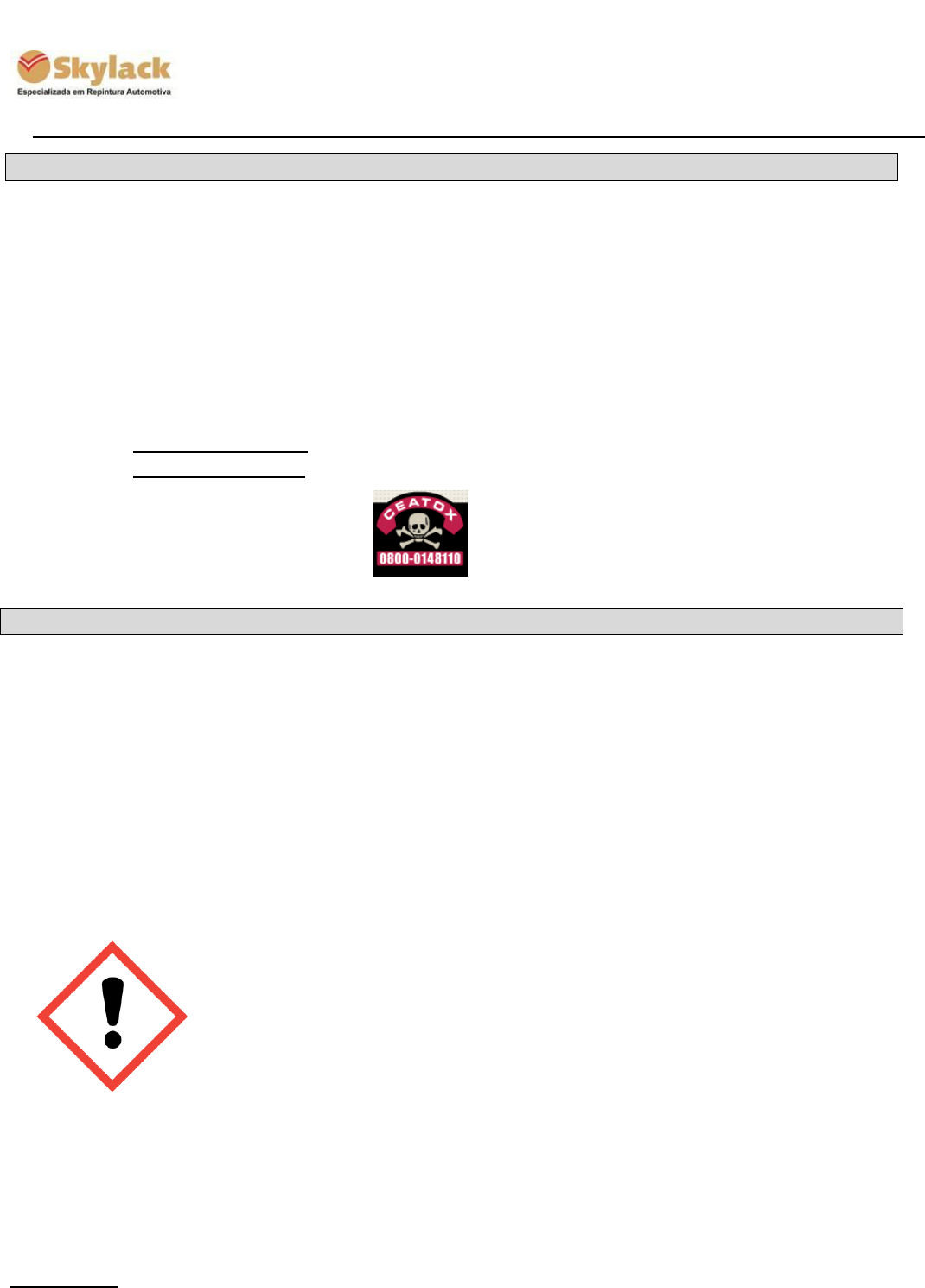 Última revisão: 06/11/2015 Página 1 de 7 FICHA DE INFORMAÇÃO DE SEGURANÇA DE PRODUTO QUÍMICO (FISPQ) KIT PARA REPARO PLÁSTICO - MANTA DE FIBRA DE VIDRO FISPQ nº 085/02 1. IDENTIFICAÇÃO DO PRODUTO E DA EMPRESA Nome do Produto: KIT PARA REPARO PLÁSTICO - MANTA DE FIBRA DE VIDRO Código do Produto: 140-00KR5 (manta de fibra de vidro) Fabricante: SKYLACK TINTAS E VERNIZES LTDA Endereço: Estrada do Jurumirim nº 570 Salto – São Paulo CEP: 13324-180 Telefone: (11) 4602-9090 / Fax: (11) 4602-9099 E-mail: sac@skylack.com.br Web Site: www.skylack.com.br Telefone de Emergência Toxicológica: (Centro de Toxicologia – 24 Horas) 2. IDENTIFICAÇÃO DE PERIGOS Classificação de perigo do produto Corrosão/irritação à pele – Categoria 2 Sistema de Classificação utilizado Norma ABNT-NBR 14725-2:2009 – Versão Corrigida: 2010 Sistema Globalmente Harmonizado para a Classificação e Rotulagem de Produtos Químicos, ONU Outros perigos que não resultam em classificação O produto não possui outros perigos. ELEMENTOS APROPRIADOS DA ROTULAGEM Pictogramas Palavra de advertência: ATENÇÃO Frases de perigo H316 Provoca irritação moderada à pele. Frases de precaução - Prevenção: P102 Manter fora do alcance das crianças. P281 Usar o equipamento de proteção individual exigido. mailto:sac@skylack.com.br http://www.skylack.com.br/ Última revisão: 06/11/2015 Página 2 de 7 FICHA DE INFORMAÇÃO DE SEGURANÇA DE PRODUTO QUÍMICO (FISPQ) KIT PARA REPARO PLÁSTICO - MANTA DE FIBRA DE VIDRO FISPQ nº 085/02 - Respostas à emergência: P305+P351+P338 SE ENTRAR EM CONTATO COM OS OLHOS: Enxague cuidadosamente com água durante vários minutos. No caso de uso de lentes de contato, remova-as, se for fácil. Continue enxaguando. P303+P361+P353 SE ENTRAR EM CONTATO COM A PELE (ou o cabelo): Retire imediatamente toda a roupa contaminada. Enxague a pele com água/tome uma ducha. P304+P340 EM CASO DE INALAÇÃO: Remova a pessoa para local ventilado e a mantenha em repouso numa posição que não dificulte a respiração. P301+P330+P331 EM CASO DE INGESTÃO: Enxague a boca. NÃO provoque vômito. P101 Se for necessário consultar um médico, tenha em mãos a embalagem ou o rótulo. P370+P378 EM CASO DE INCÊNDIO: Para a extinção utilizar extinção por pó químico, gás carbônico ou espuma mecânica resistente a água na forma de neblina. - Armazenamento: P402+P404 Armazenar em local seco. Armazenar em recipiente fechado. - Disposição: P501 Eliminar o conteúdo/recipiente em conformidade com as regulamentações locais. 3. COMPOSIÇÃO E INFORMAÇÕES SOBRE OS INGREDIENTES Este produto é uma MISTURA Natureza Química: Fibra de vidro e resina poliéster não saturada. Ingredientes ou impurezas que contribuam para o perigo Número CAS Faixa de Concentração (%) Resina Poliéster Sólida não saturada 39382-21-3 0,1 – 1,0 Fibra de vidro 65997-17-3 99 - 100 4. MEDIDAS DE PRIMEIROS SOCORROS Inalação Remova a vítima para local. Caso sinta indisposição, procure um médico. Leve esta FISPQ. Contato com a pele Remover as roupas e calçados contaminados. Lavar a área atingida com bastante água e sabão para remoção do material. Em caso de irritação cutânea, procure um médico. Leve esta FISPQ. Contato com os olhos Enxague cuidadosamente com água durante vários minutos. No caso de uso de lentes de contato, remova-as, se for fácil. Continue enxaguando, mantendo as pálpebras bem abertas. Caso a irritação ocular persista, consulte um médico. Leve esta FISPQ. Ingestão Lavar a boca. Se sentir alguma indisposição, consulte um médico. Leve esta FISPQ. Sintomas e efeitos mais importantes, agudos e tardios Não se conhece. Última revisão: 06/11/2015 Página 3 de 7 FICHA DE INFORMAÇÃO DE SEGURANÇA DE PRODUTO QUÍMICO (FISPQ) KIT PARA REPARO PLÁSTICO - MANTA DE FIBRA DE VIDRO FISPQ nº 085/02 Notas para médicos Irritação da pele responde bem a um creme a base de hidrocortisona. 5. MEDIDAS DE COMBATE A INCÊNDIO Meios de extinção apropriados Apropriados: Pó químico, gás carbônico ou espuma mecânica resistente a água na forma de neblina. Não recomendados: Jatos d’água. Água diretamente no produto em chamas. Perigos Específicos Durante um incêndio, a fumaça pode conter produtos tóxicos e ou irritantes não identificados. Os produtos de combustão perigosos não se limitam a monóxido e dióxido de carbono, formam outros gases irritantes e venenosos. Medidas de proteção da equipe de combate a incêndio Equipamento de proteção respiratória autônoma e vestuário protetor completo. 6. MEDIDAS DE CONTROLE PARA DERRAMAMENTO OU VAZAMENTO Precauções pessoais Para o pessoal que não faz parte do serviço de emergência Mantenha-se afastado. Para o pessoal do serviço de emergência Utilize EPI completo descrito na seção 8. Evacue a área. Isole a área do incêndio e evite o acesso de pessoas. Precauções ao Meio Ambiente A água proveniente do combate ao fogo pode causar poluição. Métodos e materiais para contenção e limpeza Coletar com pás, varrer ou aspirar. Armazenar em recipiente para descarte para coleta seletiva. Diferença na ação de grandes e pequenos vazamentos Não existe diferença. 7. MANUSEIO E ARMAZENAMENTO Medidas técnicas apropriadas para o manuseio Precauções para o manuseio seguro Manuseie em uma área ventilada ou com sistema geral de ventilação/exaustão local. Evite formação de poeira de fibra de vidro. Utilize equipamentos de proteção individual conforme descrito na seção 8. Medidas de higiene Lave as mãos e o rosto cuidadosamente após o manuseio e antes de comer, beber, fumar ou ir ao banheiro. Roupas contaminadas devem ser trocadas e lavadas antes da sua reutilização. Remova a roupa e os equipamentos de proteção contaminados antes de entrar nas áreas de alimentação. Condições de armazenamento seguro, incluindo qualquer incompatibilidade Prevenção de incêndio e explosão Mantenha afastado do calor