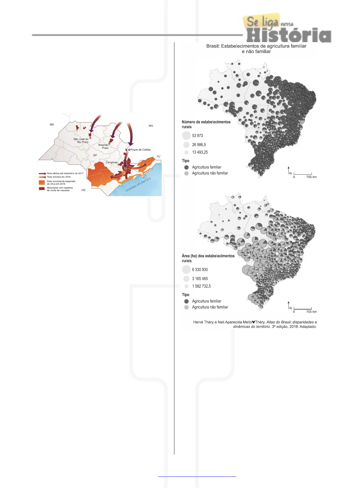 1/42 Lista de Exercícios : Geografia | Economia e Sociedade 1. (Fuvest 2020) Em reportagem publicada em 2018, a revista FAPESP apresenta uma pesquisa da Superintendência de Controle de Endemias (SUCEN) que usou informações de data e local de mortes de macacos por um determinado vírus. A partir do estudo, construiu‐se um modelo epidemiológico que descreve o sentido de deslocamento e os corredores ecológicos funcionais (corredores prováveis) do vírus. Disponível em http://revistapesquisa.fapesp.br/. Com base nas informações e no mapa, o corredor ecológico funcional desse vírus, que atingiu a maior abrangência territorial no Estado de São Paulo durante o ano de 2017, avançou principalmente por quais regiões e causou qual enfermidade? a) Sul de Minas Gerais e Vale do rio Ribeira de Iguape; Chikungunya. b) Sul de Minas Gerais e São José do Rio Preto; Dengue. c) Vale do rio Ribeira de Iguape e Região Metropolitana de São Paulo; Zika. d) Sul de Minas Gerais e Campinas; Febre Amarela. e) Litoral de São Paulo e Vale do rio Ribeira de Iguape; Gripe. 2. (Fuvest 2020) Sobre a produção agrícola brasileira e os dados apresentados nos cartogramas, é correto afirmar: a) A agricultura familiar, que utiliza a maior extensão de terras agricultáveis do país, foi responsável pela produção da maior parte do volume agrícola exportado. b) A agricultura familiar, que utiliza uma extensão de terras menor que a agricultura não familiar, tem destaque na produção de alimentos para o mercado interno. c) A agricultura não familiar, que detém a maior extensão de terras agricultáveis do país, consiste em uma barreira ao desenvolvimento das atividades ligadas ao agronegócio. Todos direitos reservados - www.seliganessahistoria.com.br - Página 1 de 42 http://www.seliganessahistoria.com.br/ 2/42 Lista de Exercícios : Geografia | Economia e Sociedade d) A agricultura não familiar, que apresenta o maior número de estabelecimentos rurais no país, é responsável pela produção de parte das chamadas commodities brasileiras. e) A concentração fundiária foi superada no país em função de a agricultura familiar ocupar, com seus estabelecimentos, a maior parte das terras. 3. (Fuvest 2020) Em Barcelona, em 2012 e 2013, a cada 15 minutos uma família recebia ordem de despejo. Desde então, o panorama da habitação mudou totalmente. “(...) Estamos assistindo uma onda de especulação imobiliária (...) que agora se foca no aluguel”, explica Daniel Pardo da Associação de Moradores para um Turismo Sustentável. “Este fenômeno pôs em marcha um processo acelerado e violento de expulsão de inquilinos”, acrescenta. Onde a pressão da especulação imobiliária internacional e a indústria do turismo causaram um aumento substancial nos preços dos aluguéis, os catalães têm hoje de gastar mais de 46% dos seus salários com o aluguel. Para os jovens até os 35 anos, a taxa de esforço aumenta até os 65% (...). “Não queremos que os habitantes de Barcelona sejam substituídos por pessoas com maior poder de compra”, diz a porta‐voz do Sindicato dos Inquilinos. Só em Barcelona, 15 fundos de investimento imobiliário possuem 3.000 apartamentos. “Os habitantes querem a sua cidade de volta”. Reportagem de Ulrike Prinz para o Goethe‐Institut Madrid. Maio/2018. Adaptado. Os conceitos que explicam as dinâmicas urbanas descritas no excerto são: a) Financeirização e Industrialização. b) Gentrificação e Segregação. c) Aglomeração e Conurbação. d) Industrialização e Segregação. e) Conurbação e Gentrificação. 4. (Uece 2019) Há um crescente debate no Brasil sobre a formação e a diversidade étnica da população, em especial sobre o papel dos povos indígenas e a valorização da sua cultura. Considerando esse assunto, assinale a afirmação verdadeira. a) A cultura dos povos indígenas no Brasil passa por grandes transformações, entre as quais podem ser citadas o fim das relações coletivas de trabalho nas aldeias e o aumento da noção de propriedade privada na relação com a terra. b) O princípio que assegura as condições de vida em comunidade e a demarcação de terras para a habitação dos povos indígenas se embasa no fato de os mesmos terem sido os primeiros habitantes do território. c) Depois de décadas de repressão e de medidas políticas que provocaram genocídio de povos indígenas no território nacional, atualmente eles têm recebido garantias importantes de demarcação de suas terras e de valorização de seus costumes. d) No Brasil, como as taxas de alfabetização dos povos indígenas são mais altas do que a taxa da população não indígena, as heranças originárias sobre suas línguas, crenças e tradições estão asseguradas para as próximas gerações. 5. (Uece 2019) O panorama da saúde no Brasil se caracteriza pela existência, no sentido figurado, de regiões “africanas” e “europeias” quando se trata da infraestrutura para atendimento dos serviços de saúde e da distribuição de médicos. Sobre esse assunto, escreva V ou F, conforme seja verdadeiro ou falso o que se diz a seguir: ( ) Embora fortemente influenciada por contrastes sociais, a geografia do atendimento da saúde no Brasil não apresenta disparidades no que tange à sua cobertura regional. ( ) O Brasil apresenta um dos maiores e mais complexos sistemas de saúde pública do mundo, o Sistema Único de Saúde (SUS), que abrange desde o simples atendimento para avaliação da pressão arterial até o transplante de órgãos. ( ) A polêmica em torno do trabalho de médicos cubanos do Programa Mais Médicos estava relacionado ao fato de que esses profissionais não aceitaram trabalhar nas periferias das cidades ou em regiões distantes dos maiores centros econômicos do País. ( ) O mapa de distribuição dos médicos pelo território brasileiro revela profunda desigualdade, com contrastes marcantes entre regiões como a Sudeste, bem atendid