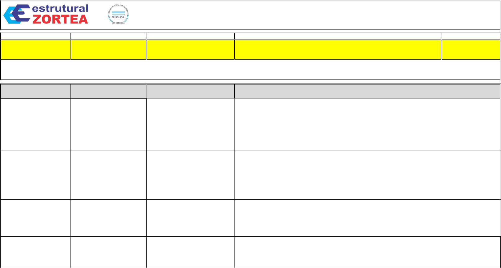 ANÁLISE PRELIMINAR DE RISCO - APR Revisão 00 MONTAGEM DE ESTRUTURAS METÁLICAS Data: 05/12/2023 SETOR OBRA - UNIDADE LOCAL PERÍODO NUMERO APR CANTEIRO DE OBRA TGSC 634 - TGSC SÃO FRANCISCO DO SUL/SC FEVEREIRO 2024 002 MONTAGEM DE ESTRUTURAS METÁLICAS COM AUXILIO DE CAMINHÃO MUNCK/GUINDASTE. USO DE FERRAMENTAS ELÉTRICAS E MANUAIS FASE ATIVIDADE RISCOS/DANOS MEDIDAS DE CONTROLE Atividades preliminares Mobilização Preparação para iniciar as atividades Orientações de serviço/segurança do trabalho Deslocamento dentro da área Trabalho a céu aberto Condições desfávoraveis de trabalho; Mal súbito; Quedas de mesmo nível; Animais peçonhentos. Lesões/Fraturas/Escoriações; Inchaço; Formigamento; Paralizia; Hemorragia Fatal; Insuficiência renal Irreversível; Danos nos tecidos (amputação) Realizar o planejamento antecipado das atividades; Antes da atividade ser feita, realizar o DDS junto ao SESMT, promover a leitura do procedimento da APR / Permissão de Trabalho - PT e abordar os riscos envolvidos nas atividades; Não improvisar nenhum tipo dpe ferramenta; atenção na execução das atividades; As equipes devem mantes uma boa comunicação e sincronia durante a realização das atividades; Isolar/sinalizar a área de trabalho, entorno; Fazer o uso correto dos Equipamentos de Proteção - EPI e os Equipamentos de Proteção Coletiva - EPC necessários, conforme a atividade; Trafegar somente na parte interna das rotas determinadas e em locais apropriados, não permitido acessar áreas isoladas onde não há tarefa sendo executadas; manter materias estocados de forma adequada; garantir a ordem, organização e limpeza na frente de serviço; em caso de picada ou ou contato com animais peçonhentos, comunicar de imadiato o SESMT; Os encarregados e supervisores devem fiscalizar suas frentes de trabalho, a fim de fazer cumprir o conteúdo desta APR Uso de adornos; Queda do mesmo nível; Choque elétrico. Amputação de membros; Corte em geral; Lesão em geral PROIBIDO o uso do celular nas atividades operacionais o uso é restrito aos líderes da atividade (encarregado, engenheiro e TST); PROIBIDO uso de adornos durante a atividade de serviço. Ex: pulseiras, anéis, corrente e uso de boné por debaixo do capacete etc; O Encarregado e/ ou Téc. de Segurança deverão realizar DDS antes do início dos trabalhos com todos os envolvidos; O Encarregado e/ ou Téc. de segurança, deverão orientar os colaboradores a se deslocar para frente de trabalho de forma segura, por áreas liberadas; Antes de iniciar as atividades é obrigatório fazer a verificação das possíveis interferências da área que podem impactar na continuidade dos trabalhos; Se houver qualquer alteração no cenário da atividade, ela deve ser paralisada pelo encarregado para adequação da APR; Antes de iniciar qualquer atividade, realizar inspenção em todas máquinas, equipamentos e ferramentas a serem usados. Deslocamento dos colaboradores envolvidos na atividade dentro da área de serviço Queda de mesmo nível; Queda de diferentes níveis; Batida contra veículos automotores; Piso Irregular. Lesões; Fraturas; Ferimentos Gerais; Acidentes Gerais; Atropelamento; Entorse; Luxação; Danos materiais. Uso obrigatório dos seguintes EPIs: Capacete com jugular, óculos escuro e/ou incolor, protetor auricular, luva de segurança, botina de segurança; Seguir normas de trânsito; Respeitar as faixas de pedestres; Velocidade máxima permitida de 20 Km/h; Somente dirija ou operade equipamentos se estiver habilitado e/ou qualificado; Isolar e sinalizar o local de trabalho; Permanecer no local de trabalho somente pessoas autorizadas/ envolvidas com a atividade; Atenção ao executar manobras; Não descarregar os materiais e equipamentos com tempo chuvoso; Possuir dispositivo sonoro de marcha ré (EXCETO AUTOMÓVEIS); Dúvidas: pare e pergunte; Atenção na atividade desenvolvida. Atividades de pré montagem / montagem de estruturas metálicas Exposição às intempéries, às radiações não ionizante. Lesões/queimaduras na pele; Insolação, desidratação; Fadiga, estresse; Danos pessoais. Provimento de abrigo (área de apoio) para proteção contra intempérie/exposição solar; Fornecimento e uso de protetor solar; Observar as condições climáticas adversas (ventos fortes, chuvas, descargas atmosféricas) e adotar as medidas de proteção adequadas - caso seja necessário, a atividade será interrompida; Fornecimento e utilização de uniforme com manga comprida; Fornecimento de água potável para hidratação no local de trabalho; Alerta em DDS sobre os riscos existentes nas diversas atividades e etapas de trabalho a serem realizadas durante a obra; Não fazer improvisações. ANÁLISE PRELIMINAR DE RISCO - APR Revisão 00 MONTAGEM DE ESTRUTURAS METÁLICAS Data: 05/12/2023 SETOR OBRA - UNIDADE LOCAL PERÍODO NUMERO APR CANTEIRO DE OBRA TGSC 634 - TGSC SÃO FRANCISCO DO SUL/SC FEVEREIRO 2024 002 MONTAGEM DE ESTRUTURAS METÁLICAS COM AUXILIO DE CAMINHÃO MUNCK/GUINDASTE. USO DE FERRAMENTAS ELÉTRICAS E MANUAIS FASE ATIVIDADE RISCOS/DANOS MEDIDAS DE CONTROLE Movimentar a carga para local definido Altura. Múltiplas lesões; Queda de nível diferente Pré montagem das estruturas metálicas Preparação para movimentação de materiais / estruturas metálicas Preparação para movimentação de materiais/estruturas de forma manual ou com auxilio de carrinho plataforma/caminhão munck/guindaste Queda de materiais; batida por, batida contra; Prensagem, esmagamento; Radiação solar; Atropelamento; Projeção de materiais, de partículas; Superfícies e/ou materiais perfuro cortantes; ergononomia. Atropelamento; Escoriações, cortes, fraturas, politraumatismo; Insolação, desidratação, queimaduras na pele; Lesão ocular; Danos Pessoais e/ou materiais; Impactos Ambientais. Realizar a preparação para movimentação de carga com auxilio de caminhão munck/ guindaste; Antes de iniciar a movimentação, observar