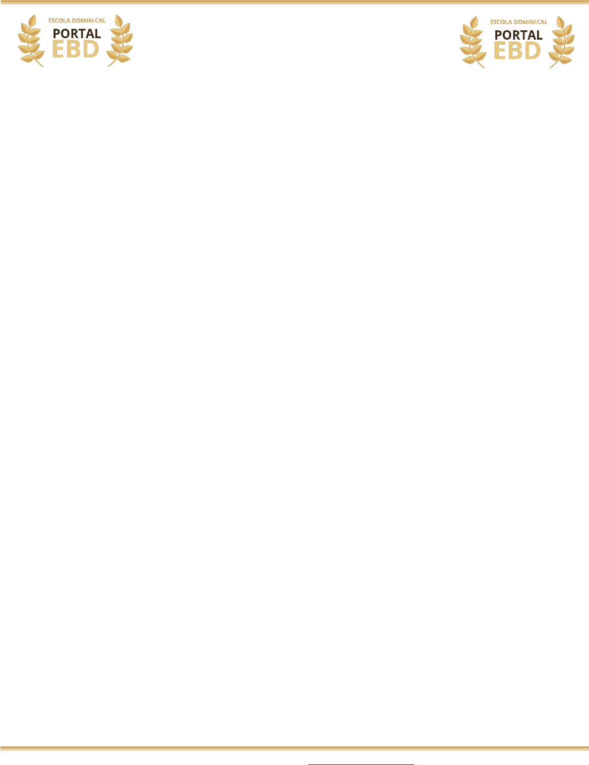 2º Trimestre de 2022 – Pré Adolescentes: Conhecendo o caráter de Deus Portal Escola Dominical – www.portalebd.org.br Ajude a manter este trabalho – Deposite qualquer valor em nome de: Associação para promoção do Ensino Bíblico – Bancodo Brasil Ag. 1815-5 c/c 135720-4 – CNPJ 05.693.826-0001-05 (PIX) PORTAL ESCOLA DOMINICAL 2º Trimestre de 2022– CPAD–PRÉ-ADOLESCENTES Conhecendo o caráter de Deus Comentarista: Renato Paura Comentário: Prof. Jair César S. Oliveira OBSERVAÇÃO O subsídio da lição pré adolescentes, não é um comentário da lição da revista, mas sim, textos adicionais que podem ser usados para complementar a elaboração da aula. Alguns textos são de cunho pessoal, e outros de pesquisas, subsídios de outras faixas etárias, com suas respectivas fontes. Cabe ao professor, com a revista e os textos de subsídio em mãos, anotar os pontos mais importantes para serem abordados em aula, tendo sempre em mente alcançar os objetivos da lição. LIÇÃO 13- UM DEUS AMOROSO Texto da lição Amados, amemo-nos uns aos outros; porque o amor é de Deus; e qualquer que ama é nascido de Deus e conhece a Deus. Aquele que não ama não conhece a Deus; porque Deus é amor. Nisto se manifestou o amor de Deus para conosco: que Deus enviou seu Filho unigênito ao mundo, para que por ele vivamos. Nisto está o amor, não em que nós tenhamos amado a Deus, mas em que ele nos amou a nós, e enviou seu Filho para propiciação pelos nossos pecados. Amados, se Deus assim nos amou, também nòs devemos amar uns aos outros. Ninguém jamais viu a Deus; se nos amamos uns aos outros, Deus está em nós, e em nós é perfeito o seu amor. Nisto conhecemos que estamos nele, e ele em nós, pois que nos deu do seu Espírito. E vimos, e testificamos que o Pai enviou seu Filho para Salvador do mundo. Qualquer que confessar que Jesus é o Filho de Deus, Deus está nele, e ele em Deus. E nós conhecemos, e cremos no amor que Deus nos tem. Deus é amor; e quem está em amor está em Deus, e Deus nele. Nisto é perfeito o amor para conosco, para que no dia do juízo tenhamos confiança; porque, qual ele é, somos nós também neste mundo. No amor não há temor, antes o perfeito amor lança fora o temor; porque o temor tem consigo a pena, e o que teme não é perfeito em amor. Nós o amamos a ele porque ele nos amou primeiro. Se alguém diz: Eu amo a Deus, e odeia a seu irmão, é mentiroso. Pois quem não ama a seu irmão, ao qual viu, como pode amar a Deus, a quem não viu? E dele temos este mandamento: que quem ama a Deus, ame também a seu irmão. 1 João 4:7-21 A Bíblia diz: “Porque Deus amou o mundo tanto, que deu seu único filho, para que todo aquele que nele crer não morra, mas tenha a vida eterna.” 2º Trimestre de 2022 – Pré Adolescentes: Conhecendo o caráter de Deus Portal Escola Dominical – www.portalebd.org.br Ajude a manter este trabalho – Deposite qualquer valor em nome de: Associação para promoção do Ensino Bíblico – Bancodo Brasil Ag. 1815-5 c/c 135720-4 – CNPJ 05.693.826-0001-05 (PIX) Objetivos da lição Explicar o que significa provar do amor de Deus Destacar a infinitude do amor de Deus Ensinar que o amor ao próximo é um mandamento Introdução Estamos concluindo e encerrando este trimestre, a qual estudamos sobre a pessoa de Deus. Um breve curso de teologia, estudamos os eu caráter, a sua qualidades, o seus atributos, a forma como Deus se revelou a humanidade na história, o seu plano da salvação aos pecadores. Agora encerramos nossos estudamos, o que não poderia ser de outra forma, se não, verificarmos a sua maior característica, o que poderíamos melhor caracterizar Deus? Já sabemos do seu poder, da sua gloria, da sua sabedoria, mas o que mais caracteriza a pessoa de Deus é o amor. Não o amor , como costumamos conhecer, mas o amor divino é muito mais abrangente, é verdadeiro, é eficaz, é sublime. 1-Já provei do seu amor? O amor Ágape é o amor de Deus. Não se refere a qualquer tipo de amor, como o cantado em músicas ou declarado em poemas chegando até ser confundido com a paixão e com outros sentimentos. O amor de Deus é diferente do amor do mundo, pois ele é sacrificial, abnegado e incondicional.A palavra grega, agápē e suas variações são encontradas 106 vezes em todo o Novo Testamento, com maior uso em 1 João. Significado e explicação do amor Ágape Ágape é a forma mais elevada de amor, ele excede todos os demais tipos de amor, pois sempre está disposto a amar sem reservas mesmo aqueles que são indignos e inferiores. Por isso ele é definido como o amor de Deus pelo homem. O Ladrão na cruz havia passado toda a sua vida em pecado, mas nos seus momentos finais se arrependeu. Pediu a Jesus para lembrar dele quando chegasse no seu reino, então, ouviu da boca do Mestre uma resposta amorosa afirmando que naquele mesmo dia ele estaria com Ele no paraíso. Foi aceito pelo Senhor Jesus sem poder oferecer nada em troca. (Lucas 23:43). A importância do amor Ágape para a humanidade O amor Ágape é contra a vontade humana, pois oferece bondade e dedicação a outra pessoa sem esperar uma recompensa. Tal sentimento contrapõe ao sentimento humano porque mesmo que esse motive a prática das mesmas ações, visa, no entanto, a retribuição de alguma forma, quer seja de forma material, promoção de uma imagem caridosa ou outros atributos diante da sociedade. Em época de campanha eleitoral, por exemplo, os políticos precisam de votos e alguns forjam, muitas vezes, uma aproximação e fingem uma falsa caridade indo à casa das pessoas mais carentes ouvir suas dificuldades ou fazer algo pelas mesmas. Apesar de aparentemente parecer um ato bondoso, uma reflexão um pouco mais apurada mostrará que tudo isso visa unicamente ganhar o voto daquelas pessoas e promover sua imagem diante do público em geral. Ou seja, quando faz o bem a outra pessoa, pensa em uma compensação e isso vai em oposição ao amor Ágape