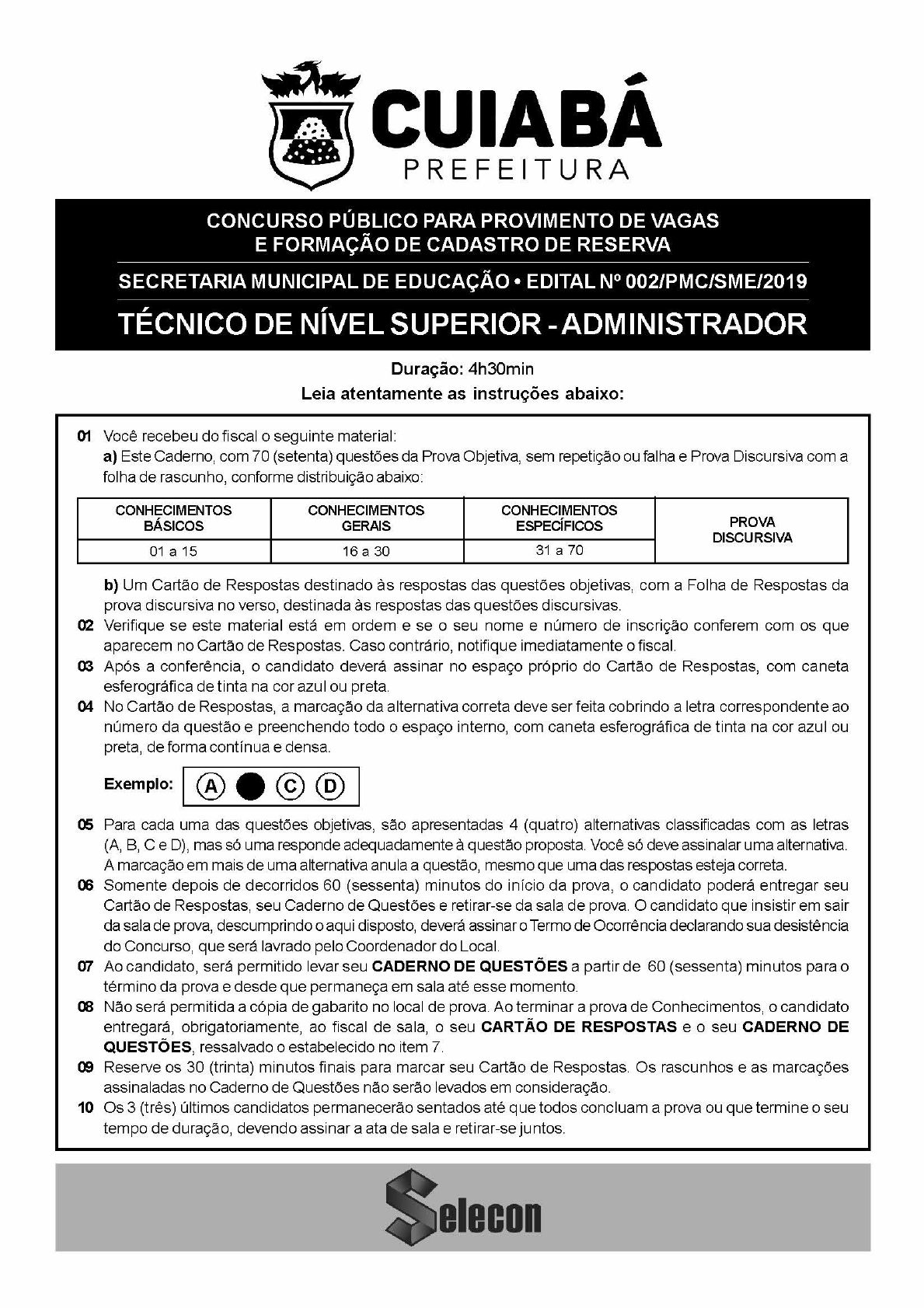 xCUIABÁ PREFEITURA CONCURSO PÚBLICO PARA PROVIMENTO DE VAGAS E FORMAÇÃO DE CADASTRO DE RESERVA SECRETARIA MUNICIPAL DE EDUCAÇÃO * EDITAL Nº 002/PMC/SME/2019 TÉCNICO DE NÍVEL SUPERIOR -ADMINISTRADOR Duração: 4h30min Leia atentamente as instruções abaixo: 0 Você recebeu dofiscal o seguinte material: a) Este Caderno, com 70 (setenta) questões da Prova Objetiva, sem repetição ou falha e Prova Discursiva com a folha de rascunho, conforme distribuição abaixo: CONHECIMENTOS CONHECIMENTOS CONHECIMENTOS BÁSICOS GERAIS ESPECÍFICOS PROVA DISCURSIVA 01a 15 16a 30 31 a 70 10 b) Um Cartão de Respostas destinado às respostas das questões objetivas, com a Folha de Respostas da prova discursiva no verso, destinada às respostas das questões discursivas. Verifique se este material está em ordem e se o seu nome e número de inscrição conferem com os que aparecem no Cartão de Respostas. Caso contrário, notifique imediatamente o fiscal. Após a conferência, o candidato deverá assinar no espaço próprio do Cartão de Respostas, com caneta esferográfica de tinta na cor azul ou preta. No Cartão de Respostas, a marcação da alternativa correta deve ser feita cobrindo a letra correspondente ao número da questão e preenchendo todo o espaçointerno, com caneta esferográfica de tinta na cor azul ou preta, de forma contínua e densa. Exemplo: (A) O (c) (D) Para cada uma das questões objetivas, são apresentadas 4 (quatro) alternativas classificadas com as letras (A, B, Ce D), mas só uma responde adequadamente à questão proposta. Você só deve assinalar uma alternativa. A marcação em mais de uma alternativa anula a questão, mesmo que uma das respostas esteja correta. Somente depois de decorridos 60 (sessenta) minutos do início da prova, o candidato poderá entregar seu Cartão de Respostas, seu Caderno de Questõese retirar-se da sala de prova. O candidato queinsistir em sair da sala de prova, descumprindo o aqui disposto, deverá assinar o Termo de Ocorrência declarando sua desistência do Concurso, que será lavrado pelo Coordenador do Local. Ao candidato, será permitido levar seu CADERNO DE QUESTÕES partir de 60 (sessenta) minutos para o término da prova e desde que permaneça em sala até esse momento. Não será permitida a cópia de gabarito no local de prova. Ao terminar a prova de Conhecimentos, o candidato entregará, obrigatoriamente, ao fiscal de sala, o seu CARTÃO DE RESPOSTAS e o seu CADERNO DE QUESTÕES, ressalvado o estabelecido no item 7. Reserve os 30 (trinta) minutos finais para marcar seu Cartão de Respostas. Os rascunhos e as marcações assinaladas no Caderno de Questões não serão levados em consideração. Os 3 (três) últimos candidatos permanecerão sentados até que todos concluam a prova ou que termine o seu tempo de duração, devendo assinar a ata de sala e retirar-se juntos. Soleem VACINAS, PARA QUE AS QUERO? Em um momento em que os menos avisados suspeitam das vacinas, as autoridades em saúde pública e imunologia apresentam dados mostrando que, na realidade, as vacinas precisam, sim, ser inoculadas com mais frequência. Esse é o teor do artigo 'Quanto tempo duram as vacinas”, assinado por Jon Cohen publicado na prestigiosa revista Scienceem abril de 2019. Nele, Cohen indaga, entre outros assuntos, por que o efeito protetor das vacinas contra a gripe dura tão pouco (em média, depois de 90 dias, a proteção começa a cair) e em outras, como as da varíola e da febre amarela, a ação é bem mais prolongada. Alguns especialistas argumentam que certos vírus sofrem altas taxas de mutação e geram novos clones, que, por serem ligeiramente diferentes dosoriginais, não seriam reconhecidos pelas células do sistema imune. Mas, a coisa não é tão simples assim. Ao estudar a caxumba (que ainda afeta os humanos), por exemplo, os epidemiologistas descobriram que a recorrência da doença acontece com mais frequência em uma determinada faixa etária (entre 18 e 29 anos de idade). Sea reinfecção dependesse apenas de mutações, todas as idades deveriam ser igualmente afetadas. Assim, o enigma perdura. No entanto, o consenso entre os imunologistas especializados em vacinas é que, de fato, precisamos de mais exposição aos agentes infecciosos ou às próprias vacinas. Em outras palavras, no caso da gripe, teríamos que tomar doses seguidas da vacina a fim de aumentar seu efeito protetor. Em razão desses achados, os pesquisadoreschegaram até a criticara decisão da Organização Mundial da Saúde (OMS) de recomendar que a vacina contra a febre amarela devesse ser inoculada apenas uma vez, isto é, seria uma vacina vitalícia. A necessidade da exposição constante aos agentes infecciosos vai de encontro à hipótese do biólogo norte- americano Jared Diamond que, em seu livro Armas, germes e aço, defende a ideia de que, ao longo da história, o sucesso dos conquistadores se deveu, em parte, ao fato de eles serem originalmente cosmopolitas e, dessa maneira, terem adquirido resistência imunológica aos agentes infecciosos da época. Mesmoresistentes, seriam portadores desses agentes, o que manteria a memória imunológica. Já os conquistados, grupo formado por populações menores, sucumbiriam ao confronto por não serem capazesde se defendertanto dos invasores humanos quanto daqueles microscópicos. Emborao avanço nessa área seja promissor, o mecanismo que torna uma vacina mais duradoura ou não ainda segue sem resposta. Como afirma Cohen em seu artigo, “essa é uma pergunta de um milhão de dólares!” (aproximadamente, o valor do prêmio Nobel). A despeito disso, ninguém deveria duvidar do poder das vacinas. Muito pelo contrário. A tendência atual no tratamento de doenças crônicas, como o câncere a artrite reumatoide, é a imunoterapia. Um dia, quem sabe, teremosvacinas contra todos esses males. Franklin Rumjanek (Disponível em: http:/cienciahoje.org.br/artigo/vacinas- ara-que-as-quero/) 1 « O título antecipa o 