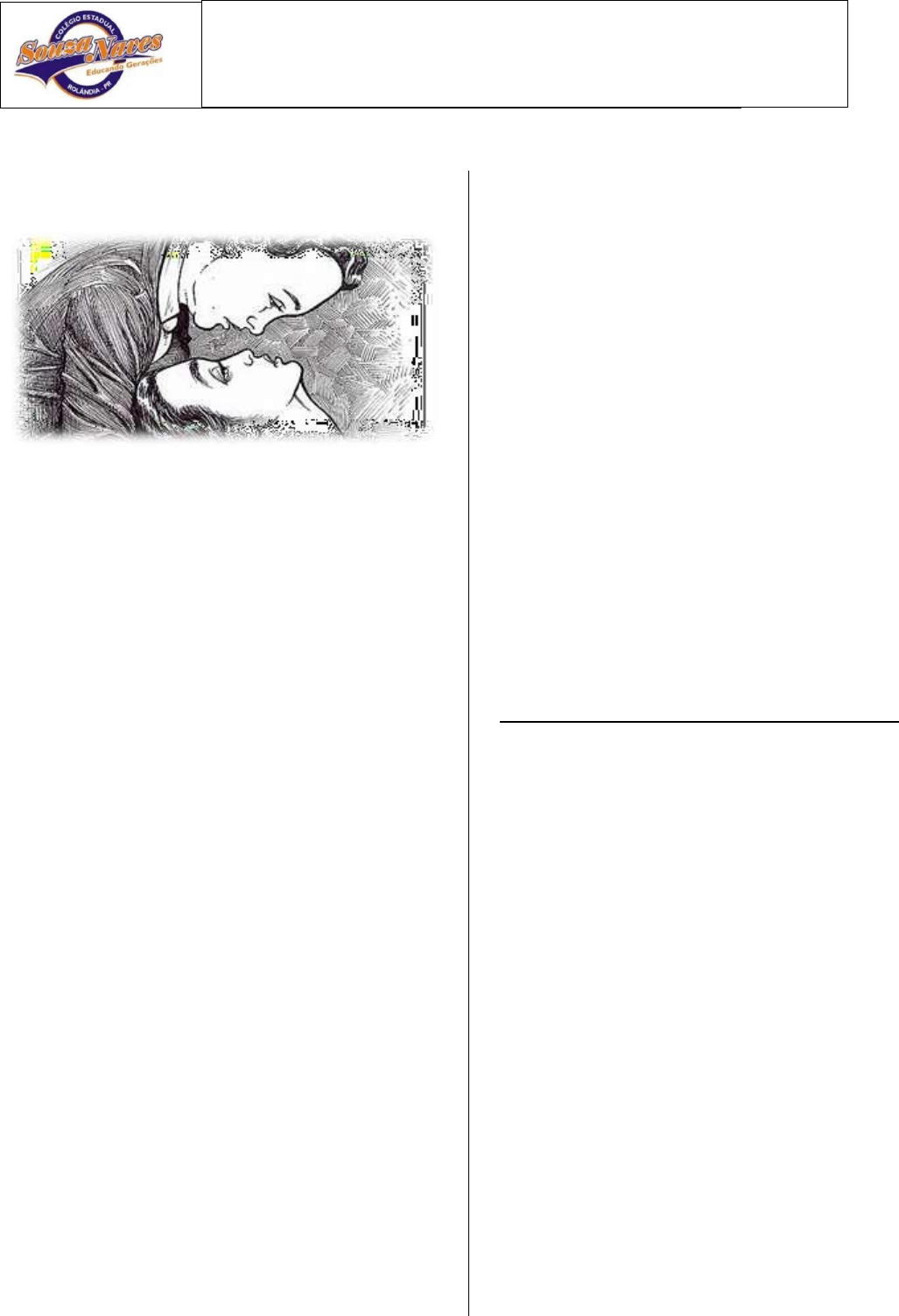 ATIVIDADE DE LÍNGUA PORTUGUESA Leia o texto abaixo e responda às questões. O PENTEADO Capitu deu-me as costas, voltando-se para o espelhinho. Peguei-lhe dos cabelos, colhi-os todos e entrei a alisá-los com o pente, desde a testa até as últimas pontas, que lhe desciam à cintura. Em pé não dava jeito: não esquecestes que ela era um nadinha mais alta que eu, mas ainda que fosse da mesma altura. Pedi-lhe que se sentasse. — Senta aqui, é melhor. Sentou-se. "Vamos ver o grande cabeleireiro", disse-me rindo. Continuei a alisar os cabelos, com muito cuidado, e dividi-os em duas porções iguais, para compor as duas tranças. Não as fiz logo, nem assim depressa, como podem supor os cabeleireiros de ofício, mas devagar, devagarinho, saboreando pelo tato aqueles fios grossos, que eram parte dela. O trabalho era atrapalhado, às vezes por desazo, outras de propósito para desfazer o feito e refazê-lo. Os dedos roçavam na nuca da pequena ou nas espáduas vestidas de chita, e a sensação era um deleite. Mas, enfim, os cabelos iam acabando, por mais que eu os quisesse intermináveis. Não pedi ao Céu que eles fossem tão longos como os da Aurora, porque não conhecia ainda esta divindade que os velhos poetas me apresentaram depois; mas, desejei penteá-los por todos os séculos dos séculos, tecer duas tranças que pudessem envolver o infinito por um número inominável de vezes. Se isto vos parecer enfático, desgraçado leitor, é que nunca penteastes uma pequena, nunca pusestes as mãos adolescentes na jovem cabeça de uma ninfa... Uma ninfa! Todo eu estou mitológico. Ainda há pouco, falando dos seus olhos de ressaca, cheguei a escrever Tétis; risquei Tétis, risquemos ninfa; digamos somente uma criatura amada, palavra que envolve todas as potências cristãs e pagãs. Enfim, acabei as duas tranças. Onde estava a fita para atar-lhes as pontas? Em cima da mesa, um triste pedaço de fita enxovalhada. Juntei as pontas das tranças, uni-as por um laço, retoquei a obra alargando aqui, achatando ali, até que exclamei: — Pronto! — Estará bom? — Veja no espelho. Em vez de ir ao espelho, que pensais que fez Capitu? Não vos esqueçais que estava sentada, de costas para mim. Capitu derreou a cabeça, a tal ponto que me foi preciso acudir com as mãos e ampará-la; o espaldar da cadeira era baixo. Inclinei-me depois sobre ela, rosto a rosto, mas trocados, os olhos de uma na linha da boca do outro. Pedi-lhe que levantasse a cabeça, podia ficar tonta, machucar o pescoço. Cheguei a dizer-lhe que estava feia; mas nem esta razão a moveu. — Levanta, Capitu! Não quis, não levantou a cabeça, e ficamos assim a olhar um para o outro, até que ela abrochou os lábios, eu desci os meus, e... Grande foi a sensação do beijo; Capitu ergueu- se, rápida, eu recuei até à parede com uma espécie de vertigem, sem fala, os olhos escuros. Quando eles me clarearam, vi que Capitu tinha os seus no chão. Não me atrevi a dizer nada; ainda que quisesse, faltava-me língua. Preso, atordoado, não achava gesto nem ímpeto que me descolasse da parede e me atirasse a ela com mil palavras cálidas e mimosas... Não mofes dos meus quinze anos, leitor precoce. Com dezessete, Des Grieux (e mais era Des Grieux) não pensava ainda na diferença dos sexos. de Machado de Assis, Dom Casmurro - CAPÍTULO XXXIII ESTUDO DO TEXTO 1. O trecho acima faz parte de uma das obras literárias mais conhecidas no Brasil: Dom Casmurro, do escritor Machado de Assis, em que conta a história de Bentinho e Capitu, que, apaixonados na adolescência, têm que enfrentar um obstáculo à realização de seus anseios amorosos, pois a mãe de Bentinho, D. Glória, fez uma promessa de que seu filho seria padre. Assim sendo, esse trecho pertence ao gênero: a) Romance, pois apresenta uma trama amorosa, aprofundamento psicológico dos personagens e uma narrativa detalhada das emoções e conflitos. b) Diário íntimo, pois focaliza as relações humanas, os dilemas pessoais e sociais dos personagens, além de explorar temas como amor e família. c) Crônica, pois descreve um momento específico na vida dos personagens, com detalhes íntimos e uma narrativa que revela aspectos do cotidiano. d) Relato, pois narra um episódio particular da vida dos personagens, sem necessariamente se aprofundar nos aspectos psicológicos. 2. Releia o trecho abaixo e depois responda: “Capitu deu-me as costas, voltando-se para o espelhinho. Peguei-lhe dos cabelos, colhi-os todos e entrei a alisá-los com o pente...” COLÉGIO ESTADUAL SOUZA NAVES Ensino Fundamental e Médio Aluno(a): ________________________________________nº______ Turma: _______ Data: ___/___/2024. O texto narrativo é um tipo de texto que mostra as ações de personagens num determinado tempo e espaço, e os tipos de narrador fazem referência ao foco da narração. Assim sendo, observando o trecho acima retirado do capítulo Penteado de Machado de Assis, é possível identificar um narrador a) personagem. b) observador. c) onisciente. d) neutro. 3. Em: “Sentou-se. ‘Vamos ver o grande cabeleireiro’, disse-me rindo.”, há uma figura de linguagem presente que pode ser interpretada com base no significado e no tom da frase de Capitu. Essa figura de linguagem é: a) metáfora. b) hipérbole. c) metonímia. d) ironia. 4. Segundo o texto, Bentinho demorou muito para realizar o penteado de Capitu. Qual das seguintes opções NÃO indica uma razão para essa demora? a) Por não ter experiência suficiente com penteados. b) Por decidir fazer o trabalho com calma e atenção aos detalhes. c) Porque desejava passar o maior tempo possível com Capitu. d) Porque estava ansioso para demonstrar sua habilidade no penteado. 5. Como o narrador descreve o processo de pentear os cabelos de Capitu por Bentinho? a) Célere e inquieto. b) Detalhado e cuidadoso. c) Distraído e interessado. d) Superficial e entediante. 6. Bentinho pediu a Capitu para se sentar porque ele a) preferia trabalhar 
