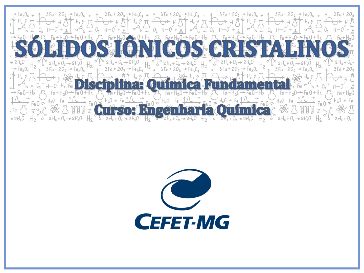 Professora: Aline de Oliveira Campus Contagem Conteúdo 14 01 SÓLIDOS IÔNICOS CRISTALINOS Cátions: íons positivos A ligação iônica ocorre quando um ou mais elétrons são transferidos de um átomo para outro, formando íons positivos e negativos. Ânions: íons negativos Na: [Ne] 3s1 Cl: [Ne] 3s2 3p5 Al: [Ne] 3s2 3p1 Doa 1e- Doa 3e- Na+ Al3+ S: [Ne] 3s2 3p4 Recebe 1e- Recebe 2e- Cl- S2- NaCl Na2S AlCl3 Al2S3 Compostos iônicos Cx+ + Ay- CyAx A ligação é a força de atração entre os íons positivos e negativos. Ligação Iônica 02 Propriedades dos compostos iônicos SÓLIDOS IÔNICOS CRISTALINOS ❑ São sólidos à temperatura ambiente; ❑ Seus átomos organizam-se de uma maneira a produzir um retículo cristalino (um cristal); ❑ São solúveis em água; ❑ São capazes de realizar o fenômeno da dissociação (liberação de íons) quando sofrem fusão, ou seja, quando passam do estado sólido para o estado líquido, ou quando estão dissolvidos em água; ❑ Apresentam elevados pontos de fusão e de ebulição; ❑ Possuem brilho; ❑ Conduzem corrente quando dissolvidos em água ou após sofrerem o processo de fusão; ❑ São duros, porém quebradiços. 03 SÓLIDOS IÔNICOS CRISTALINOS Retículo Cristalino Retículo cristalino é o arranjo simétrico de moléculas, íons ou átomos que dão forma a uma substância cristalina sólida. A forma do cristal é defina pela forma do retículo. ❑ Para um sólido cristalino, a célula unitária é a menor unidade de repetição que retém todas as características de simetria do arranjo atômico, iônico ou molecular. ❑ Para construir retículos cristalinos, a natureza utiliza sete tipos de células unitárias tridimensionais. 04 SÓLIDOS IÔNICOS CRISTALINOS Retículo Cristalino Cloreto de Sódio 05 SÓLIDOS IÔNICOS CRISTALINOS Sistemas Cristalinos 06 SÓLIDOS IÔNICOS CRISTALINOS Sistemas Cristalinos 07 SÓLIDOS IÔNICOS CRISTALINOS Sistemas Cristalinos 08 SÓLIDOS IÔNICOS CRISTALINOS Número de Coordenação (NC) O Número de Coordenação (NC) é o número de vizinhos mais próximos de um átomo ou íon. Cloreto de Sódio (NaCl) O NC é igual a 6 para o NaCl, ou seja, para cada Na+ há 6Cl- rodeando o íon Na+. NC Geometria 4 Tetraédrica 6 Octaédrica 8 Cúbica O NC depende do raio dos íons. 09 SÓLIDOS IÔNICOS CRISTALINOS Energia de Rede ou Reticular ou de Retículo A energia de rede é definida como a energia de formação de um mol de um composto iônico cristalino sólido quando íons na fase gasosa combinam-se. ❑ A energia de rede para um composto iônico resulta da atração entre os cátions e os ânions em um cristal. ❑ Para uma determinada disposição de íons, a energia reticular aumenta à medida que as cargas dos íons aumentam e seus raios atômicos diminuem. Erede = NAZ+Z− 4πε0r + 1 − 1 𝑛 Equação de Born-Landé A = Constante de Madelung; Z+ = Carga do cátion; Z- = Carga do ânion; N = Constante de Avogadro; r = distância entre os íons; ε0 = permissividade elétrica do vácuo; n = expoente de Born. 10 SÓLIDOS IÔNICOS CRISTALINOS Energia de Rede ou Reticular ou de Retículo ❑ A constante de Madelung é utilizada para se determinar a contribuição do potencial eletrostático na energia de ligação de cristais iônicos. Ela caracteriza o efeito eletrostático líquido de todos os íons na rede cristalina. Esta constante, depende da geometria de arranjo dos íons e considera a repulsão/atração eletrostática entre os íons na geometria. ❑ O expoente de Born, um número entre 5 e 12, é determinado experimentalmente pela medida de compressibilidade do sólido ou obtido teoricamente. Este número esta relacionado com a repulsão das nuvens eletrônicas, mesmo de átomos de cargas opostas e considera o limite de aproximação dos átomos. 11 SÓLIDOS IÔNICOS CRISTALINOS Energia de Rede ou Reticular ou de Retículo Composto Erede / (kJ mol-1) Composto Erede / (kJ mol-1) LiF -1.037 MgCl2 -2.326 LiCl -852 SrCl2 -2.127 LiBr -815 LiI -761 MgO -3.795 NaF -926 CaO -3.414 NaCl -786 SrO -3.217 NaBr -752 NaI -702 KF -821 KCl -717 KBr -689 KI -649 Quadro. Energia de Rede de alguns compostos iônicos 12 SÓLIDOS IÔNICOS CRISTALINOS Ciclo de Born-Haber Energias de rede não podem ser determinadas diretamente por meio de experimentos. Elas podem, no entanto, ser calculadas ao prever a formação de um composto iônico em uma série de etapas bem definidas. O ciclo de Born-Haber consiste na série de etapas montadas em ciclo que permite o cálculo da energia de rede de um composto. 13 SÓLIDOS IÔNICOS CRISTALINOS Erede Erede -411 kJ mol-1 = +108 kJ mol-1 + 122 kJ mol-1 + 496 kJ mol-1 – 349 kJ mol-1 + Erede Erede= -788 kJ mol-1 Ciclo de Born-Haber do NaCl 14 SÓLIDOS IÔNICOS CRISTALINOS Ciclo de Born-Haber do LiF 15 SÓLIDOS IÔNICOS CRISTALINOS 16 SÓLIDOS IÔNICOS CRISTALINOS 17 SÓLIDOS IÔNICOS CRISTALINOS NaCl(s) → Na+(aq) + Cl-(aq) Slide 1 Slide 2 Slide 3 Slide 4 Slide 5 Slide 6 Slide 7 Slide 8 Slide 9 Slide 10 Slide 11 Slide 12 Slide 13 Slide 14 Slide 15 Slide 16 Slide 17 Slide 18