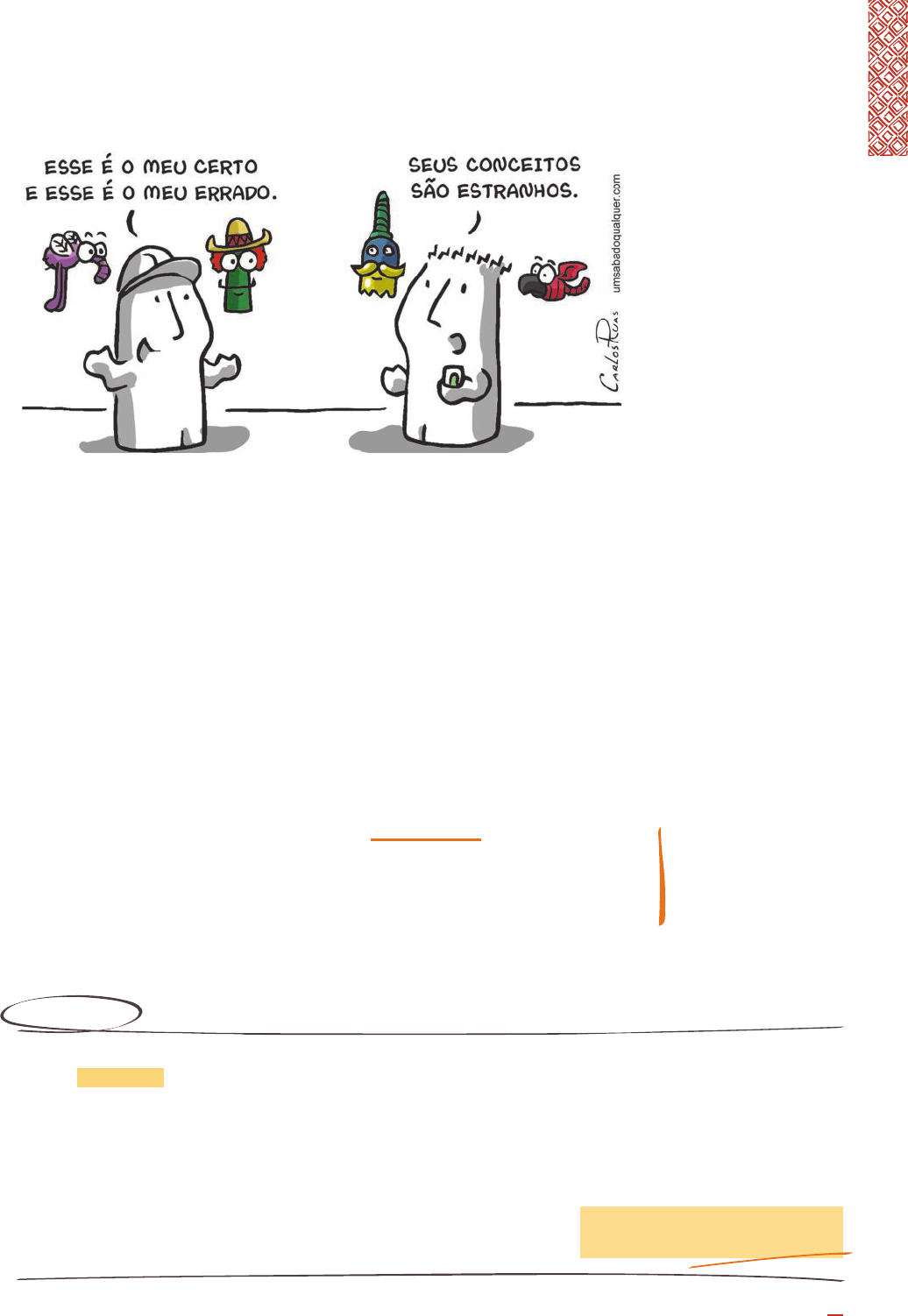 Relativismo cultural O professor de Sociologia é indicado, prioritariamente, para o trabalho deste segmento. A charge de Carlos Ruas publicada em 2018 busca evidenciar como valores morais podem variar entre indivíduos. Definições como “certo” e “errado” geralmente baseiam-se em princípios, valores e costumes; portanto, variam entre culturas, sociedades e até mesmo épocas. etnocentrismo: visão de mundo característica de quem considera sua nacionalidade ou grupo étnico socialmente mais importante que outros. As diferentes visões de mundo que cada época, cada sociedade ou cada indiví- duo tem não dizem respeito apenas à posição relativa da Terra ou do Sol, podendo ser extrapoladas também para a relatividade de tudo o que existe no mundo que conhecemos. A diversidade de visões de mundo diz respeito, por exemplo, às diferentes ma- neiras como os indivíduos se relacionam uns com os outros. Você provavelmente já ouviu frases como estas: “Você se acha o centro do mundo?” ou “Você acha que o mundo gira ao seu redor?”. Em outras palavras, nem tudo pode ser como você quer ou imagina, há outros modos de pensar que vão além do seu modo de entender. No final do século XIX, teorias evolutivas conhecidas como evolucionismo so- cial e darwinismo social ganharam muito destaque. Esses estudos hierarquizavam as culturas, designando-lhes diferentes graus de “atraso” e “desenvolvimento”. Em con- traponto, o antropólogo alemão Franz Boas (1858-1942) elaborou uma crítica a essas ideias, consolidando as bases do relativismo cultural, que, partindo de uma perspec- tiva da Antropologia, incentivava a superação do etnocentrismo. O autor buscou es- timular o olhar sem julgamentos sobre outras culturas, uma vez que, a partir de nossa própria visão e experiência, tendemos a depreciar outros costumes. Boas, além de desenvolver seus estudos e considerações de acordo com a dinâmica social da cultura observada, propôs que os indivíduos mudassem seus pontos de vista, suas perspec- tivas, para compreender, sem desqualificar, a diversidade cultural dos seres humanos. Eurocentrismo Segundo Samir Amin, o eurocentrismo é a forma ideológi- ca da expansão capitalista ocidental. Essa ideologia recons- trói miticamente a narrativa das origens do sistema capita- lista europeu, a fim de reproduzir uma história hegemônica dos grandes vencedores. Pode-se dizer que o eurocentrismo é a forma de propagar a visão europeia sobre o mundo – o que inclui as considera- ções do europeu a respeito do Outro. Essa visão transforma em exótico tudo o que é externo à Europa, de modo a im- por normas e costumes sociais europeus como “ideais de civilização” a serem alcançados. Portanto, a definição do que é exótico coincide com a formação da ideologia eurocêntrica, consolidada a partir da “descoberta” da América. Desse modo, a discrepância norte-sul é sugerida como natural, evidente e permanente. Conceito C a rl o s R u a s /A c e rv o d o c a rt u n is ta AMIN, Samir. Eurocentrism. Nova York: Monthly Review Press, 2009. 21 V2_Cie_HUM_Igor_g21Sc_Cap1_016-039.indd 21V2_Cie_HUM_Igor_g21Sc_Cap1_016-039.indd 21 10/09/2020 11:1910/09/2020 11:19 No texto abaixo, o antropólogo Claude Lévi- -Strauss (1908-2009) discorre sobre a teoria física da relatividade e o relativismo cultural. Para o observador de microscópio, que “se coloca” a uma distância medida a partir do obje- to, os corpos colocados aquém ou além daquele, mesmo que o afastamento seja apenas de alguns centésimos de milímetro, aparecem confusos e baralhados ou mesmo não aparecem. Uma outra comparação permitirá descobrir a mesma ilusão. É a que se utiliza para explicar os primeiros ru- dimentos da teoria da relatividade. Com o fim de demonstrar que a dimensão e a velocidade do deslocamento dos corpos não são valores absolu- tos, mas funções da posição do observador, lem- bramos que, para um viajante sentado à janela do trem, a velocidade e o comprimento dos ou- tros trens variam conforme estes se deslocam no mesmo sentido ou em sentido inverso. Ora, cada membro de uma cultura é-lhe tão estreitamente solidário quanto o é este viajante ideal para com o seu trem. Porque, desde o nosso nascimento, o ambiente que nos cerca faz penetrar em nós, mediante milhares de diligências conscientes e inconscientes, um sistema complexo de referên- cias que consiste em juízos de valor, motivações, centros de interesse, inclusive a visão reflexiva que a educação nos impõe do devir histórico da nossa civilização sem a qual esta se tornaria im- pensável, ou apareceria em contradição com as condutas reais. Deslocamo-nos literalmente com este sistema de referências, e as realidades cul- turais de fora só são observáveis, através das de- formações por ele impostas, quando ele não nos coloca mesmo na impossibilidade de aperceber delas o que quer que seja. LÉVI-STRAUSS, Claude. Raça e Hist—ria. Barcarena: Presença, 2006. p. 11. (Universidade Hoje, v. 14). 1. Reflita com os colegas sobre o modo como o etnocentrismo se manifesta em suas experiên- cias cotidianas. 2. Nos casos debatidos, de que maneira você po- deria exercer o relativismo cultural? Reflexões NÃO ESCREVA NO LIVRO Professor, no Manual você encontra orientações sobre estas atividades. 1. Desde meados da década de 1970, discute-se sobre motivos do predomínio masculino em certas áreas de trabalho, como a ciência e a po- lítica. Filósofas como Sandra Harding e Donna Haraway explicam que esses campos tendem a negligenciar as experiências de vida das mulhe- res em seus feitos científicos. Em 2018, uma pesquisa realizada pelo grupo EconomistAs – Brazilian Women in Eco- nomics verificou que, entre estudantes que concluíram a graduação em 2017, apenas 35,6% eram mulheres. Outro dado, segundo o Cadastro Geral de Empregados e Desem- pregados (Caged) de 2016, revelou que, entre os “profissiona