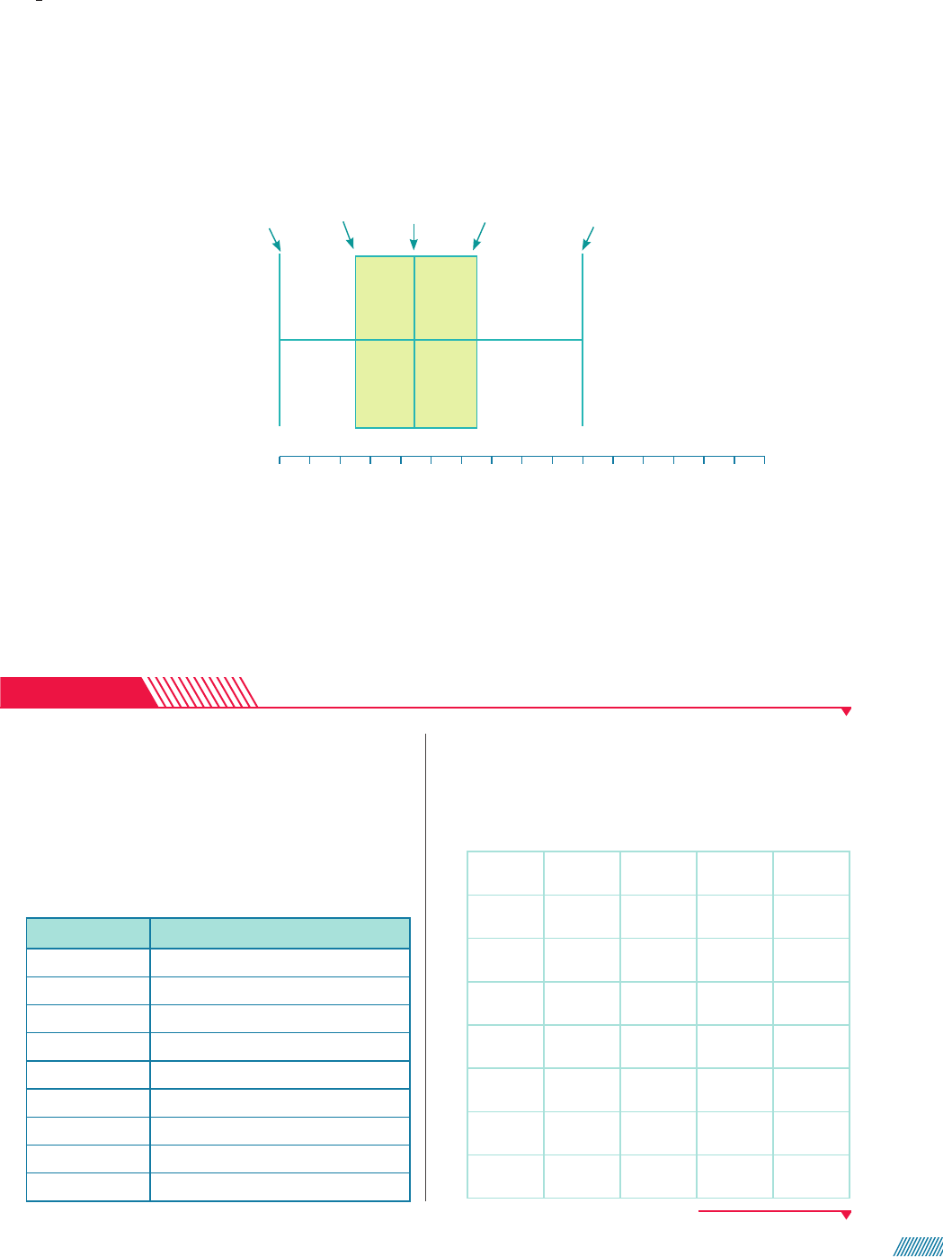 4o) Construímos uma reta horizontal (ou vertical) que contenha toda a amplitude dos dados. Depois, representamos uma “caixa” retangular cujo comprimento é dado por Q 3 2 Q 1 e, em seguida, traçamos um segmento no interior dela para representar Q 2 . Por fim, traçamos um segmento de reta com extremidades em Q 1 e no limite inferior e um seg- mento de reta com extremidades em Q 3 e no limite superior. E usamos um asterisco para representar o outlier. Veja: Idades de um grupo de pessoas Limite inferior 5 10 Limite superior 5 30Q 1 5 15 Q 2 5 19 Q 3 5 23 10 12 14 16 18 20 22 24 26 28 30 32 34 36 38 40 42 Gráfico elaborado para fins didáticos. Por meio do diagrama, é possível observar que o intervalo entre o limite inferior e Q 1 tem amplitude igual a 5 (pois 15 2 10 5 5). De modo análogo, os intervalos entre Q 1 e Q 2 , Q 2 e Q 3 e Q 3 e o limite superior têm amplitudes, respectivamente, iguais a 4, 4 e 7. Assim, podemos dizer que no intervalo entre Q 3 e o limite superior, por exemplo, os dados estão mais concentrados do que nos demais intervalos. Atividades Não escreva no livro. 67. Todo mês, quando uma mulher em fase reprodutiva não engravida, ocorre uma queda na produção de progesterona e estrogênio (hormônios sexuais) promo- vendo a degeneração e a eliminação parcial do revesti- mento uterino (fluxo menstrual). Uma garota analisou por nove meses seguidos o ciclo menstrual dela e anotou o primeiro dia da menstruação em cada mês, conforme apresentado no quadro abaixo. Mês Dia da menstruação Janeiro 14 Fevereiro 11 Março 13 Abril 8 Maio 11 Junho 12 Julho 11 Agosto 11 Setembro 9 Com esses dados, monte no caderno um diagrama de caixa. 68. Uma operadora de telemarketing registrou, num de- terminado dia, o número de ligações de 40 de seus funcionários e obteve os seguintes números: 108 126 134 145 99 45 122 110 103 116 100 149 151 134 145 101 128 133 105 149 155 107 134 126 150 144 141 133 114 129 132 129 111 147 135 152 120 126 130 140 O diagrama encontra-se nas Orientações específicas deste Manual. Outlier * W Y M D e s in g /A rq u iv o d a e d it o ra 61 059a085_V6_MATEMATICA_Dante_g21At_Cap1_LA.indd 61059a085_V6_MATEMATICA_Dante_g21At_Cap1_LA.indd 61 18/09/2020 10:3918/09/2020 10:39 Faça, no caderno, um diagrama de ramos e folhas e um diagrama de caixa. Depois, responda: Em qual dos gráficos é mais fácil identificar: a) a mediana? b) o número de ligações que mais se repetiu entre seus funcionários? c) valor tal que 75% dos dados ordenados estão abaixo dele e 25% acima? d) quantos funcionários receberam entre 120 e 130 ligações? 69. Miguel fez uma pesquisa escolar com algumas pessoas do bairro onde mora e decidiu usar um diagrama para representar os dados obtidos para a variável “idade”. No entanto, ele não sabia qual escolher e fez um dia- grama de ramos e folhas e outro de caixas. Idade dos entrevistados 1 2 3 5 8 9 2 1 3 3 3 4 6 8 9 3 1 2 2 3 5 6 6 7 7 7 9 4 0 0 1 1 1 2 3 6 6 6 7 7 Legenda: 3 | 1 significa 31 anos Gráfico elaborado para fins didáticos. Idade dos entrevistados 5 10 15 20 25 30 35 40 45 50 55 Gráfico elaborado para fins didáticos. a) Quantas pessoas foram entrevistadas? Quantas ti- nham 46 anos? b) Sabendo que Miguel precisa de um diagrama que permita visualizar de modo prático o número de pessoas entrevistadas e que ele entrevistou mais de uma pessoa com a mesma idade, qual diagrama ele deve escolher? 70. De acordo com a Pesquisa Nacional por Amostra de Domicílios Contínua (PNAD Contínua) realizada em 2018, as mulheres ganham menos em todas as ocupa- ções no Brasil. Elas ganham, em média, 20,5% menos do que os homens no país. O infográfico a seguir apresenta o rendimento médio, em reais, de todos os trabalhos recebidos por mês de homens e mulheres nos estados brasileiros. RO ♂ 2.262 ♀ 1.787 AC ♂ 1.989 ♀ 1.765 PA ♂ 1.675 ♀ 1.538 Brasil ♂ 2.578 ♀ 2.032 AP ♂ 2.004 ♀ 1.863 MA ♂ 1.395 ♀ 1.300 PI ♂ 1.412 ♀ 1.249 CE ♂ 1.766 ♀ 1.528 RN ♂ 2.028 ♀ 1.724 PB ♂ 1.708 ♀ 1.556 PE ♂ 1.805 ♀ 1.585 AL ♂ 1.528 ♀ 1.462 TO ♂ 1.948 ♀ 1.395MT ♂ 2.587 ♀ 1.889 MS ♂ 2.660 ♀ 1.912 DF ♂ 4.567 ♀ 3.512 RR ♂ 2.266 ♀ 2.119 AM ♂ 1.763 ♀ 1.674 SE ♂ 1.668 ♀ 1.471 BA ♂ 1.767 ♀ 1.368 ES ♂ 2.470 ♀ 1.828 MG ♂ 2.306 ♀ 1.660 RJ ♂ 3.145 ♀ 2.408 GO ♂ 2.348 ♀ 1.870 SP ♂ 3.319 ♀ 2.545 RS ♂ 2.951 ♀ 2.156 SC ♂ 2.897 ♀ 2.134 RS ♂ 2.951 ♀ 2.156 Fonte de consulta: IBGE. Pesquisa Nacional por Amostra de Domicílios Contínua Trimestral (PNAD Contínua), 4o trimestre de 2019. Disponível em: https://sidra.ibge.gov.br/tabela/5429. Acesso em: 1o ago. 2020. a) De acordo com o infográfico, em quais estados a di- ferença do rendimento médio é maior? E em quais é menor? Cite ao menos dois estados em cada caso. b) Use os dados apresentados no infográfico para fazer, no caderno, um diagrama de caixa para re- presentar o rendimento médio dos homens e outro para representar o rendimento das mulheres. c) De acordo com os diagramas de caixa que você fez, responda: Qual é mediana do rendimento médio dos homens? E das mulheres? Há valores atípicos nesses conjuntos de dados? Se sim, quais? d) No diagrama que apresenta o rendimento médio das mulheres, os valores estão mais concentrados em qual intervalo? E no que mostra o rendimento médio dos homens? e) Investigue se há disparidade de remuneração entre homens e mulheres na sua família ou na comunida- de onde vive. Depois, compartilhe com os colegas, do modo que preferir, as informações que obteve. f) Pesquise a respeito da importância da equiparação salarial entre homens e mulheres. Depois escreva, no caderno, um texto argumentando por que é im- portante essa equiparação. Os diagramas encontram- -se nas Orientações específicas deste Manual. Diagrama de caixa. Diagrama de ramos e folhas. Diagrama de caixa. Diagrama de ramos e folhas. 36 pessoas. 3 pessoas. Diagrama de ramos e