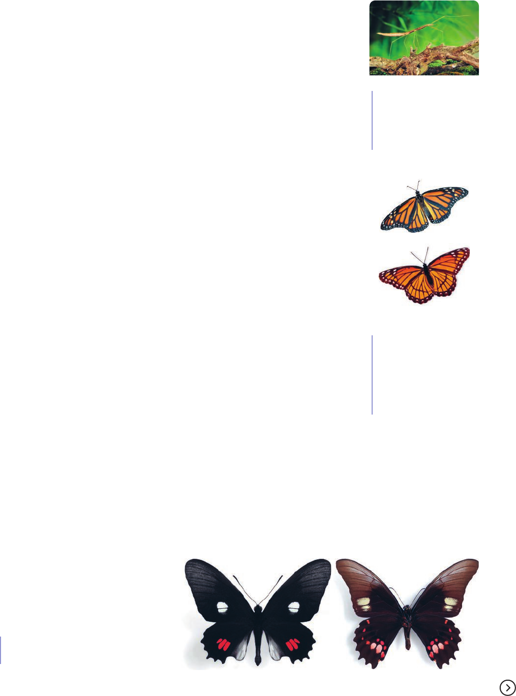 Mimetismo O mimetismo é outro fenômeno relacionado à interação entre seres vivos e que evidencia a ocorrência da seleção natural. Há vários tipos de mimetismo. Uma das formas mais conhecidas refere-se a situa- ções de camuflagem, em que alguns organismos apresentam características similares às de seu meio. É o caso, por exemplo, dos bichos-pau (grupo de insetos que parecem um graveto) ou dos insetos-folha (grupo de insetos que parecem uma folha), que têm características morfológicas semelhantes às das plantas em que vivem. Dessa forma, eles se camuflam no ambiente e seus predadores apresentam dificuldades para iden- tificá-los (figura 1.22). Além desse tipo de camuflagem visual, há estudos que evidenciam como orga- nismos podem se mimetizar “quimicamente”, como a rã Lithodytes lineatus, que vive na Amazônia. Essas rãs utilizam os ninhos das formigas saúvas do gênero Atta para se abrigar e se reproduzir. Nenhuma outra espécie de anfíbio ou vertebrado consegue sobreviver nesses ninhos. Experimentos envolvendo o uso de extrato da pele de Lithodytes lineatus em ou- tra espécie de rã evidenciaram que as substâncias produzidas pela Lithodytes fazem com que as formigas não ataquem a outra espécie. Acredita-se que essas substân- cias são similares às que as formigas utilizam para se reconhecer quimicamente. Essa característica dessa espécie leva a uma diminuição de ataques de predadores aos adultos, aumentando a sobrevivência dos indivíduos e garantindo a eles um lugar protegido para que depositem os ovos, de forma a intensificar seu sucesso reprodutivo. Outros organismos apresentam mecanismos semelhantes, como bac- térias que vivem no intestino humano. Em outro tipo de mimetismo, as espécies evoluem e tornam-se semelhantes a ou- tras que apresentam algum tipo de defesa – em geral, contra predação. Por exem- plo, a borboleta monarca (Danaus plexippus) alimenta-se de compostos tóxicos, aos quais é resistente, e os retêm em seus tecidos. Predadores que ingerem essa borbo- leta apresentam enjoo e, por isso, acabam por evitá-la. A borboleta vice-rei (Lime- nitis archippus) não é tóxica, porém, é bastante parecida com a borboleta monarca, como mostra a figura 1.23. Assim, a pressão seletiva favorece a sobrevivência de indivíduos da população de vice-rei mesmo que essa espécie não seja tóxica como a monarca, já que os predadores não diferenciam visualmente as duas espécies e, consequentemente, não atacam indivíduos da população de vice-rei. Mas as situações de mimetismo podem ser complexas do ponto de vista evolutivo e surpreender. Em 2016, pesquisadores da Universidade Estadual de Campinas (Unicamp-SP) e da Universidade de Brasília (UnB-DF) publicaram um estudo com duas espécies de borboleta: Heraclides anchisiades capys e Pa- rides anchises nephalion. A primeira não apresenta toxicidade para os predadores e é muito rápida, enquanto a segunda é lenta e muito venenosa. Apesar dessas diferenças, as duas espécies têm um padrão de coloração muito parecido. À primeira vista, seria de se esperar que a borboleta não venenosa tivesse sofrido pressão seletiva e desenvol- vido coloração semelhante à da borboleta venenosa (figura 1.24) e que essa estratégia de defesa a protegeria contra predadores. Isso significa que o último ancestral comum da borboleta não tóxica teria mimetizado a borboleta tóxica e que essa vantagem adaptativa teria permitido que ela se espalhasse nas Américas. Porém, dados do estudo indicaram o contrário, isto é, que a borboleta venenosa imitou a borboleta não tóxica e rápi- da, minimizando assim as chances de predação, já que aves atacavam menos frequentemente a borboleta de voo rápido, pois tinham menos chance de capturá-la. # Figura 1.22 – O bicho-pau (ordem Phasmatodea; espécies variam de 3 a 30 centímetros de comprimento) assemelha- se a um graveto e, assim, consegue camuflar-se. # Figura 1.23 – (a) Borboleta vice-rei (Limenitis archippus; cerca de 7,5 centímetros de envergadura); (b) Borboleta monarca (Danaus plexippus; cerca de 10 centímetros de envergadura). # Figura 1.24 – Borboletas Parides anchises (à esquerda) e Heraclides anchisiades (à direita), ambas com cerca de 9 centímetros de envergadura. (a) (b) d v a n d e /S h u tt e rs to ck L e e n a R o b in s o n /S h u tt e rs to ck F o to s : a ls lu ts k y /S h u tt e rs to ck(a) (b) 29Fundamentos dos processos evolutivos 010a040_V2_CIE_NAT_Mortimer_g21Sc_U1_Cap1_LA.indd 29010a040_V2_CIE_NAT_Mortimer_g21Sc_U1_Cap1_LA.indd 29 21/09/2020 18:5921/09/2020 18:59 ARTICULAÇÃO DE IDEIAS 1. Leia o texto a seguir e responda às perguntas. Parecidos, mas diferentes Na maior parte dos rios na América do Sul é comum encontrar grupos de pequenos cascudos – co- nhecidos entre os aquaristas como “limpa fundo” – que, à primeira vista, parecem iguais. Mas, apesar de muito parecidos, não pertencem à mesma espécie, segundo estudo publicado na edição desta quin- ta-feira (6/1) da revista Nature [...]. A pesquisa, feita por cientistas do Brasil e do Reino Unido, revelou que comunidades de cascudos, ainda que possuam exemplares com padrões e cores praticamente idênticas, podem conter três ou mais espécies diferentes. O estudo observou que as espécies adotam o chamado mimetismo mülleriano, no qual os exem- plares são tanto modelos como mímicos, adotando padrões e cores semelhantes para o benefício de todos, como na defesa contra predadores. A convivência entre as espécies é notável. “Embora aparentemente idênticos em termos de padrão de cores, nossa análise aprofundada das relações genéticas, da dieta, da forma corporal e de outros padrões revelou que 92% das comunidades analisadas continham espécies que não competiam entre elas por alimentos”, disse Markos Alexandrou, da Universidade Bangor, no Reino Unido, um dos autores do estudo. Apesar de evoluírem para uma aparência similar,