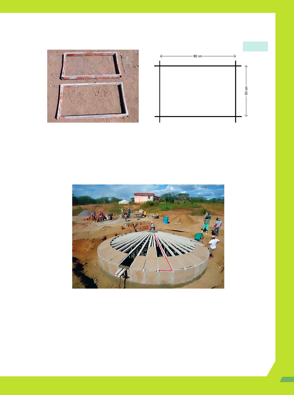 Não escreva no livro. 4. As placas de concreto utilizadas para construir a parte cilíndrica de uma cisterna costumam ser confeccio- nadas em um molde de madeira, como o mostrado na imagem abaixo. Essas placas formam a superfície lateral. Molde de madeira das placas de concreto. Admitindo que as placas de concreto têm as medidas de comprimento indicadas na imagem, a base do cilindro do reservatório tem 7 m de medida de comprimento do diâmetro e a altura da parte cilíndrica tem medida de comprimento de 1,8 m, determine quantas placas, aproximadamente, são necessárias para construir essa cisterna e confirme que o volume dela mede aproximadamente 70 mil litros. 5. A tampa da cisterna tem formato parecido com a superfície lateral de uma pirâmide. Para cobri-la, são necessárias placas triangulares, conforme mostra a imagem a seguir. 60 cm 3,7 m Instalação da tampa de uma cisterna no nordeste brasileiro. Foto de 2018. Supondo que essas placas têm exatamente o formato e as medidas de comprimento indicadas na imagem, responda: Quantas dessas placas triangulares são necessárias para cobrir a cisterna? Qual é a medida de comprimento aproximada da altura da tampa dessa cisterna? 6. A escola em que você estuda faz reúso de água? Há algum espaço coberto em que seja possível canalizar a água das chuvas para uma cisterna? Avalie em conjunto com a direção da escola se é viável a construção de uma estrutura desse tipo para um melhor uso de água na escola. 7. Em grupo, pesquisem se há pessoas na comunidade em que vocês vivem que tenham interesse em cons- truir uma cisterna na residência ou no comércio delas. Caso haja, auxilie-as na modelagem do problema e no levantamento de custos e material de construção. C la u d io N o g u e ir a d a S ilv a /A c e rv o d o p e s q u is a d o r 37 placas triangulares. Aproximadamente 1,2 m. Resposta de acordo com a pesquisa realizada pelos estudantes. 6. Respostas pessoais. Professor, a construção de uma cisterna mobilizará toda a escola. Caso o projeto não se aplique à realidade da comunidade escolar, promova discussões a respeito do uso consciente de água tanto na escola quanto nas residências dos estudantes. 4. Aproximadamente, 74 placas. Resposta esperada: A medida de volume da cisterna é de aproximadamente 70 mil litros. J o ã o B o s c o C a v a lc a n te A ra ú jo /A c e rv o d o p e s q u is a d o r R e p ro d u ç ã o /A rq u iv o d a e d it o ra As imagens não estão representadas em propor•ão 121 103a126_V3_MATEMATICA_Dante_g21At_Cap2_LA.indd 121103a126_V3_MATEMATICA_Dante_g21At_Cap2_LA.indd 121 07/09/2020 12:3907/09/2020 12:39 A produção artesanal de carvão vegetal em Queimadas (PB) Localização do município de Queimadas (PB) OCEANO ATLÂNTICO CE RN PB PE 38° O 8° S Queimadas 0 40 km IBGE. Atlas geogr‡fico escolar. 8. ed. Rio de Janeiro: IBGE, 2018. p. 166. O Sítio Zumbi é uma comunidade localizada no município de Queimadas no agreste paraibano. A comu- nidade recebe esse nome em homenagem a um dos primeiros habitantes da localidade, conhecido como Zumbi. Este não é o Zumbi associado ao quilombo dos Palmares, o qual foi símbolo da luta dos afro-brasileiros contra a opressão escravagista. Fique atento A renda da comunidade origina-se especialmente das atividades ligadas à agricultura familiar e à criação de gado. Faz parte da cultura local cozinhar usando a chapa, um tipo de fogão onde é possível cozinhar à lenha, ou a boca de carvão. O carvão vegetal usado na boca de carvão é produzido na própria comunidade. A produção do carvão vegetal é feita na tradicional carvoeira, um tipo de trincheira cavada no chão onde a madeira é colocada e depois coberta com folhagem e terra. Geralmente duas ou três famílias se reúnem para cortar a lenha e construir a carvoeira. Para as famílias que usam o fogão a lenha apenas para cozer alimentos, uma carvoeira em que caiba um “metro de madeira” de lenha (a quantidade de madeira suficiente para encher uma carvoeira padrão) é sufi- ciente para abastecer 2 famílias por cerca de 1 ano. O buraco para a carvoeira padrão lembra o formato de um paralelepípedo retângulo e tem as seguintes medidas: 1,10 metro de largura, 4 metros de comprimento e 1 palmo e meio de profundidade (algo em torno de 30 centímetros). A largura tem 1,10 metro, pois a lenha é cortada em toras de 1 m de medida de comprimento e ela não pode ter contato com as laterais do buraco, logo, a largura da carvoeira deve ser um pouco maior do que o comprimento de cada tora de lenha. A profundidade da carvoeira é fixa, pois o solo é muito rígido para fazer um buraco maior, isto é, com medida de profundidade maior do que 1 palmo e meio. Para a produção do carvão vegetal, a comunidade usa a madeira de angico ou catingueira e, nas comuni- dades que produzem carvão em Queimadas, a cada árvore derrubada para a produção de carvão vegetal é plantada uma muda da mesma espécie, a qual, após dois anos, já é possível usar para produzir mais carvão vegetal. B a n c o d e i m a g e n s /A rq u iv o d a e d it o ra 122 103a126_V3_MATEMATICA_Dante_g21At_Cap2_LA.indd 122103a126_V3_MATEMATICA_Dante_g21At_Cap2_LA.indd 122 07/09/2020 12:3907/09/2020 12:39
