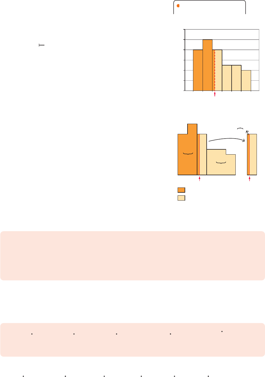143 • Mediana Por definição, a mediana é o valor que deixa 50% dos valores acima e abaixo dela. Porém, quando os dados estão agrupados, um método para obter uma aproximação da mediana é, num primeiro momento, analisar a frequência relativa para identificar em que classe ela se en- contra. No exemplo, a mediana desses dados é um valor pertencente ao intervalo 193 207, pois, até 193, temos 45% do consumo de energia e até 207, temos 65%. Sendo assim, o valor que supera 50% dos dados ordenados deve estar entre 193 e 207. Em seguida, admitimos que a variável se distribua uniformemente nesse intervalo, o que significa considerar a proporcionalidade entre as medidas das bases e das áreas dos retângulos do histograma de frequências relativas (expressas como porcentagem da área total sobre o histograma), conforme destacado no retângulo à direita na imagem ao lado. Entre o retângulo “inteiro” (definido pela classe) e o retângulo me- nor ( definido por M d ) destacados mais à direita, de mesma altura, temos a seguinte proporção: σ 2 5 8 ?? ( 2 28,35 ) 2 1 10 ?? ( 2 14,35 ) 2 1 8 ?? ( 2 0,35 ) 2 1 5 ?? ( 13,65 ) 2 1 5 ?? ( 27,65 ) 2 1 4 ?? ( 41,65 ) 2 ―――――――――― 40 . 504,58 σ 2 5 f 1 ?? ( m 1 2 _ x ) 2 1 f 2 ?? ( m 2 2 _ x ) 2 1 f 3 ?? ( m 3 2 _ x ) 2 1 … 1 f n ?? ( m n 2 _ x ) 2 ―――――――― f 1 1 f 2 1 f 3 1 … 1 f n 5 ∑ i51 n f i ?? ( m i 2 _ x ) 2 ―― ∑ i51 n f i Assim, o cálculo da variância para o exemplo é dado por: • Variância No caso de dados agrupados, a variância é obtida calculando-se o quociente da soma dos produtos obtidos das frequências de cada classe com o quadrado dos desvios dessas classes pela soma das frequências, isto é: De modo geral, para obter o valor aproximado da mediana ( M d ) de dados agrupados, usa- mos a seguinte proporção: ⏞ 207 2 193 ―― M d 2 193 5 ⏞ 20 ― 5 ⏟ ä 14 ―― M d 2 193 5 4 ä medida da base do retângulo “inteiro” área do retângulo “inteiro” medida da base do retângulo menor área do retângulo menor Em que: • L i : extremo inferior da classe que contém a mediana; • L s : extremo superior da classe que contém a mediana; • f m d : frequência relativa da classe que contém a mediana; • f ant : frequência relativa acumulada até a classe anterior à da mediana. L s 2 L i ―― M d 2 L i 5 f m d ―― 50 2 f ant Consumo de energia em prédio residencial - 2021 Elaborado pelo autor com dados fictícios 165 179 193 207 M d 221 235 249 Consumo (kWh) Frequência relativa (%) 20% 20% 12,5%12,5% 10% 0 10 5 25 15 20 30 25% 193 207 M d 193 207 M d 5% quanto “falta” para 50% 50% dos valores abaixo de M d 50% dos valores acima de M d 20% + 25% 45% 12,5% + 12,5% + 10% 35% ä M d 2 193 5 14 ― 4 ä M d 5 393 ― 2 5 196,5 é 196,5 kWh Il u st ra çõ e s: S e rg io L . F il h o g21_scp_lt_5mat_c3_p134a145.indd 143g21_scp_lt_5mat_c3_p134a145.indd 143 9/15/20 6:46 PM9/15/20 6:46 PM Não escreva no livro. 144 55. (UFPR) Os dados, a seguir, representam o tem po (em segundos) para carga de um determi nado aplicativo, num sistema compartilhado. Com base nesses dados, considere as afirmativas a seguir: 1. O tempo médio para carga do aplicativo é 7,0 se gundos. 2. A variância da distribuição é aproximadamente 1,33 segundo ao quadrado. 3. O desvio padrão é a raiz quadrada da variância. 4. Cinquenta por cento dos dados observados es- tão abaixo de 6,5 segundos. A alternativa correta é: a ) somente as afirmativas 2 e 3 são verdadeiras b ) somente as afirmativas 1 e 3 são verdadeiras c ) somente as afirmativas 2 e 4 são verdadeiras d ) somente as afirmativas 1, 2 e 3 são verdadeiras e ) somente as afirmativas 1, 3 e 4 são verdadeiras Tempo (s) no de observações 4,5 5,5 3 5,5 6,5 6 6,5 7,5 13 7,5 8,5 5 8,5 9,5 2 9,5 10,5 1 Total 30 52. O quadro apresenta os dados referentes a uma pesquisa sobre a faixa salarial dos leitores de uma biblioteca e a quantidade de livros emprestados por mês. O salário médio desses leitores é aproximada- mente: a ) R$ 1 426,46 b ) R$ 1 435,73 Faixa salarial (R$$) Quantidade de leitores 1 045 1 145 58 1 145 1 245 77 1 245 1 345 120 1 345 1 445 128 1 445 1 545 195 1 545 1 645 258 53. Para aferir uma máquina empacotadora de arroz, foram amostrados alguns pacotes e suas massas registradas, conforme exposto no quadro a seguir. a ) Quantos pacotes de arroz foram amostra- dos? b ) Calculem a média aritmética, a moda e a mediana da massa dos pacotes amostrados. c ) Determinem o desvio médio, a variância e o desvio padrão dos pacotes amostrados. aferir: examinar a exatidão dos instrumentos que servem para pesar, medir etc Massa (kg) Quantidade de pacotes 4,970 4,980 4 4,980 4,990 10 4,990 5,000 38 5,000 5,010 44 5,010 5,020 18 5,020 5,030 6 54. Construa um histograma representando os dados agrupados da temperatura de uma ci- dade e suas frequências. Depois, peça a um colega que calcule, em relação aos seguintes dados: a ) as medidas de tendência central: _ x , Mo e M d . b ) as medidas de dispersão: D m , σ 2 e σ . Em seguida, verifiquem se as resoluções estão cor retas. • Desvio padrão No caso de dados agrupados, assim como em dados não agrupados, o desvio padrão é a raiz quadrada da variância: σ 5 √ ― 504,58 . 22,46 Ž 22,46 kWh . c ) R$ 1 428,19 d ) R$ 1 434,85 e ) R$ 1 440,15 120 pacotes _ x 5 5,002 kg ; Mo 5 5,005 kg ; Md 5 5,002 kg D m . 0,009 kg ; σ 2 . 0,000119 ; σ . 0,011 kg Resposta pessoal. d a g21_scp_lt_5mat_c3_p134a145.indd 144g21_scp_lt_5mat_c3_p134a145.indd 144 9/15/20 6:46 PM9/15/20 6:46 PM