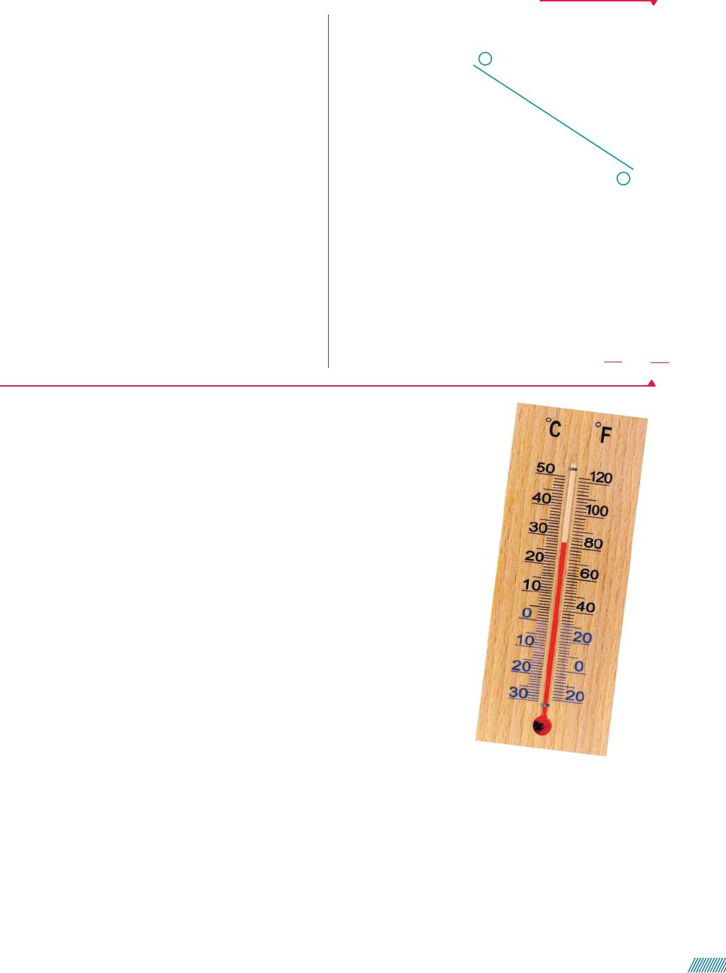 13. Nas férias de verão de 2016, Alfredo, de 40 anos, que tem 3 filhos – Pedro, de 10 anos, Aline, de 8 anos, e Paloma, de 6 anos –, prometeu aos filhos que fariam uma viagem juntos nas férias de verão do ano em que a soma das idades deles fosse igual à idade de Alfredo. Essa viagem deve ocorrer, então, nas férias de verão de: a) 2017. b) 2018. c) 2020. d) 2024. e) 2025. 14. Um professor de Matemática parte da Universidade Federal de São Carlos (Ufscar), localizada na cidade de São Carlos (SP) na rodovia Washington Luís, km 235, em direção à Universidade Estadual Paulista (Unesp), localizada na cidade de Rio Claro (SP) na mesma rodo- via, no km 174. Nesse deslocamento, o automóvel do professor desenvolve uma velocidade média de medi- da igual a 90 km/h. No mesmo instante, saindo de Rio Claro, um professor de Física se dirige a São Carlos de- senvolvendo uma velocidade média de medida igual a 93 km/h. A figura a seguir ilustra a rodovia que interliga as 2 cidades. Ufscar – km 235 Rodovia Washington Luís (SP-310) Unesp RC – km 174 Considere que as equações horárias dos automóveis sejam S 1 5 174 1 93t e S 2 5 235 2 90t, em que S 1 é a posição do veículo que sai de Rio Claro e S 2 é a posição do veículo que sai de São Carlos, ambas em função do instante t (em horas). a) Qual é a posição em que se encontra cada um dos veículos após 10 min de viagem? b) Quais são os instantes em que a medida de distân- cia que separa os 2 veículos é de 30 km? Alternativa d. km 189,5 e km 220. 31 183 h e 91 183 h. Não escreva no livro. W Y M D e s ig n /A rq u iv o d a e d it o ra Função afim e graduações do termômetro Entre as escalas termométricas de um termômetro, as mais usadas são a escala Fahrenheit, principalmente nos países de língua inglesa (como Estados Unidos e In- glaterra), e a escala Celsius, na maior parte dos demais países. Em um termômetro, a medida de comprimento da altura da coluna de líquido (atualmente, costuma ser álcool colorido) aumenta ou diminui conforme a medida de temperatura aumenta ou diminui, respectivamente. To m a s R a g in a /S h u tt e rs to ck Modelo de termômetro de álcool colorido graduado nas escalas Celsius e Farenheit. Para graduar um termômetro na escala Celsius, escolhem-se duas medidas de temperatura determina- das: a da fusão do gelo, à qual se atribui o valor zero, e a da ebulição da água (à pressão do nível do mar), à qual se atribui o valor 100. Dividindo-se o intervalo entre os dois pontos fixos (0 e 100) em 100 partes iguais, obtém-se o termômetro graduado na escala Celsius. Na escala Fahrenheit, divide-se o intervalo entre esses mesmos pontos fixos (medida de temperatura de fusão do gelo e medida de temperatura de ebulição da água) em 180 partes iguais. Atribui-se ao nível inferior o valor 32 e ao superior o valor 212; então, o zero dessa escala está 32 graus Fahrenheit abaixo da medida de temperatura de fusão do gelo. Da construção dessas escalas, passamos a saber que 0 °C 5 32 °F e 100 °C 5 212 °F. 25 008a030_V2_MATEMATICA_Dante_g21At_Cap1_LA_1.indd 25008a030_V2_MATEMATICA_Dante_g21At_Cap1_LA_1.indd 25 9/1/20 11:02 AM9/1/20 11:02 AM 2a maneira: A mudança de escala de Celsius para Fahrenheit é uma função afim F: R ñ R, de lei dada por F(x) 5 ax 1 b, que associa à medida x, em graus Celsius, à medida F(x), em graus Fahrenheit, da mesma coluna de líquido. Sabemos que F(0) 5 32 e F(100) 5 212. Como F(0) 5 b, então b 5 32. Temos também que F(100) 5 100a 1 32, ou seja, 100a 1 32 5 212 e, então, a 5 1,8. Logo, F(x) 5 1,8x 1 32. Observamos, então, que as duas maneiras mostram como relacionar a medida em Celsius de uma tem- peratura e a medida em Fahrenheit, e que a transformação de uma medida de temperatura da escala Celsius (C, ou x) para a escala Fahrenheit (F, ou F(x)) é um exemplo de função polinomial de 1o grau: F 5 1,8C 1 32 ou F(x) 5 1,8x 1 32 Dada uma medida de temperatura qualquer, em graus Fahrenheit, como ob- tê-la em graus Celsius? Há duas maneiras: 1a maneira: Podemos estabelecer entre as duas escalas a seguinte proporção (em que C é a medida de temperatura na escala Celsius e F é a medida de tem- peratura na escala Fahrenheit): 100 0 212 32 °C °F Celsius Fahrenheit C F B a n c o d e i m a g e n s /A rq u iv o d a e d it o ra C F C F C F0 100 0 32 212 32 100 32 180 5 32 9 2 2 5 2 2 ~ 5 2 ~ 5 2 ~ ~ 5F 2 160 5 9C ~ 5F 5 9C 1 160 ~ F 5 9 5 C 1 32 ~ F 5 1,8C 1 32 15. Para transformar graus Fahrenheit em graus Celsius, e vice-versa, usa-se a relação 5 2C F 5 32 9 , em que F é a medida de temperatura em graus Fahrenheit e C é a medida de temperatura em graus Celsius. a) Transforme 35 graus Celsius em graus Fahrenheit. b) Qual é a medida de temperatura (em graus Celsius) em que a medida de temperatura em graus Fahrenheit é o dobro da medida de temperatura em graus Celsius? 95 °F 160 °C Atividades Não escreva no livro. 1. Em qual temperatura as medidas na escala Celsius e na escala Fahrenheit são iguais? Resolução Essa pergunta é equivalente a esta outra: “Para qual valor de x temos F(x) 5 x?”. F(x) 5 1,8x 1 32 1,8x 1 32 5 x ~ 0,8x 5 232 ~ x 5 240 Ou seja, 240 °C 5 240 °F (40 graus Celsius negati- vos é o mesmo que 40 graus Fahrenheit negativos). 2. Um número x, quando indica uma medida de tem- peratura em °F, corresponde a quarta parte da me- dida de temperatura que indicaria em °C. Determi- ne esse número. Resolução A pergunta é equivalente a esta outra: "Para qual valor de x temos F(x) 5 1 4 x?”. F(x) 5 1,8x 1 32 1,8x 1 32 5 1 4 x ~ 1,8x 2 0,25x 5 232 ~ 1,55x 5 5 232 ~ ~ x â 220,6 Então: F(x) 5 1 4 ? (220,6) 5 25,15 Assim, 220,6 °C é equivalente a 25,15 °F. Atividades resolvidas 26 008a030_V2_MATEMATICA_Dante_g21At_Cap1_LA_1.indd 26008a030_V2_MATEMATICA_Dante_g21At_Cap1_LA_1.indd 26 9/1/20 11:02 AM9/1/20 11:02 AM