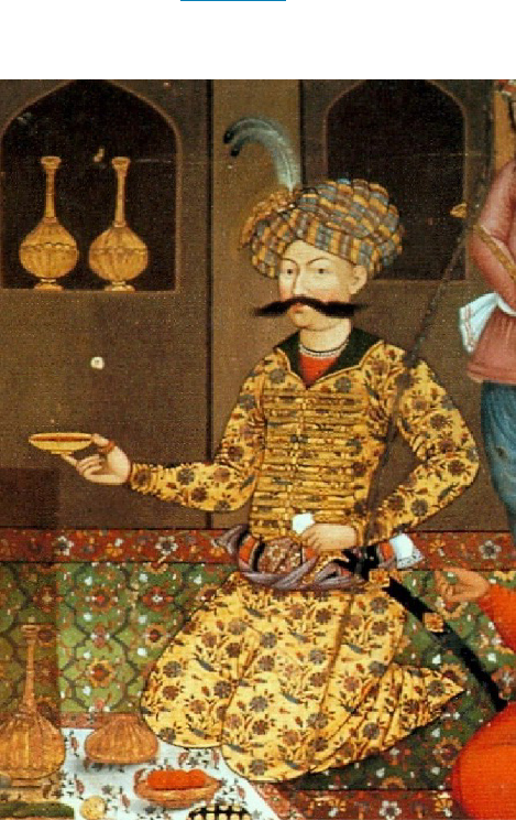 It did not last forever, however. The borders of Iran were secure at the end of Tahmasp’s reign, but his son and grandson were ineffective leaders who failed to keep the Qizilbash rivalries from once again destabilizing the country, which led to yet more incursions by Ottoman and Uzbek forces. Tahmasp’s grandson Abbas I, generally considered the strongest Safavid shah as well as one of the greatest rulers in Iranian history, found himself compelled to take up arms once again (Figure 4.21). During his reign, the Safavid state reached the height of its military, political, and economic power. Abbas I reformed the military and civil service and built a showpiece capital city, Isfahan, which remains one of the masterworks of Persian Islamic art and architecture. FIGURE 4.21 Shah Abbas I. This detail from a series of seventeenth-century paintings decorating the walls of the Chehel Sotoun Palace in Isfahan, Iran, depicts Shah Abbas I, who ruled over Iran at the height of the Safavid dynasty’s power. (credit: “Abbas I of Persia” by Unknown/“TRAJAN 117”/Wikimedia Commons, Public Domain) By the time the seventeen-year-old Abbas was crowned shah in 1588, Iran was in chaos. After waging war against the Uzbeks, Abbas realized that fighting the Ottomans with the country in upheaval would be nearly impossible. As a result, he signed a peace treaty in 1590 that gave nearly half his territory, including the former capital of Tabriz, to the Ottomans. Abbas then returned to the issue his grandfather had taken up: taming the Qizilbash, whose disputes had plunged Iran into civil conflict that twice nearly brought the country to ruin. His grandfather had acquired over thirty thousand enslaved people employed as civil servants and palace administrators; turning to the Caucasus region again, Abbas decided to also create an enslaved soldier corps like the Ottoman Janissaries. With his new army behind him, Abbas undertook to gain back the territories lost to the Uzbeks and Ottomans. The Safavid armies quickly reconquered Khorasan from the Uzbeks and moved on to Azerbaijan. The Ottomans sued for peace in 1612, relinquishing the Caucasus to the Iranians. An attempt to recapture the territory in 1618 resulted in a devastating loss for the Ottomans. Despite near-constant war, during this time Iran reached new cultural and economic heights. In 1598, Abbas 4.3 • The Safavid Empire 141 moved his capital from Qazvin to Isfahan in the central Iranian plateau, far from the constantly shifting borders with the Ottomans and Uzbeks and closer to the Persian Gulf and the newly arrived traders of the British and Dutch East India Companies. The city was built as a showpiece, with administrative buildings and public markets opening on the enormous Naqsh-e Jahan (“Exemplar of the world”) Square (Figure 4.22). FIGURE 4.22 Naqsh-e Jahan Square. The Shah Mosque, built by Abbas I, is located on the south side of Naqsh-e Jahan Square in the center of Isfahan. The square, a UNESCO World Heritage site, still serves as a gathering place today. (credit: “Naqsh-e Jahan Square” by Bijan Tehrani/Wikimedia Commons, CC BY 2.0) The city center was unique. All levels of society could mix there, from members of the royal court whose pavilion overlooked the square, to the Shi‘ite clergy whose mosque was at the square’s southern end, to foreign dignitaries, members of the military, merchants, and commoners. A soup kitchen distributed free food to the needy, and occasionally the square was cleared for polo games, public ceremonies, and festivals. To populate his new capital, Abbas ordered several different populations to settle in it, including Armenians, Jewish people, Circassians, and other Caucasian peoples, many of whom had been displaced during his war against the Ottomans in their homelands. The cathedral Abbas ordered built for the Armenian Christians still serves that community in Isfahan today. After Abbas’s death, the Safavid state met another internal threat, this time from the Georgian kingdom of Kakheti. After Abbas had ordered the mass deportation of Georgians to central Iran, he sent Oghuz Turks (Turcomen) to settle the area; the local population that remained refused to allow them to do so, however, and staged a military rebellion. Although the Safavids were eventually able to reestablish authority, they never achieved their earlier level of control. Iran also continued to face threats from outside. In the early eighteenth century under the reign of Tsar Peter the Great, Russia began to encroach on the northern shores of the Caspian Sea and to compete for influence in the Caucasus. The armies of Peter the Great took the Caucasus in the Russo-Persian war of 1722–1723, while the Ottomans reoccupied northwestern Iran. The entry of European ships to the Indian Ocean trade cut off much of Iran’s direct access to Africa and South Asia. Over the course of the 1730s, Nader Afshar, one of the Safavid vassals, established himself as a strong military ruler. He was able to reverse many of Iran’s territorial losses to the Russians and Ottomans; however, he had no interest in sharing power. In 1736, Nader deposed the infant Abbas III and crowned himself shah, bringing the Safavid Empire to an end and establishing the 142 4 • The Islamic World Access for free at openstax.org short-lived Afsharid dynasty. Establishing Shi‘ism as the State Religion The Safavids declared Shia Islam the state religion of Iran in the early 1500s, and it remains so to this day, encompassing about 10 percent of the worldwide Muslim population. The Shia movement originated with a dispute over Muhammad’s successor after his death in 632. One faction, which became known as the Sunnis, supported the candidacy of Abu Bakr al-Sadiq, Muhammad’s father-in-law. The other faction wished the leadership to remain within Muhammad’s biological family and backed Ali ibn Abi Talib, Muhammad’s cousin and son-in-law, whom they believed the P