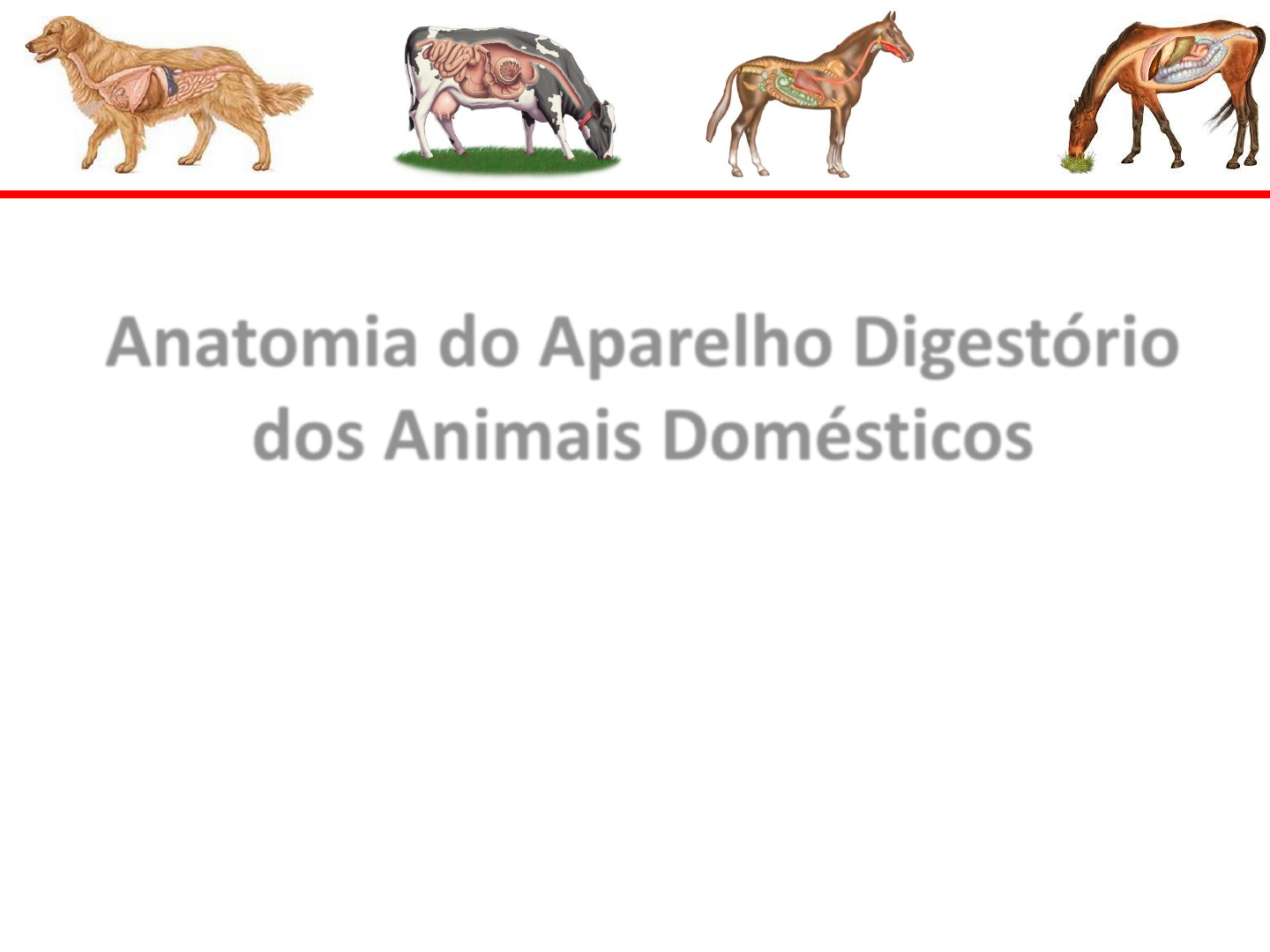 Anatomia do Aparelho Digestório dos Animais Domésticos UNIBH Aparelho Digestório Funções Componentes Aparelho Digestório Apreensão Mastigação Digestão Absorção Estocagem Eliminação dos resíduos Funções Componentes Aparelho Digestório Apreensão Mastigação Digestão Absorção Estocagem Eliminação dos resíduos Boca Faringe Esôfago Estômago Intestino delgado Intestino grosso Glândulas acessórias Funções Componentes Konig (2012) A BOCA (cavum oris) Limitada lateralmente pelas bochechas, dorsalmente pelo palato, ventralmente pela mandíbula e músculos miohióideos e caudalmente pelo palato mole. Vestíbulo da boca: espaço externo circundado pelos lábios e bochechas Vestíbulo labial e vestíbulo bucal. Cavidade da boca (oral) propriamente dita: espaço delimitado pelas arcadas dentárias. Função: apreensão, mastigação e a insalivação do alimento. Vestíbulo da boca, cavidade da boca, lábios, comissuras labiais Constituição dos lábios: pele, camada intermediária de músculo (musculatura mimética/ Nervo craniano VII), tendão, glândulas e a mucosa oral. A BOCA (cavum oris) 1. Vestíbulo; 2 Dente; 2´Filtro; 3 Palato duro; 4 Palato Mole; 5 Língua; 6 Carúncula Sublingual; 7 Arco palatoglosso; 8 Tonsila Palatina; 9 Frênulo Dyce (2010) Equinos: coletar alimentos e introduzí-los na boca Gatos: menos móveis Cão: retração para mostrar os dentes A BOCA Bochechas possuem como suporte o músculo bucinador. Papilas bucais nos ruminantes devido aos alimentos ásperos e secos. A BOCA Palato duro com cristas: RUGAS PALATINAS PAPILA INCISIVA (saliência mediana) com aberturas do ducto incisivo. Konig (2012) A BOCA DOS RUMINANTES Pulvinos dentários nos ruminantes: tecido denso, ricamente vascularizado. 1. Pulvino dentário; 2 Papila Incisiva; 3 Cristas do Palato Duro; 4 Rafe palatina; 5 Pré Molar; 6 Papilas Bucais Dyce (2010) A LÍNGUA Raiz, corpo e ápice. Ocupa o assoalho da cavidade oral propriamente dita, com sua raiz (parte caudal) inserida no osso hióideo, palato mole e faringe. Corpo da língua é a parte rostral e fixa da língua. Ápice é a parte livre. Função: lamber e sugar (ingresso de alimentos sólidos e líquidos), órgão táctil, contribui no ato da mastigação e deglutição, utilizada na limpeza da pele e pêlos. Intensa anastomose arteriovenosas Língua do cão Perda de calor pela respiração A Língua Cão Gato Konig (2012) Papilas da Língua 1. Tonsila palatina; 2 Sulco mediano; 3 Papilas Filiformes; 4 . Papilas Folhadas; 5. Epiglote; 6 Seio Tonsilar; 7 Raiz da Língua; 8. Papila Valada; 9. Toro da Língua; 10 Fossa Lingual; 11. Papilas Fungiformes. Papilas filiformes e cônicas: função mecânica. Papilas fungiformes, folhadas e valadas: presença de botões gustativos. Língua dos Gatos com Papilas Filiformes A LÍNGUA Toro da Língua dos Bovinos A LÍNGUA Tonsila lingual dos equinos Frênulo da Língua Dyce (2010) GLÂNDULAS SALIVARES Saliva: mantém úmido o interior da boca, facilita a mastigação, lubrifica o bolo alimentar para a deglutição e inicia a digestão química. Glândulas salivares maiores e menores, sendo que as menores a secreção é mais mucosa. Glândula parótida : secreção umedece e amolece o alimento. Tamanho maior em herbívoros. Glândula mandibular: secreção mista, sendo menor que a G. parótida, ovoide, localizada próximo ao ângulo da mandíbula. Glândula sublingual: secreção mista GLÂNDULAS SALIVARES Konig (2012) GLÂNDULAS SALIVARES Konig (2012) OS DENTES Coroa: projeta além do alvéolo; Raiz: contida no alvéolo. Colo: área de união entre coroa e raiz. Cavidade pulpar: internamente nos dentes com tecido conjuntivo, vasos e nervos. Esmalte: substância dura do corpo (cristais de apatita e fosfato de cálcio) Dentina: semelhante ao osso, rica em colágeno com odontoblastos. Cemento: cobre as raízes dentárias, sendo o tecido calcificado menos duro do dente. Face oclusal, face vestibular, face lingual e face de contato. Dentes incisivos cortam; Dentes caninos apreendem e rasgam; Dentes pré-molares e molares rasgam e prensam o alimento. Dentes decíduos, ( temporários ou de leite) OS DENTES 1. Esmalte 2. Dentina 3. Cemento 4. Polpa 5. Forame apical 6. Ligamento periodontal 7. Alvéolo 8. Mucosa Dyce (2010) ERUPÇÃO E REPOSIÇÃO DENTÁRIAS Dyce (2010) Fórmulas DENTÁRIAS Konig (2012) 42 30 44 32 40 -42 FARINGE QUAL FARINGE? Dyce (2010) FARINGE OROFARINGE ESÔFAGO Tem início dorsalmente à cartilagem cricoide da laringe e segue dorsalmente a traqueia ao longo do pescoço, passa sobre o coração e penetra no hiato esofágico, segue na margem dorsal do fígado e se junto no estômago na região do cárdia. Porções: cervical, torácica e abdominal. Dyce (2010) ESTÔMAGO Terminologia: Gaster Definição: dilatação sacular do canal alimentar que está entre esôfago e o intestino delgado. Funções: acrescenta fluídos ao bolo alimentar e inicia a digestão de proteínas. ESTÔMAGO Terminologia: Gaster Definição: dilatação sacular do canal alimentar que está entre esôfago e o intestino delgado. Funções: acrescenta fluídos ao bolo alimentar e inicia a digestão de proteínas. *Quantos estômagos possui um ruminante? CLASSIFICAÇÃO DO ESTÔMAGO Quanto a forma 1. Unicavitários: 2. Pluricavitários: Quanto a mucosa 1.Simples: mucosa glandular 2.Composta: mucosa glandular e aglandular CLASSIFICAÇÃO DO ESTÔMAGO Quanto a forma 1. Unicavitários: carnívoros, suínos e equinos 2. Pluricavitários: ruminantes e aves Quanto a mucosa 1.Simples: mucosa glandular ( Carnívoros) 2.Composta: mucosa glandular e aglandular (outros animais) CAPACIDADE EM LITROS Equino 5- 15 L Suíno 5- 8 L Carnívoro 1-8 L Ruminante 60 – 100 L Humano – 4 L MORFOLOGIA EXTERNA Faces: parietal (diafragma e fígado) e visceral (órgãos abdominais adjacentes) Curvaturas: maior e menor Esôfago: chega pela esquerda Duodeno: sai pela direita ESTÔMAGO UNICAVITÁRIO Início do estômago: cárdia Corpo