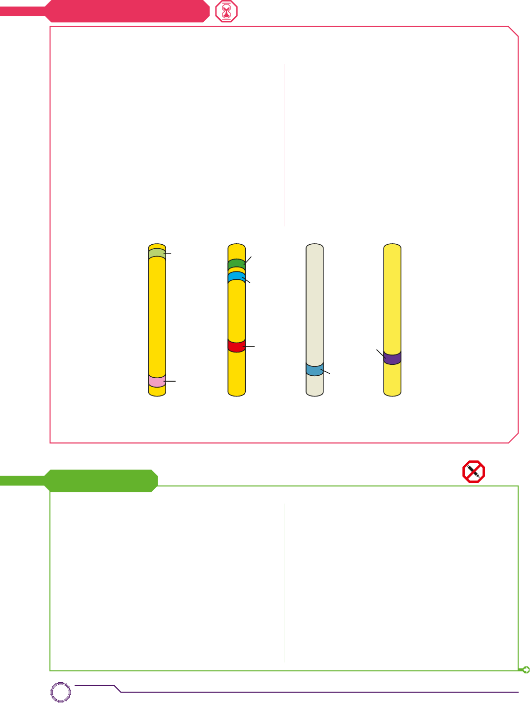 1. Imagine que os alelos dominantes A e B estejam liga- dos no mesmo cromossomo, ocorrendo, logicamente, o mesmo entre os alelos a e b. Supondo que não haja permutação entre eles, quais são os gametas produ- zidos pelo indivíduo portador desses cromossomos? Qual é a proporção genotípica obtida no cruzamento desse indivíduo com o duplo recessivo aabb? 2. Supondo que em apenas 40% das células de um indivíduo AB/ab haja permutação entre os genes em questão, que gametas são formados e em que proporção? Indique os gametas de recombinação. Qual é a taxa de permutação? 3. Em relação aos genes ligados, podemos dizer que quanto maior a taxa de permutação, maior a dis- tância entre os genes? Justifique sua resposta. 4. Sabendo que a distância entre dois alelos dominan- tes A e B é de 10 UR, que gametas, e em que pro- porções, um indivíduo AB/ab deve produzir? 5. No cruzamento-teste de um indivíduo AaBb com genes ligados, obteve-se a seguinte distribuição genotípica: 187 AaBb, 213 aabb, 310 Aabb, 290 aaBb. Qual é a taxa de permutação? Os genes estão em posição cis ou trans? Atividades ATENÇÃO! Não escreva no seu livro! História da ciência cor da semente cor da flor tamanho da planta forma da vagem cor da vagem forma da semente cromossomo 1 cromossomo 4 cromossomo 5 cromossomo 7 posição da flor Figura 5.12 Localização de alguns genes da ervilha (os elementos ilustrados não estão na mesma escala; cores fantasia). Mendel e a ligação gênica Na época de Mendel ainda não se sabia o pa- pel dos cromossomos e dos genes na heredita- riedade, e a ligação gênica não era conhecida. Então, será que Mendel não teria encontrado uma proporção diferente de 9 : 3 : 3 : 1, devido a alguma ligação gênica? Mendel realizou muitos testes antes de escolher as características que estudaria. É possível que tenha desprezado pares de ca- racterísticas que fugiam das proporções fe- notípicas produzidas por genes situados em cromossomos diferentes. Outra hipótese é que os produtores que vendiam sementes para Mendel selecionavam suas ervilhas em função de características que se comportavam de forma independente. Ainda é possível que, mesmo para alguns pares de genes situados no mesmo cromosso- mo, Mendel tenha encontrado a clássica pro- porção de 9 : 3 : 3 : 1. Esse pode ser o caso dos genes para cor da flor e cor da semente, que estão muito distantes (figura 5.12). Saber o que realmente aconteceu depende da análise de documentos históricos, entre ou- tras evidências (um trabalho para a história da Ciência). Il u s tr a ç õ e s : B a n c o d e i m a g e n s /A rq u iv o d a e d it o ra Capítulo 578 069_080_U02_C05_Bio_Hoje_vol_3_PNLD2018.indd 78 19/05/16 16:36 6. Cruzando um indivíduo RP/rp, com ligação parcial entre os genes em questão, com um indivíduo duplo recessivo, obteve-se o seguinte resultado: 350 filhotes dominantes para ambas as caracte- rísticas; 350 filhotes recessivos; 150 dominantes apenas para a característica condicionada pelo alelo R; 150 dominantes apenas para a caracterís- tica condicionada pelo alelo P. Qual é a taxa de permutação entre os genes? 7. Em uma raça de coelhos, a cor do pelo negro é de- terminada por um gene dominante (B), enquanto seu alelo (b) determina a cor branca. O tamanho do pelo também é controlado por um par de genes, sendo o alelo dominante (L) para pelo curto e o ale- lo recessivo (l) para pelo longo. A tabela a seguir apresenta os fenótipos dos pais e os fenótipos das respectivas proles, após vários cruzamentos. Cruzamentos Pelos negros e curtos 3 pelos negros e curtos Pelos brancos e curtos 3 pelos brancos e curtos P ro le Pelos negros e curtos 70 0 Pelos negros e longos 26 0 Pelos brancos e curtos 22 62 Pelos brancos e longos 8 20 Quais são os genótipos mais prováveis dos pais, em cada casal? Justifique sua resposta. 8. (Unicamp-SP) Um cruzamento entre uma fêmea heterozigota para dois pares de genes (AaBb) e um macho homozigoto (aabb) resultou na seguinte descendência: AaBb, Aabb, aaBb, aabb. Foi obser- vado também que todas as classes acima apare- ceram na mesma frequência (25%), tanto entre os machos como entre as fêmeas. Considerando que há interesse em determinar se existe ou não liga- ção entre os genes estudados, explique qual seria a informação que esse cruzamento fornece. 9. (Unirio-RJ) Em certa espécie de cobaia, um macho duplo heterozigoto (pelos e olhos escuros) foi cru- zado com uma fêmea de pelo e olhos claros, pro- duzindo, ao longo de suas vidas, 50 descendentes que apresentavam a seguinte distribuição: • 46% indivíduos de pelo e olhos escuros • 46% indivíduos de pelo e olhos claros • 4% indivíduos de pelo escuro e olhos claros • 4% indivíduos de pelo claro e olhos escuros Considere que o gene A, para pelo escuro, domina o gene a para pelo claro, enquanto o gene B, para olhos escuros, domina o gene b, para olhos claros. Com estas informações e seus conhecimentos ge- néticos, determine: a) os genótipos desta prole. b) os gametas produzidos pelo macho duplo hete- rozigoto. c) que tipo de segregação ocorre neste caso. d) Considerando a porcentagem da prole gerada e que os genes se localizam linearmente no cro- mossomo, determine qual é a distância relativa entre o lócus para cor de pelo e o lócus para cor de olhos. 10. (Unioeste-PR) Crossing-over ou permuta é um importante fenômeno que ocorre na prófase I meiótica, responsável pela recombinação entre os diferentes pares de genes de cromossomos homólogos. O desenho abaixo representa um par de cromossomos homólogos, com 3 genes: gene A, gene B e gene C, cada um destes possuindo dois alelos (alelo dominante e alelo recessivo). A partir deste desenho, assinale a alternativa correta. 1 2 A B C a b c a) Se houver crossing-over apenas na região 1 serão produzidos gametas com as combinações ABC, abc, ABc e abC. b) Se houver crossing-over apenas na região 2 serã