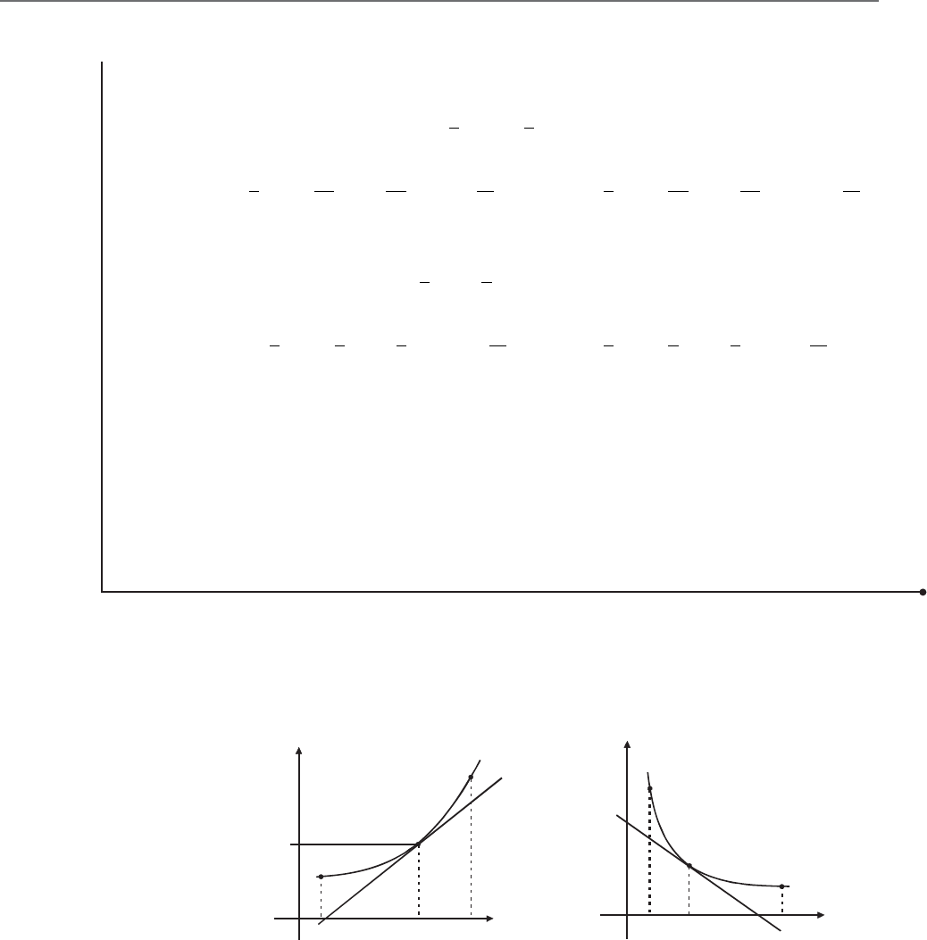CAPÍTULO 5 CÁLCULO DIFERENCIAL Aplicaciones de la derivada 1263 Paso III Se dan valores menores y mayores próximos a los valores críticos y se evalúan en la derivada. Para x 1, se toman los valores x 3 2 y x 1 2 f 3 2 6 3 2 6 3 2 12 2 21 2 0 y f 1 2 6 1 2 6 1 2 12 2 15 2 0 La derivada cambia de signo positivo a negativo, entonces la función tiene un valor máximo en x 1 Para x 2 se toman los valores x 3 2 y x 5 2 f 3 2 6 3 2 6 3 2 12 2 15 2 0 y f 5 2 6 5 2 6 5 2 12 2 21 2 0 La derivada cambia de signo negativo a positivo, entonces la función tiene un valor mínimo en x 2 Paso IV Los valores críticos se evalúan en la función: Para x 1, f ( 1) 2 1 3 1 12 1 153 2( ) ( ) ( ) 22 Para x 2, f (2) 2 2 3 2 12 2 153 2( ) ( ) ( ) 5 Por tanto, el punto máximo es ( 1, 22) y el punto mínimo es (2, 5) Intervalos donde crece o decrece una función Definición 1. Una función es creciente en el intervalo (a, b), si f (x) 0 para toda x (a, b) 2. Una función es decreciente en el intervalo (a, b), si f (x) 0 para toda x (a, b) X Y a x b f (x) f ’(x)>0 X Y a x b f (x) f ’(x)< 0 Observación 1. Existen funciones siempre crecientes, pero su derivada se anula para algún valor de x. Ejemplo La función f (x) 1 (x 2)3 es siempre creciente, pero su derivada es cero para x 2 f (x) 3(x 2)2 f (2) 3(2 2)2 3(0) 0 Observación 2. Existen funciones siempre decrecientes, pero su derivada se anula para algún valor de x. 5 CAPÍTULO MATEMÁTICAS SIMPLIFICADAS 1264 La función f (x) 1 (x 2)3 es siempre decreciente, pero su derivada es cero para x 2 f (x) 3(x 2)2 f (2) 3(2 2)2 3(0) 0 Indica los intervalos donde la función f (x) 1 3 1 2 63 2x x x es creciente y decreciente. Solución a) Intervalo donde f (x) es creciente. Paso I Se obtiene la derivada de la función: f (x) x2 x 6 Paso II Por def inición f (x) 0 x2 x 6 0 Al resolver la desigualdad se obtienen los intervalos: ( , 2) (3, ) Donde la función es creciente. b) Intervalo donde f (x) es decreciente. Paso I Se obtiene la derivada de la función: f (x) x2 x 6 Paso II Por definición f (x) 0 x2 x 6 0 Al resolver la desigualdad se obtiene el intervalo: ( 2, 3) Donde la función es decreciente. Gráf ica: X Y x = 3 x = –2 f’(x) > 0 f’(x) > 0 f’(x)< 0 f’(x) < 0 Ej em pl os EJEMPLOS 1 2 CAPÍTULO 5 CÁLCULO DIFERENCIAL Aplicaciones de la derivada 1265 Encuentra los máximos, los mínimos y los intervalos para los que la función es creciente o decreciente. 1. f x x x( ) 2 6 5 9. f x x x x( ) 3 2 3 2 6 4 2. f x x x( ) 3 5 42 10. f x x x x( ) 4 3 2 4 4 3 3 2 1 3. f x x x( ) 3 3 11. y x x 3 22 4. f x x x( ) 3 26 12. f x x x ( ) 3 3 5. f x x x x( ) 4 3 63 2 13. f x x x ( ) 2 42 6. f x x x x( ) 4 4 33 2 14. y x x 2 2 1 4 7. f x x x x( ) 2 3 12 53 2 15. f x x x ( ) 2 3 8. f x x x x( ) 3 2 3 3 1 Ú Verifica tus resultados en la sección de soluciones correspondiente EJERCICIO 41 Criterio de la segunda derivada para encontrar puntos máximos y mínimos a) Dada y f (x) con f (xo) 0, si f (xo) 0, entonces el punto (xo, f (xo)) representa un punto mínimo. b) Dada y f (x) con f (xo) 0, si f (xo) 0, entonces el punto (xo, f (xo)) representa un punto máximo. Ejemplo Determina con el criterio de la segunda derivada los puntos máximos y mínimos de la función f (x) x3 3x2 24x 10 Solución Paso I Se obtiene la derivada de la función: f (x) 3x2 6x 24 Paso II Se iguala la derivada a cero y se resuelve la ecuación: 3x2 6x 24 0 x2 2x 8 0 (x 4)(x 2) 0 Los valores críticos son: x 4 y x 2
