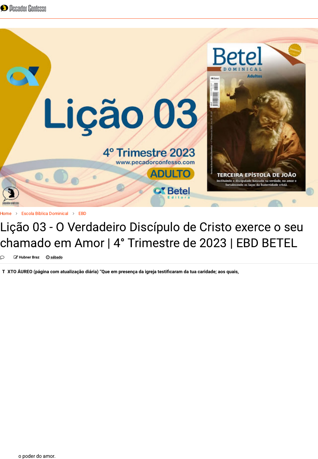 Home Escola Bíblica Dominical EBD Lição 03 - O Verdadeiro Discípulo de Cristo exerce o seu chamado em Amor | 4° Trimestre de 2023 | EBD BETEL 0 Hubner Braz sábado TEXTO ÁUREO (página com atualização diária) “Que em presença da igreja testi�caram da tua caridade; aos quais, se conduzires como é digno... TEXTO ÁUREO (página com atualização diária) “Que em presença da igreja testificaram da tua caridade; aos quais, se conduzires como é digno para com Deus, bem farás.” 3 João 6 VERDADE APLICADA Como discípulos de Cristo, busquemos abundar em amor, pois os últimos dias são marcados pelo egoísmo e a indiferença. OBJETIVOS DA LIÇÃO Mostrar o poder do amor. Ressaltar que o amor é o maior bem. https://www.pecadorconfesso.com/ https://www.pecadorconfesso.com/search/label/Escola%20B%C3%ADblica%20Dominical https://www.pecadorconfesso.com/search/label/EBD https://www.blogger.com/profile/16913734058713320281 https://www.pecadorconfesso.com/2023/10/licao-03-o-verdadeiro-discipulo-de.html https://www.pecadorconfesso.com/ https://www.pecadorconfesso.com/ Ensinar que sem amor não existe discipulado. -------------------------------------------------------------- 📥 ADQUIRA O SLIDE DA AULA => CLIQUE AQUI Este blog foi feito com muito carinho 💝 para você. Ajude-nos 🙏. Não leva nem 30 segundos. Basta clicar em qualquer ANÚNCIO e você estará colaborando para que esse blog continue trazendo conteúdo exclusivo e de edificação para a sua vida. Pode ser também uma oferta voluntária no pix: pecadorconfesso@hotmail.com -------------------------------------------------------------- TEXTOS DE REFERÈNCIA 1 CORÍNTIOS 13 1 Ainda que eu falasse as línguas dos homens e dos anjos, e não tivesse caridade, seria como o metal que soa ou como o sino que tine. 2 E ainda que tivesse o dom de profecia, e conhecesse todos os mistérios e toda a ciência, e ainda que tivesse toda a fé, de maneira tal que transportasse os montes, e não tivesse caridade, nada seria 3 E ainda que distribuísse toda a minha fortuna para sustento dos pobres, e ainda que entregasse o meu corpo para ser queimado, e não tivesse caridade, nada disso me aproveitaria. 4 A caridade é sofredora, é benigna; a caridade não é invejosa; a caridade não trata com leviandade, não se ensoberbece. LEITURAS COMPLEMENTARES SEGUNDA – Jo 3.16 O amor deve motivar o coração do discípulo. TERÇA – 1Co 16.14 Tudo deve ser feito em amor. QUARTA – Hb 13.1 O amor deve ser permanente. QUINTA – 1Pe 4.8 O amor deve ter mão dupla SEXTA– 1 Jo 4.8 Deus é amor SÁBADO – 1 Jo 4.16 Quem está em amor está em Deus. HINOS SUGERIDOS: 35, 227, 430 MOTIVO DE ORAÇÃO Ore para que o amor de Deus seja manifesto na vida e no ministério dos líderes. ESBOÇO DA LIÇÃO Introdução 1– O amor de Deus 2– O dom do amor 3 – Manifestações de amor Conclusão DINÂMICA DA LIÇÃO 03 - BETEL: Título da Dinâmica: "O Caminho do Amor" Objetivo: Demonstrar a importância do amor na vida de um discípulo de Cristo e como esse amor se expressa em ações concretas. https://drive.google.com/drive/folders/1zYYvRr8QevaLIgxI1ptFjRwv7CzikNR-?usp=sharing Materiais Necessários: Papéis em branco Canetas coloridas Caixa ou cesto Passos: Introdução (10 minutos): Comece com uma breve reflexão sobre o papel do amor na vida de um discípulo de Cristo. Destaque passagens bíblicas que enfatizam o amor, como 1 Coríntios 13 e João 13:34-35. Divisão em Grupos (5 minutos): Divida os participantes em grupos de 4 a 6 pessoas. Desenvolvimento da Dinâmica (20 minutos): Entregue um papel em branco e canetas coloridas para cada grupo. Peça para que cada grupo liste formas práticas de demonstrar amor ao próximo. Podem ser ações simples ou mais complexas, como ajudar um vizinho idoso, doar alimentos, visitar pessoas em hospitais, etc. Cada ideia deve ser escrita em um papel separado. A Árvore do Amor (15 minutos): Coloque os papéis com as ideias em uma caixa ou cesto, representando o "Solo do Amor". Em seguida, desenhe uma árvore grande em um local visível. Peça para cada grupo colocar suas ideias (papéis) no "Solo do Amor", em volta da árvore. Compartilhamento (10 minutos): Convide cada grupo a compartilhar uma ou duas ideias que colocaram no "Solo do Amor". Envolva todos os participantes na discussão sobre como essas ações demonstram o amor cristão. Compromisso Pessoal (5 minutos): Termine a dinâmica incentivando os participantes a escolher uma ou duas das ideias listadas para colocar em prática em suas vidas diárias, demonstrando o amor de Cristo. Conclusão: Encerre a dinâmica enfatizando que um verdadeiro discípulo de Cristo não apenas fala sobre o amor, mas o pratica de maneira tangível na vida cotidiana. Destaque que essas ações podem ter um impacto duradouro no mundo ao nosso redor e refletir a natureza de Cristo em nós. Att: Pr. Hubner Braz INTRODUÇÃO O apóstolo João adverte que quem não ama não conhece a Deus, porque Deus é amor [1Jo 4.8]. Ele não apenas sente amor, Ele é o próprio amor, esta é a sua natureza, por isso Seus filhos também devem amar [1Jo 4.20]. 1- O AMOR DE DEUS João mostra que o amor é mais que um sentimento, é uma Pessoa: Deus. Nele reside toda benevolência [Sl 136], misericórdia [Lc 1.50], perdão [Mq 7.18]. O termo usado em 1 João 4.8 para amor é ágape (grego), o mesmo que Paulo utiliza em 1 Coríntios 13, onde diz que esse amor deve mover o uso de qualquer dom espiritual e o cultivo da piedade humana, bem como estar acima dos próprios interesses. Esse “tipo” de amor nos faz servir aos nossos irmãos [GI 5.14], manifestando bondade, misericórdia e perdão, como o Senhor faz conosco [Jl 2.13]. 1.1. Fruto do Espírito. Em Gálatas 5.22, o amor “ágape” aparece como Fruto do Espírito Santo. Ou seja, é o amor divino, “produzido” pela Terceira Pessoa da Trindade. Sendo assim, podemos adquirir esse amor e manifestá-lo graciosamente quando estamos 