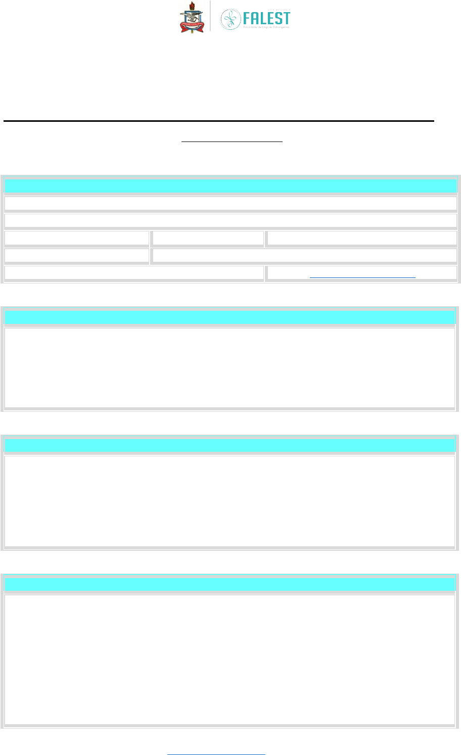 PLANO DE CURSO I - IDENTIFICAÇÃO Componente Curricular: LIB 2018 – MORFOSSINTAXE DO INGLÊS II (60h) Curso: Letras – Língua Inglesa Turma: Inglês-Viseu 2022 Período: 2024-3 Horário: 8h-12h / 18h-22h Turno: manhã e noite Datas: 01/07/2024 a 09/07/2024 Professor: Jean dos Santo Silva Email: jean.silva@ilc.ufpa.br II - EMENTA Estudo de neologismos e processos de formação de palavras e constituição do Léxico. Derivação e composição. Classes de palavras e propriedades sintáticas das construções linguísticas: pressuposto sintático; ordem dos constituintes; a relação predicador/argumento em abordagens sintático-semânticas; a relação léxico-gramática em abordagens enunciativas. A sintaxe como um mecanismo enunciativo. III - OBJETIVOS Geral Promover situações de aprendizado onde os alunos possam compreender as definições e conceitos de morfologia e sintaxe da língua inglesa, suas características e funções. Específicos Ao final desta disciplina, pretende-se que os alunos sejam capazes de: Definir os elementos principais da morfologia e da sintaxe da língua inglesa; Analisar morfológica e sintaticamente elementos distintos da língua inglesa. IV – COMPETÊNCIAS/HABILIDADES 1. Analisar criticamente as perspectivas teóricas adotadas nas investigações linguísticas que fundamentam sua formação profissional. 2. Visão crítica das perspectivas teóricas adotadas nas investigações literárias que fundamentam sua formação profissional. 3. Conhecer os conceitos de estrutura mórfica dos vocábulos e depreender o processo de formação vocabular da língua. 4. Identificar os constituintes imediatos da frase e compreender sua importância para a (re) construção do sentido do texto. 5. Compreender a distinção entre competência e desempenho linguístico. 6. Conhecer os conceitos básicos da sintaxe: gramaticalidade/agramaticalidade frasal, funções e relações gramaticais, predicação, subordinação e coordenação, ordem dos elementos sintáticos. V – CONTEÚDO PROGRAMÁTICO Unidade 1 - Introdução à Morfossintaxe e Neologismos Unidade 2 - Processos de Formação de Palavras Unidade 3 - Classes de Palavras e suas Funções Unidade 4 - Estrutura Sintática: Pressuposto Sintático e Ordem dos Constituintes Unidade 5 - Relação Predicador/Argumento Unidade 6 - Léxico e Gramática em Abordagens Enunciativas Unidade 7 - Estruturas Sintáticas Complexas Unidade 8 - Sintaxe e Pragmática Unidade 9 - Revisão e Aplicação Prática VI – METODOLOGIAS DE ENSINO O conteúdo programático será desenvolvido através de aulas expositivas-dialogadas, discussão em sala de aula (presencial e virtual), leitura crítica de textos, trabalhos individuais e em grupo e seminários, promovendo, assim, a autonomia dos alunos. Como suporte os Ambianetes Virtuais de Aprendizagem e os Objetos Virtuais de Aprendizagem, como Google Classroom, Google Forms, Google Meet, Pedlet, entre outros poderão ser utilizados. VII – AVALIAÇÃO DA APRENDIZAGEM Atividade avaliativa 1 – Participação em Discussões Atividade avaliativa 2 – Exercícios de Fixação ATIVIDADE AVALIATIVA DESCRIÇÃO Participação Participação nas atividades em grupos e discussões. Seminário Seminário sobre sintaxe. Prova Final Wrap-up de toda disciplina Avaliações (100 + 100 + 100/3 = Nota final) VIII – CRONOGRAMA PARA DESENVOLVIMENTO DO CONTEÚDO PROGRAMÁTICO Data Conteúdo Atividades CH 01/07/2024 Noite · Definição de morfossintaxe. · Introdução aos neologismos. · Processos de criação de neologismos em inglês. · Leitura e análise de artigos sobre neologismos. · Discussão em grupo sobre o impacto dos neologismos na linguagem. 02/07/2024 Manhã · Morfologia derivacional: prefixação e sufixação. · Composição de palavras (compounding). · Outros processos de formação: blending, clipping, acronyms. · Exercícios de identificação e criação de palavras derivadas e compostas. · Análise de textos para identificar processos de formação de palavras 02/07/2024 Noite · Revisão das classes de palavras em inglês: substantivos, verbos, adjetivos, advérbios, etc. · Propriedades sintáticas de cada classe. · Exercícios de identificação e uso. · Análise sintática de sentenças. · Discussão sobre mudanças de classe gramatical e seu impacto na sintaxe. 03/07/2024 Manhã · Definição de pressuposto sintático. · Ordem dos constituintes em sentenças inglesas (SVO). · Variações e inversões na ordem dos constituintes. · Análise de sentenças para identificar pressupostos sintáticos. · Exercícios práticos sobre ordem dos constituintes. 03/07/2024 Noite · Conceito de predicador e argumento. · Abordagens sintático-semânticas. · Tipos de argumentos (sujeitos, objetos, etc.). · Exercícios de mapeamento de predicadores e argumentos em sentenças. · Discussão de exemplos literários e não-literários. 04/07/2024 Manhã · Relação entre léxico e gramática. · Teoria enunciativa e seu impacto na análise linguística. · Exemplos práticos de enunciação. · Análise de discursos para identificar relações léxico-gramaticais. · Exercícios de criação de enunciados com foco em léxico e gramática. 04/07/2024 Noite · Sentenças complexas e compostas. · Estruturas subordinadas e coordenadas. · Uso de conectores e conjunções. · Exercícios de construção e análise de sentenças complexas. · Discussão sobre a função dos conectores em textos. 05/07/2024 Manhã · Relação entre sintaxe e pragmática. · Contexto de uso e sua influência na estrutura sintática. · Análise de exemplos de uso pragmático da linguagem. · Estudo dirigido. · Estudo de casos sobre variação sintática em diferentes contextos. · Discussão em grupo sobre a pragmática na análise sintática. 05/07/2024 Noite Preparação de Seminário 06/07/2024 Manhã Preparação de Seminário 06/07/2024 Noite Preparação de Seminário 08/07/2024 Manhã Pre
