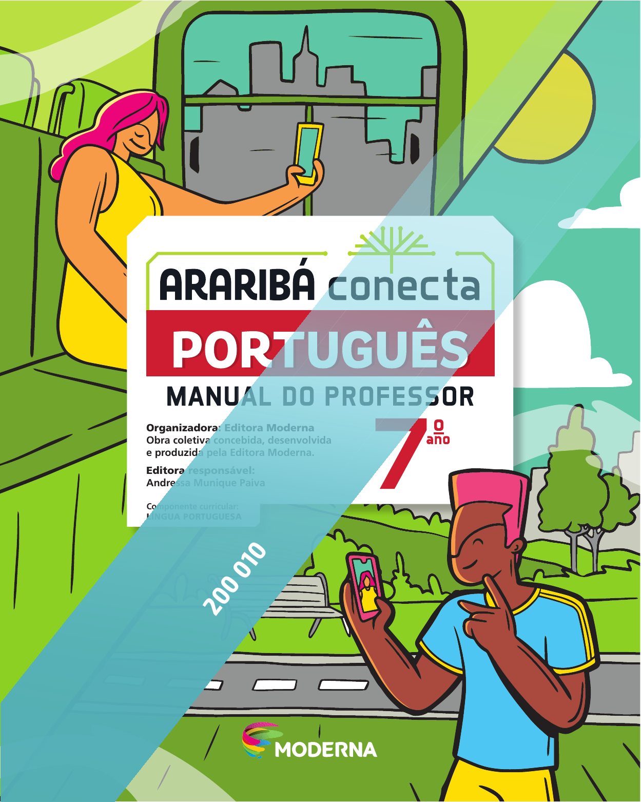 Componente curricular: LÍNGUA PORTUGUESA Organizadora: Editora Moderna Obra coletiva concebida, desenvolvida e produzida pela Editora Moderna. Editora responsável: Andressa Munique Paiva M A N U A L D O P R O F E S S O R 0007 P24 01 0 0 200 010 MATE RIA L D E D IV ULG AÇà O. V ER Sà O SU BM ET ID A À A VALIA Çà O. Có dig o d a c ol eç ão : PN LD 20 24 - O bje to 1 0007 P24 01 0 0 200 010 MATE RIA L D E D IV ULG AÇà O. V ER Sà O SU BM ET ID A À A VALIA Çà O. Có dig o d a c ol eç ão : PN LD 20 24 - O bje to 1 1a edição São Paulo, 2022 M A N U A L D O P R O F E S S O R Componente curricular: LÍNGUA PORTUGUESA Organizadora: Editora Moderna Obra coletiva concebida, desenvolvida e produzida pela Editora Moderna. Editora responsável: Andressa Munique Paiva Bacharela em Comunicação Social com habilitação em Jornalismo pela Faculdade Cásper Líbero (SP). Especialista em Língua Portuguesa pela Pontifícia Universidade Católica de São Paulo. Especialista em Fundamentos da Cultura e das Artes pela Universidade Estadual Paulista “Júlio de Mesquita Filho”. Editora de livros didáticos. Coordenação geral de produção: Maria do Carmo Fernandes Branco Edição: Olivia Neto e Roberta Lombardi Martins Edição de texto: Vanessa Valença Assistência editorial: Roberta Lucas Leitura crítica e assessoria técnico-pedagógica: Egon de Oliveira Rangel, Ana Luiza Marcondes Garcia e Andrea Oliveira Gerência de design e produção grá�ca: Patricia Costa Coordenação de produção: Denis Torquato Gerência de planejamento editorial: Maria de Lourdes Rodrigues Coordenação de design e projetos visuais: Marta Cerqueira Leite Projeto grá�co: Aurélio Camilo, Vinicius Rossignol Felipe Capa: Tatiane Porusselli e Daniela Cunha Ilustração da capa: Gabriel Sá Coordenação de arte: Aderson Assis Oliveira Edição de arte: Beatriz Akemi Shimabukuro, Mayra Raquel de Oliveira França Editoração eletrônica: Estudo Gráfico Design Coordenação de revisão: Camila Christi Gazzani Revisão: Adriana Bairrada, Ana Marson, Daniela Uemura, Elza Doring, Lucila V. Segóvia, Maíra Cammarano, Patricia Cordeiro, Roberta Otoni, Viviane T. Mendes Coordenação de pesquisa iconográ�ca: Sônia Oddi Pesquisa iconográ�ca: Lourdes Guimarães, Angelita Cardoso, Célia Rosa, Vanessa Trindade Suporte administrativo editorial: Flávia Bosqueiro Coordenação de bureau: Rubens M. Rodrigues Tratamento de imagens: Ademir Francisco Baptista, Ana Isabela Pithan Maraschin, Denise Feitoza Maciel, Marina M. Buzzinaro, Vânia Maia Pré-impressão: Alexandre Petreca, Fabio Roldan, José Wagner Lima Braga, Marcio H. Kamoto, Selma Brisolla de Campos Coordenação de produção industrial: Wendell Monteiro Impressão e acabamento: 1 3 5 7 9 10 8 6 4 2 Reprodução proibida. Art. 184 do Código Penal e Lei 9.610 de 19 de fevereiro de 1998. Todos os direitos reservados EDITORA MODERNA LTDA. Rua Padre Adelino, 758 - Belenzinho São Paulo - SP - Brasil - CEP 03303-904 Atendimento: Tel. (11) 3240-6966 www.moderna.com.br 2022 Impresso no Brasil A ilustração da capa, feita por Gabriel Sá, de São Luís do Maranhão (MA), representa uma conversa remota via celular entre uma moça que está em um transporte público e um rapaz que se encontra em uma praça, enfatizando a presença das novas tecnologias no cotidiano dos jovens, que as usam muito para interagir com outras pessoas, derrubando os limites de espaço e tempo. Elaboração dos originais: João Pires Mestre em Linguística Aplicada pela Universidade Estadual de Campinas (SP). Licenciado em Letras pela Pontifícia Universidade Católica de São Paulo. Professor em escolas particulares e designer instrucional. Talita Mochiute Cruz Doutora e Mestra em Letras (Teoria Literária e Literatura Comparada) e bacharela em Letras pela Universidade de São Paulo. Bacharela em Comunicação Social pela Faculdade Cásper Líbero (SP). Professora do Ensino Superior e editora. Wilker Leite Mestre em Letras (Teoria Literária e Literatura Comparada) pela Universidade de São Paulo. Bacharel em Letras pela Universidade de São Paulo. Bacharel em Comunicação Social pela Faculdade Cásper Líbero (SP). Editor. Aline Ruiz Menezes Mestra em Linguística Aplicada pela Universidade Estadual de Campinas (SP). Licenciada em Letras (Língua Portuguesa) pela Universidade Federal de Ouro Preto (MG). Professora em escolas particulares. Daniele Lopes Freitas Licenciada e bacharela em Letras pela Universidade de São Paulo. Professora em escolas particulares. Edna Santos Marini Mestra em Linguística Aplicada e Estudos da Linguagem pela Pontifícia Universidade Católica de São Paulo. Licenciada e bacharela em Letras (Português e Inglês) pelo Centro Universitário FIEO – Fundação Instituto de Ensino para Osasco (SP). Professora em escolas públicas e particulares. Maria Silvia Gonçalves Mestra em Educação, licenciada e bacharela em Letras pela Universidade de São Paulo. Professora em escolas públicas e particulares e consultora pedagógica. Ariadne Olímpio Mestra em Letras (Filologia e Língua Portuguesa) e bacharela em Letras pela Universidade de São Paulo. Professora na rede particular de ensino. Cassiano Butti Mestre em Língua Portuguesa pela Pontifícia Universidade Católica de São Paulo. Licenciado em Letras pela Faculdade de Filosofia, Ciências e Letras “Santana” (SP). Professor do Ensino Superior. Maria Elisa Curti Licenciada e bacharela em Língua e Literatura Portuguesas pela Pontifícia Universidade Católica de São Paulo. Bacharela em Linguística pela Universidade Estadual de Campinas (SP). Professora na Educação Básica. Marília Rodela Oliveira Bacharela em Comunicação Social pela Faculdade de Comunicação Social Cásper Líbero (SP). Editora. Regina Braz Rocha Doutora e mestra em Linguística Aplicada e Estudos da Linguagem pela Pontifícia Universidade Católica de São Paulo. Especialista em Neuropedagogia Sistêmica pela Univers