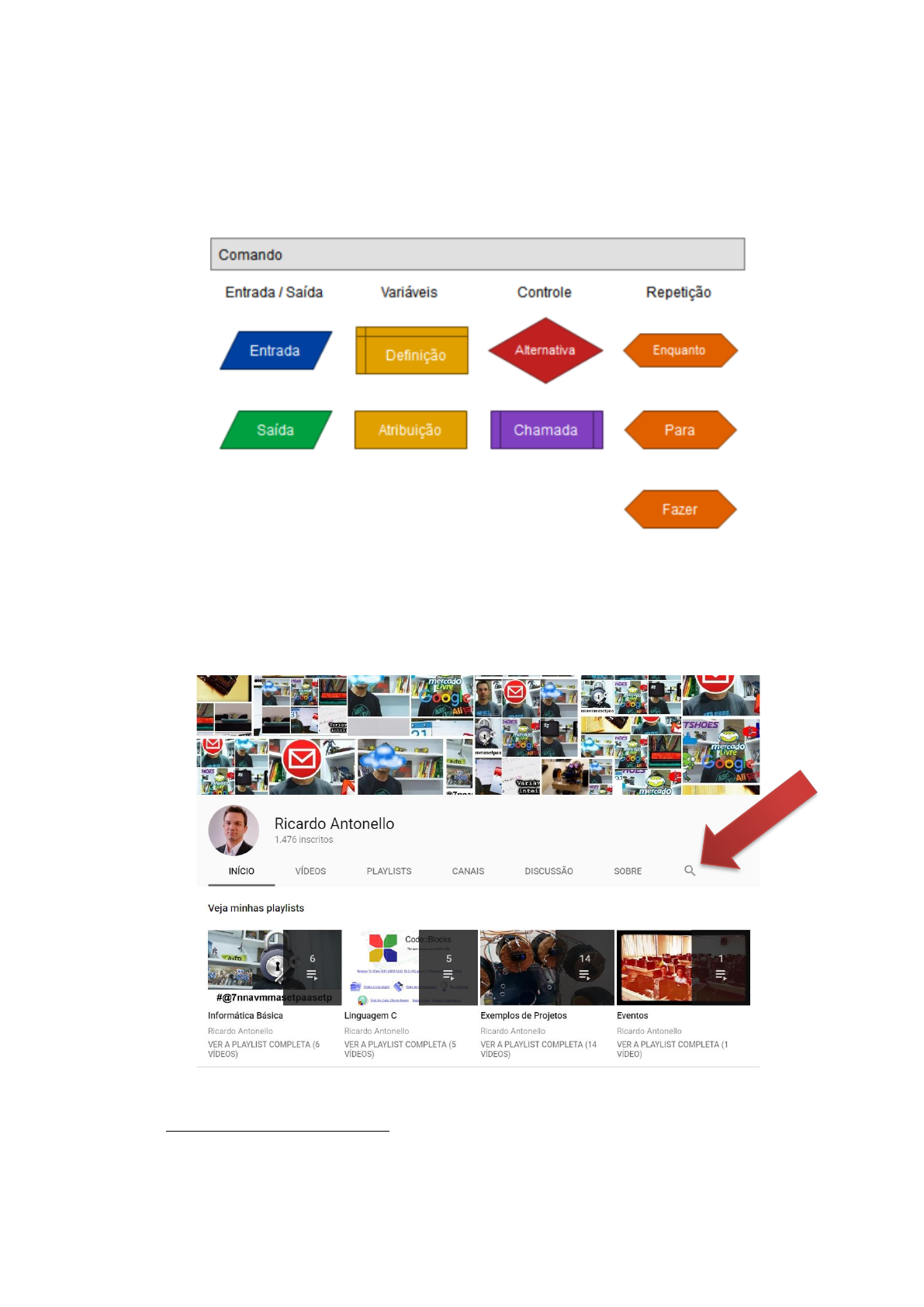 20 Abaixo temos uma descrição de cada componente disponível. Utilizando o software Flowgorithm fica tudo muito mais fácil pois ao clicar sobre qualquer seta de fluxo a janela abaixo é exibida e basta selecionar o componente desejado. Explore cada um dos componentes e nunca esqueça de definir uma variável antes de utilizá-la. Se preferir acesso o meu canal no Youtube8 para ver a construção de fluxogramas no Flowgorithm. Basta pesquisa vídeos com a palavra chave “flowgorithm”. 8 Disponível em: <www.youtube.com/ricardoantonello>. Acesso em 22 de mar. 2020.