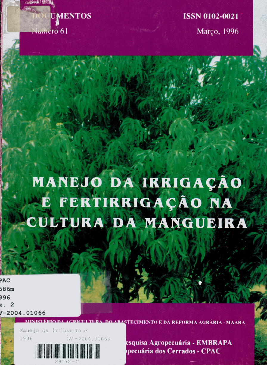 Irrigação e tertlrrigação na cultura da mangueira. Planaltina: